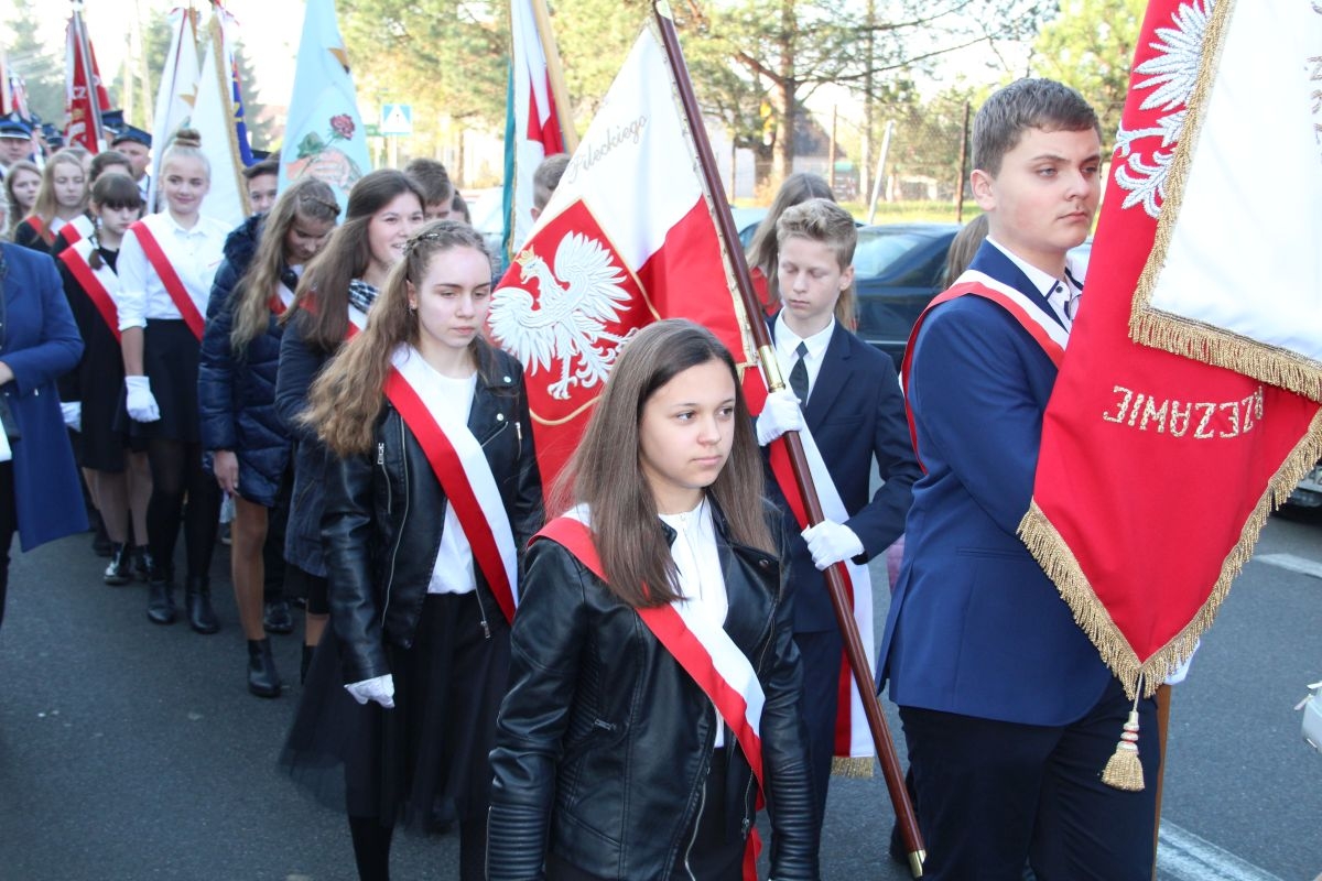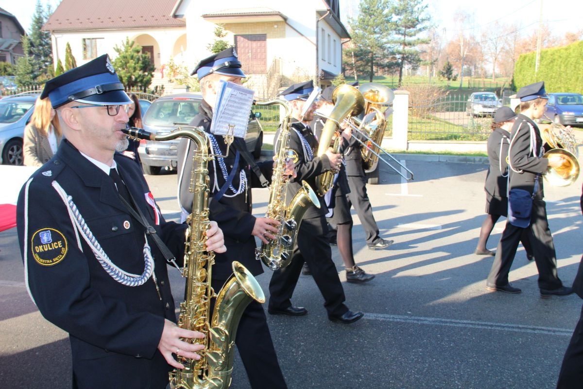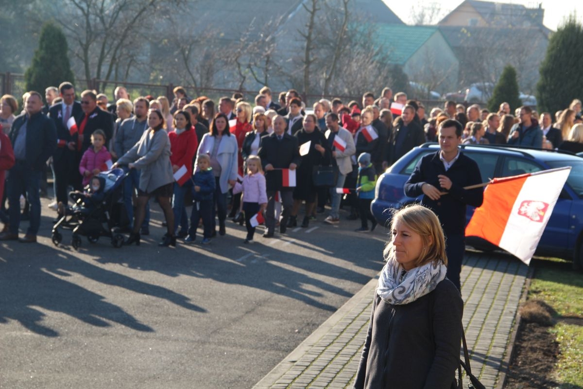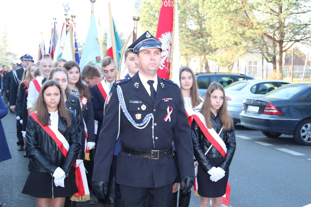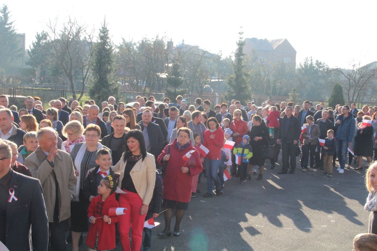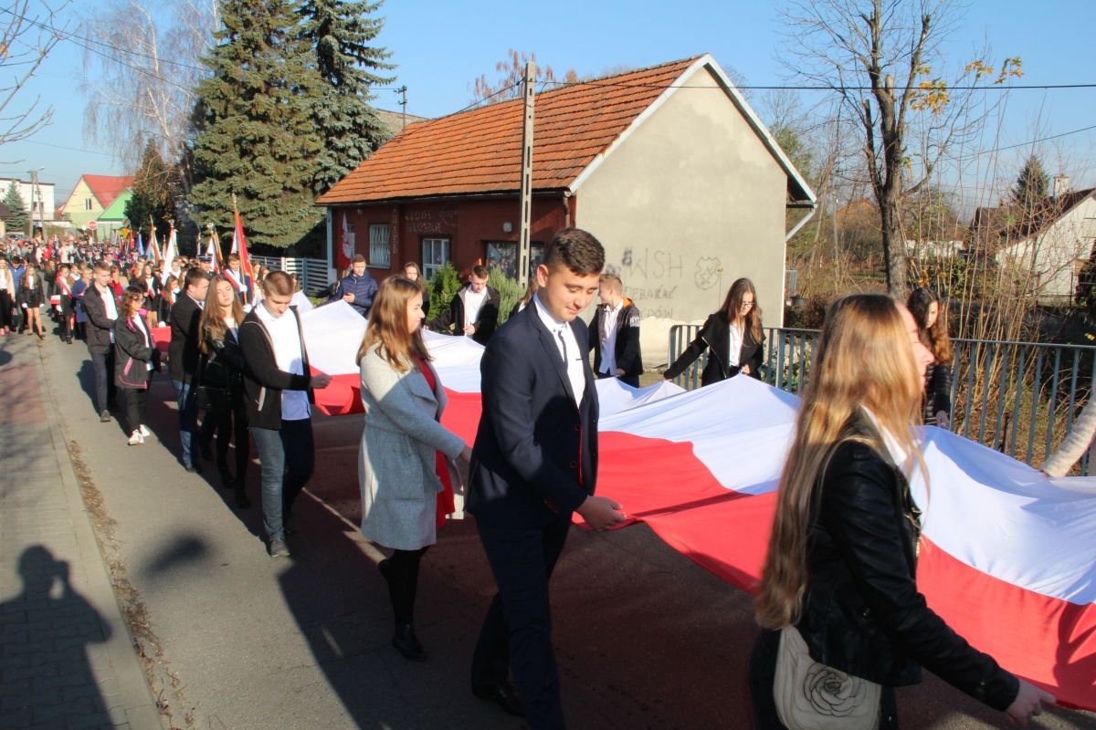 Po zakończeniu liturgii władze samorządowe, delegacje szkół i jednostek OSP wraz z pocztami sztandarowymi, a także przybyli mieszkańcy przy akompaniamencie Orkiestry Dętej z Okulic przemaszerowali do budynku Publicznej Szkoły Podstawowej w Rzezawie, gdzie miały miejsce dalsze uroczystości związane z celebracją Święta Niepodległości. W marszu wzięło udział w sumie kilkaset osób. Wiele z nich miało ze sobą biało-czerwone flagi. Największa z nich miała kilka metrów długości i była niesiona przez młodzież z terenu gminy Rzezawa.