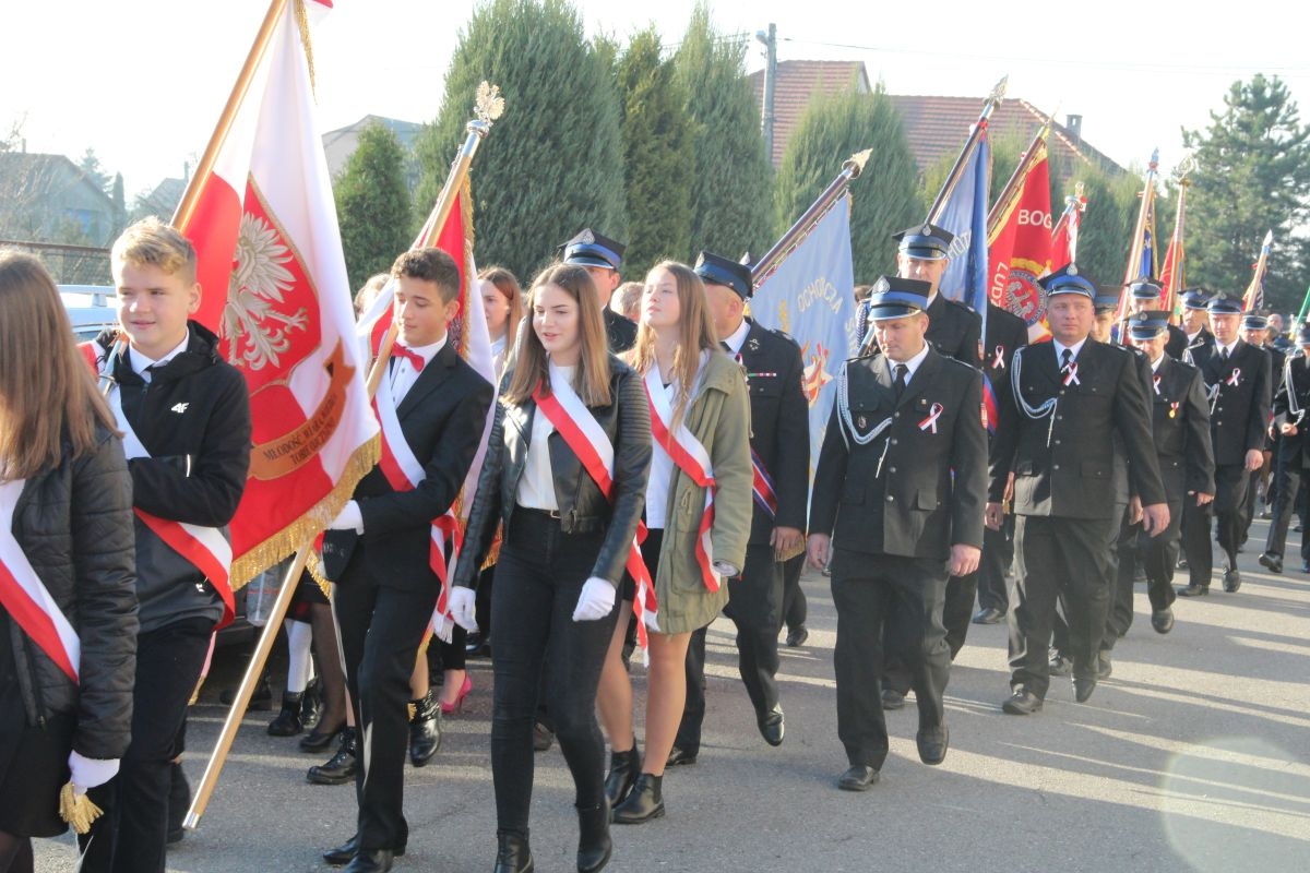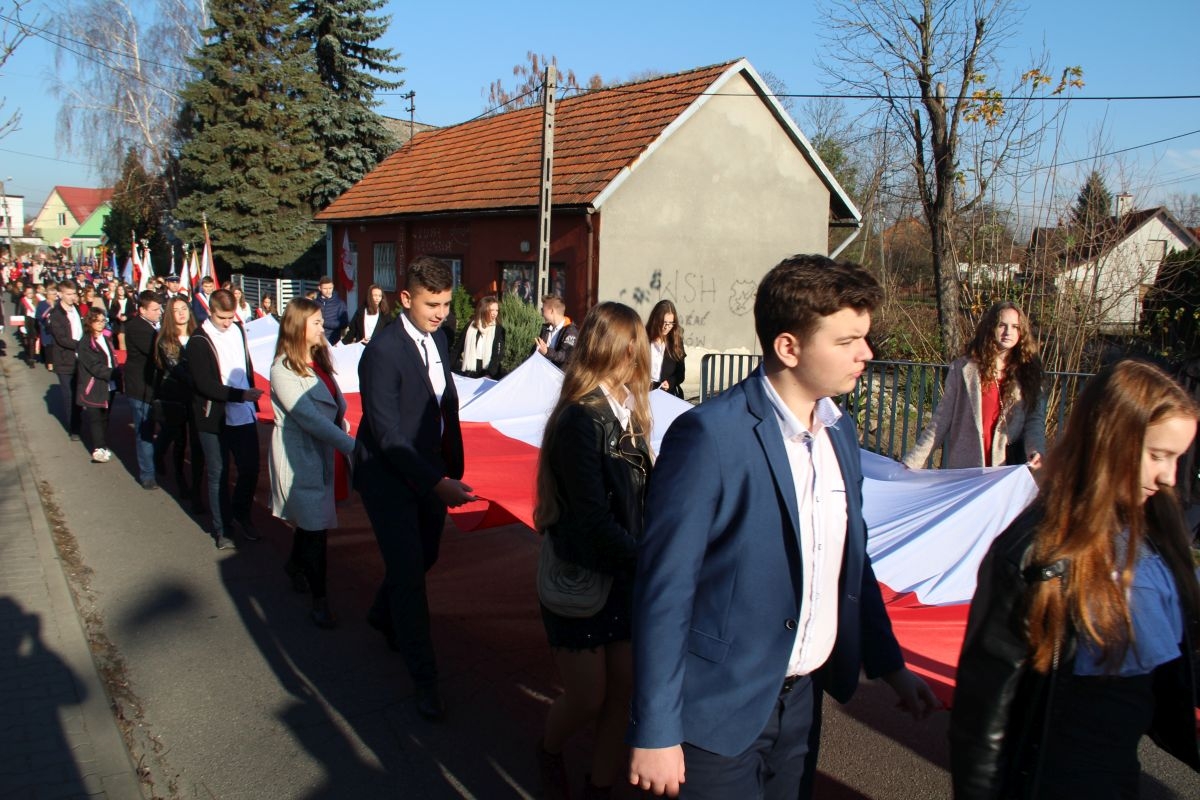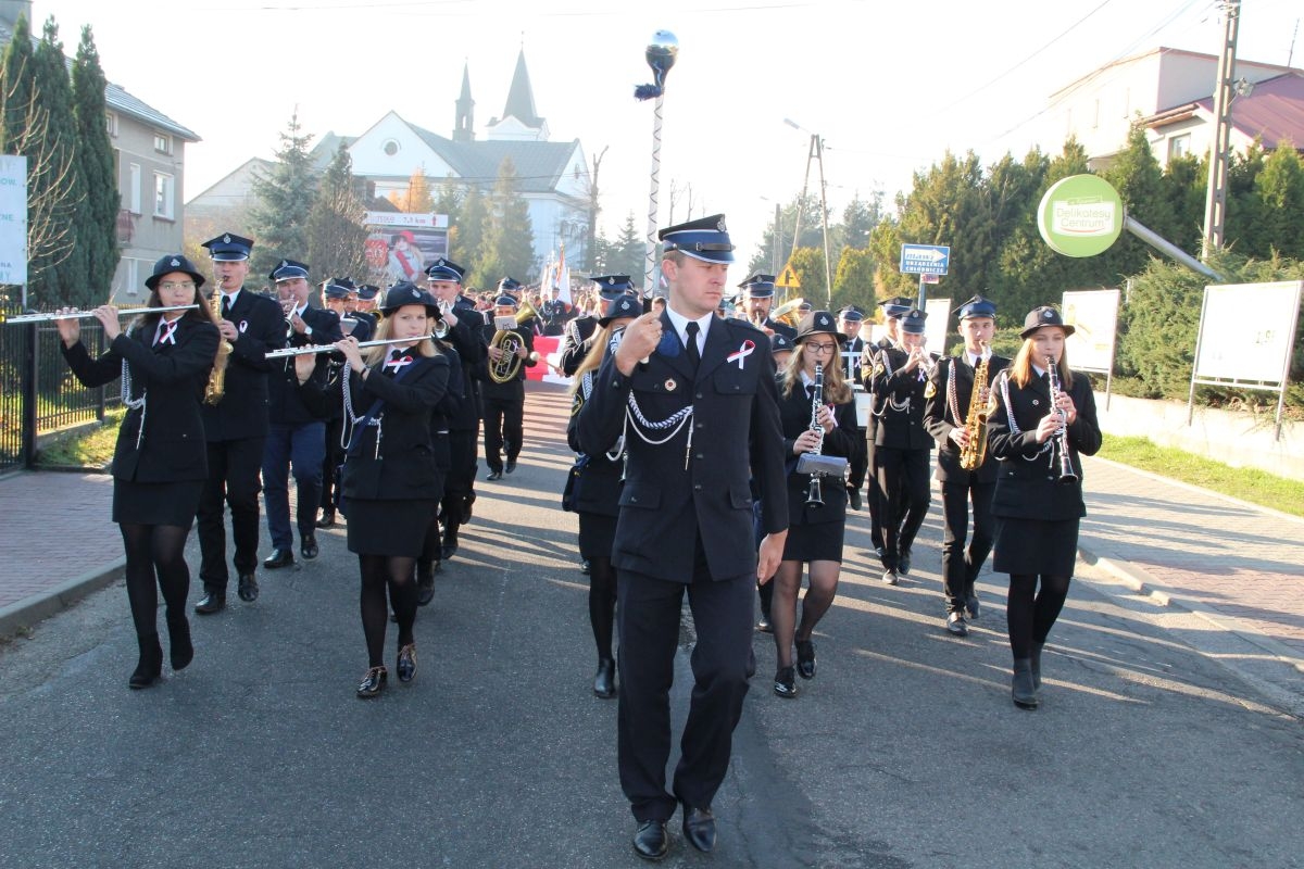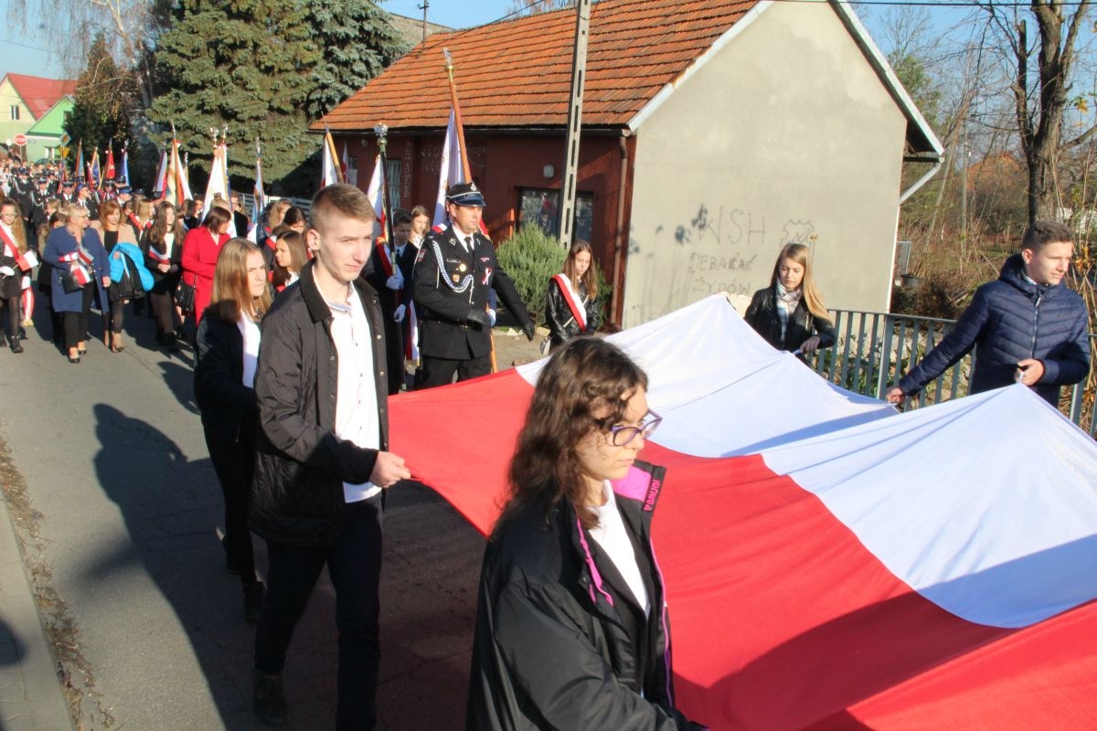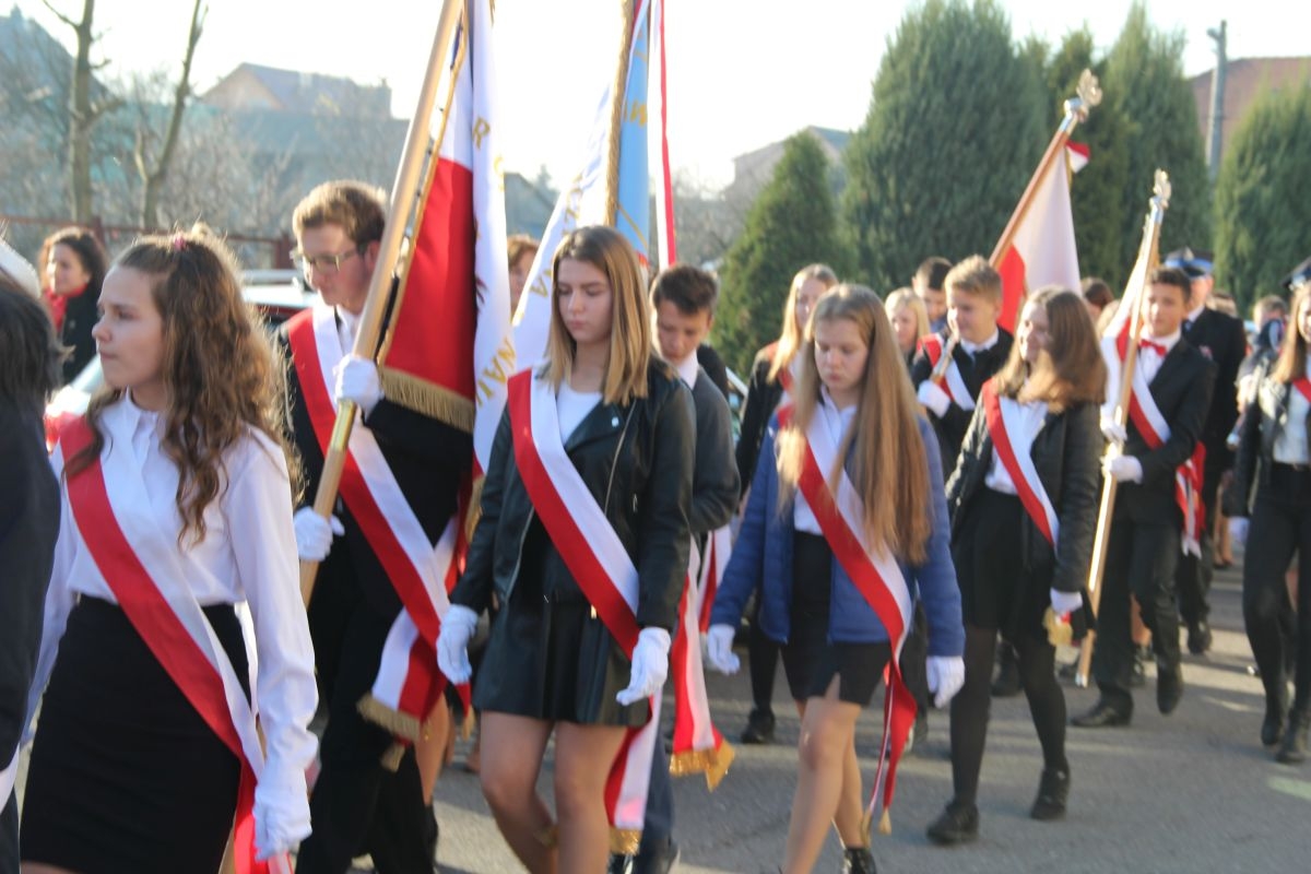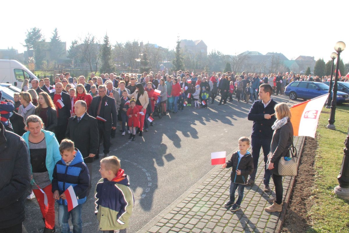 Po zakończeniu liturgii władze samorządowe, delegacje szkół i jednostek OSP wraz z pocztami sztandarowymi, a także przybyli mieszkańcy przy akompaniamencie Orkiestry Dętej z Okulic przemaszerowali do budynku Publicznej Szkoły Podstawowej w Rzezawie, gdzie miały miejsce dalsze uroczystości związane z celebracją Święta Niepodległości. W marszu wzięło udział w sumie kilkaset osób. Wiele z nich miało ze sobą biało-czerwone flagi. Największa z nich miała kilka metrów długości i była niesiona przez młodzież z terenu gminy Rzezawa.