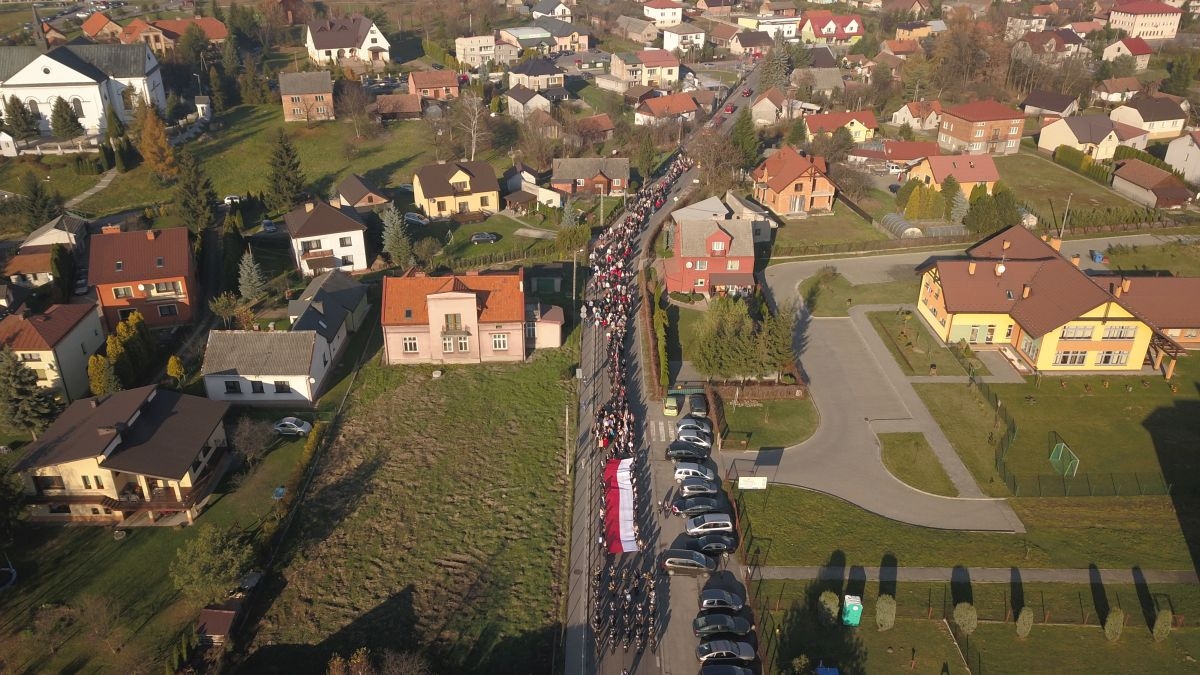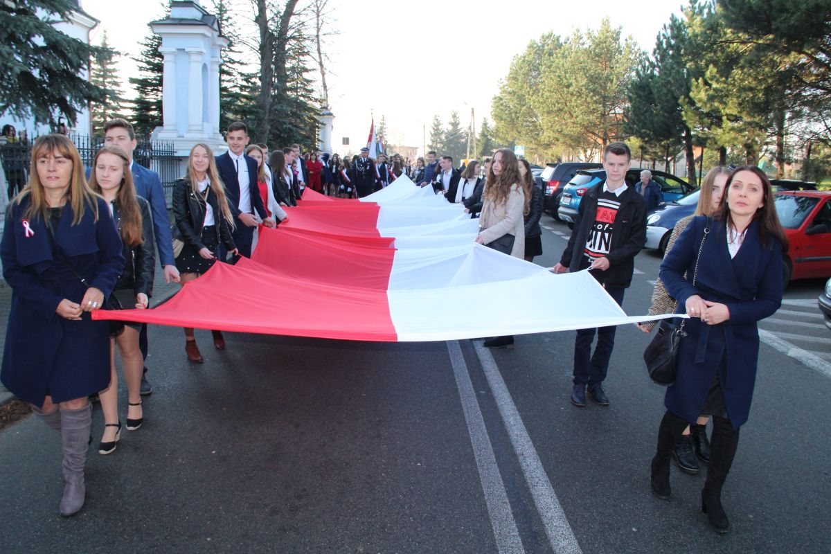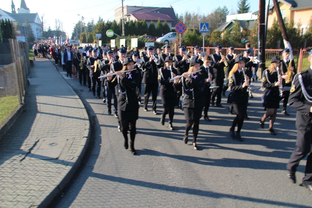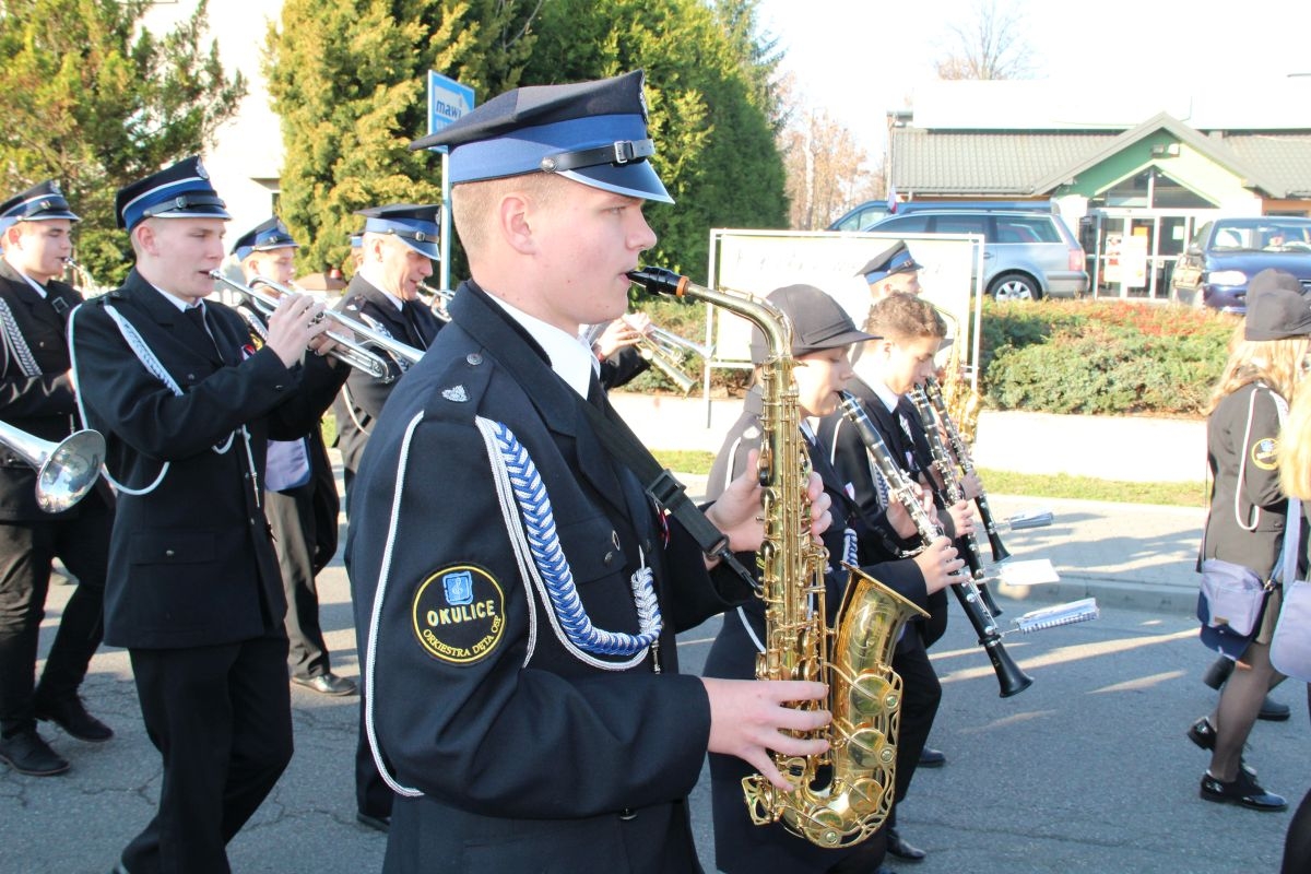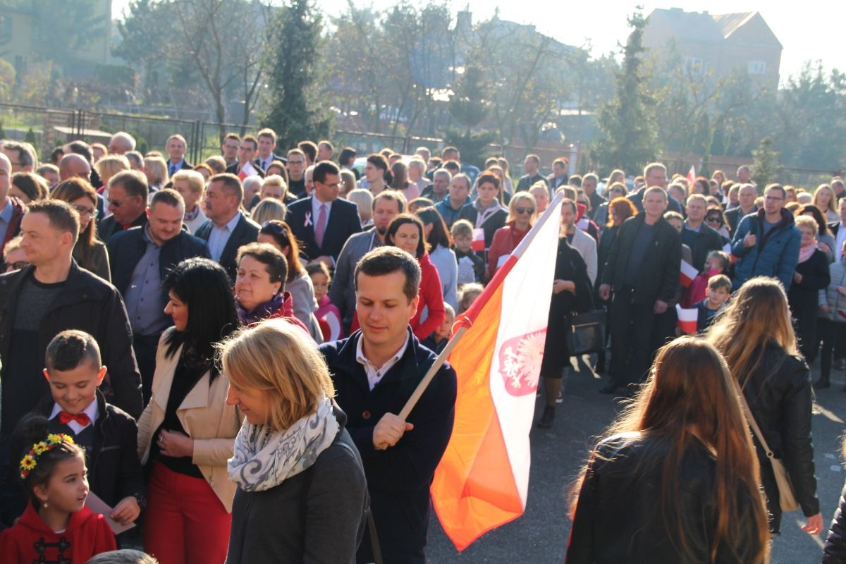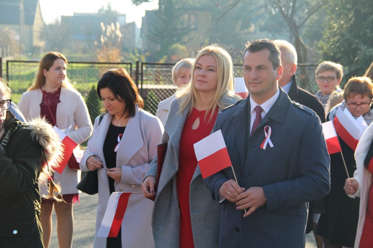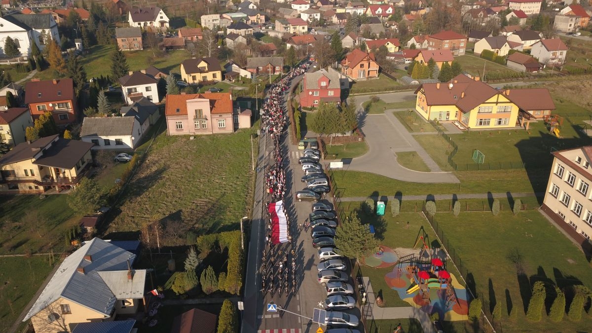 Po zakończeniu liturgii władze samorządowe, delegacje szkół i jednostek OSP wraz z pocztami sztandarowymi, a także przybyli mieszkańcy przy akompaniamencie Orkiestry Dętej z Okulic przemaszerowali do budynku Publicznej Szkoły Podstawowej w Rzezawie, gdzie miały miejsce dalsze uroczystości związane z celebracją Święta Niepodległości. W marszu wzięło udział w sumie kilkaset osób. Wiele z nich miało ze sobą biało-czerwone flagi. Największa z nich miała kilka metrów długości i była niesiona przez młodzież z terenu gminy Rzezawa.