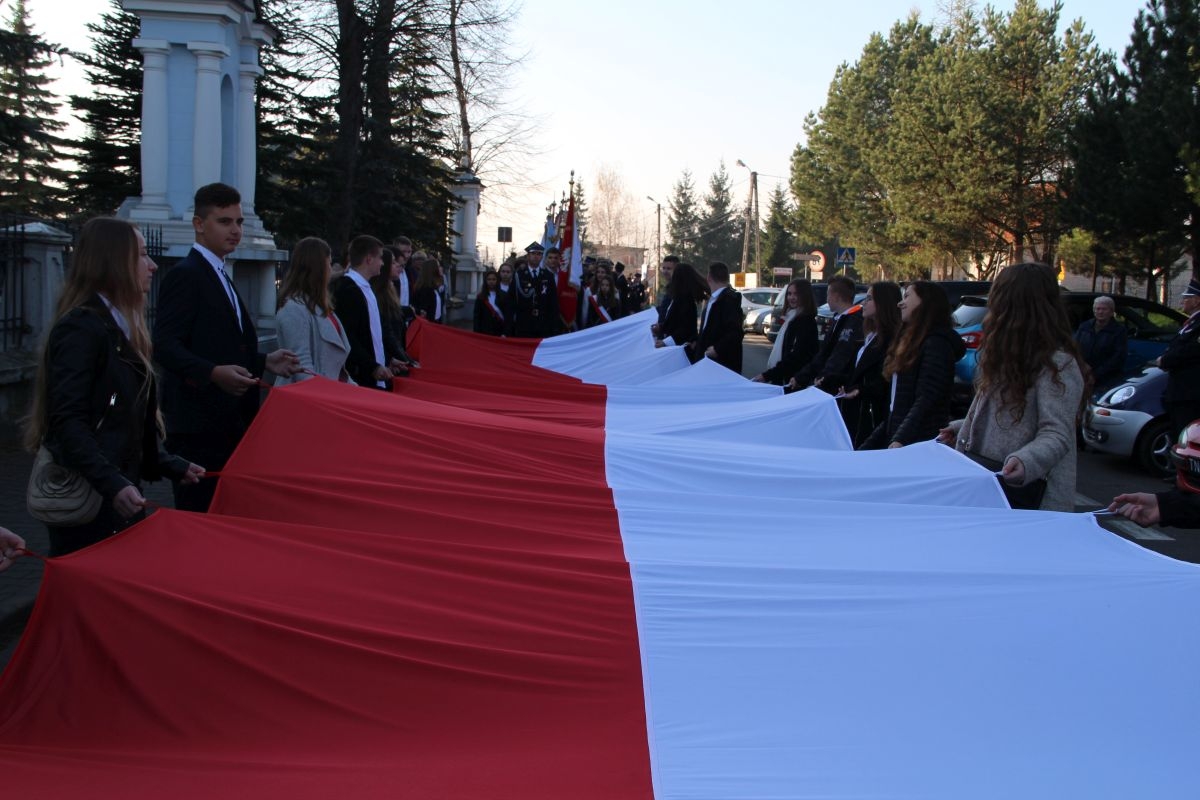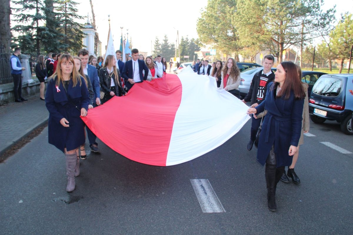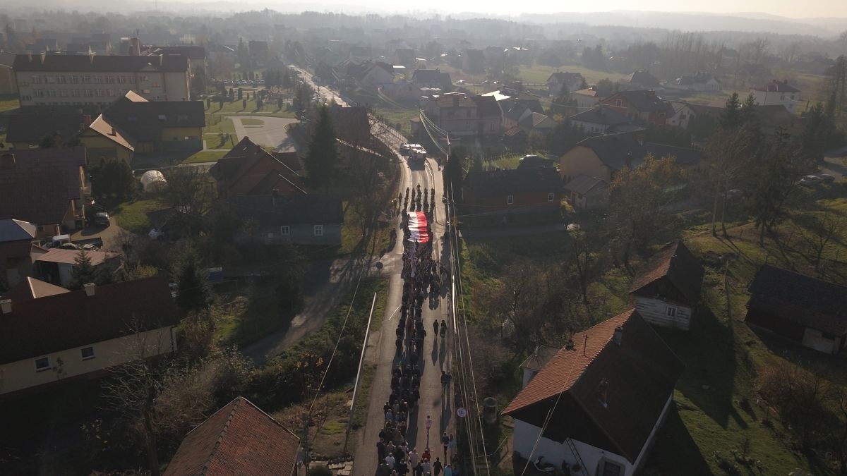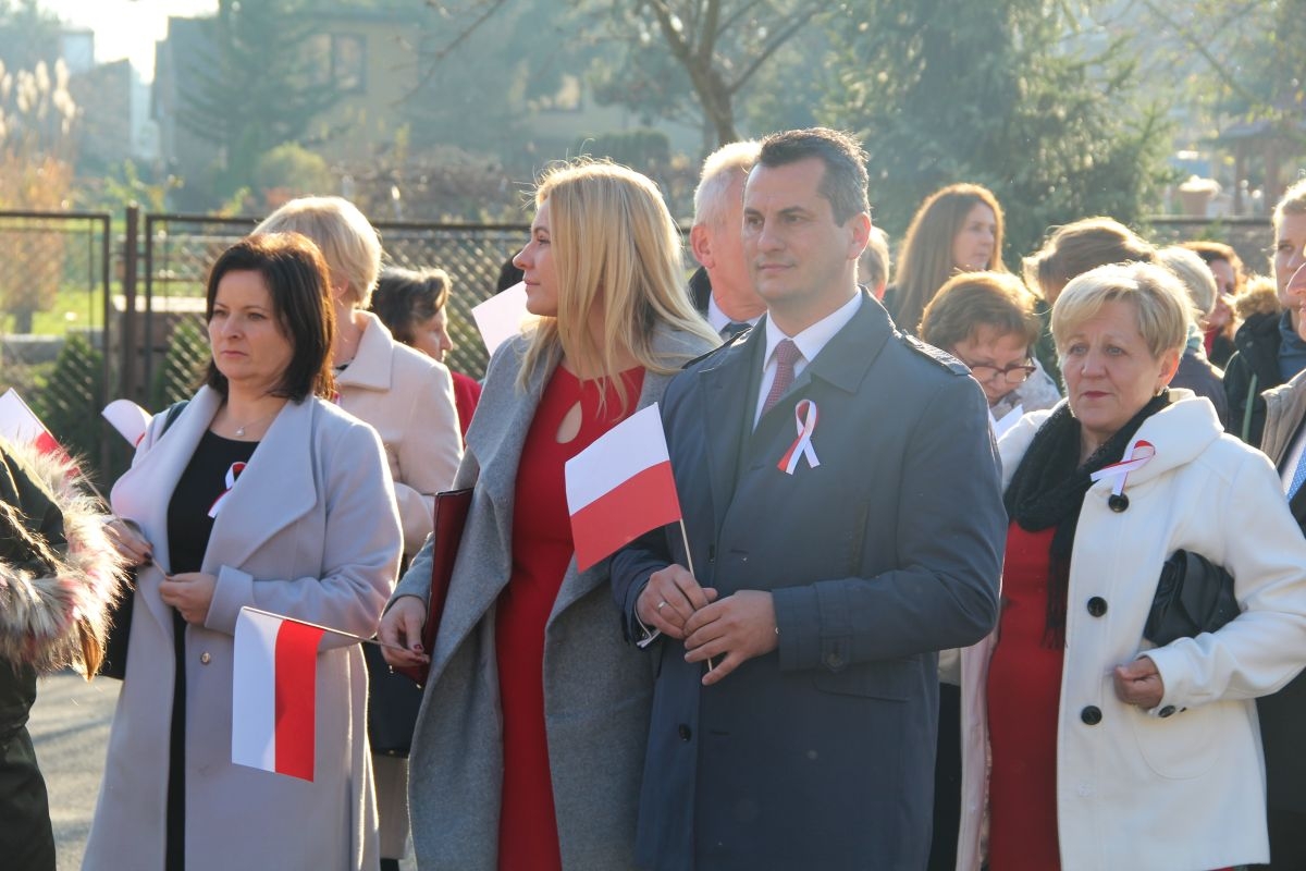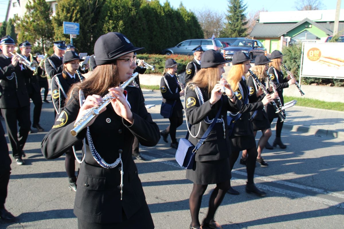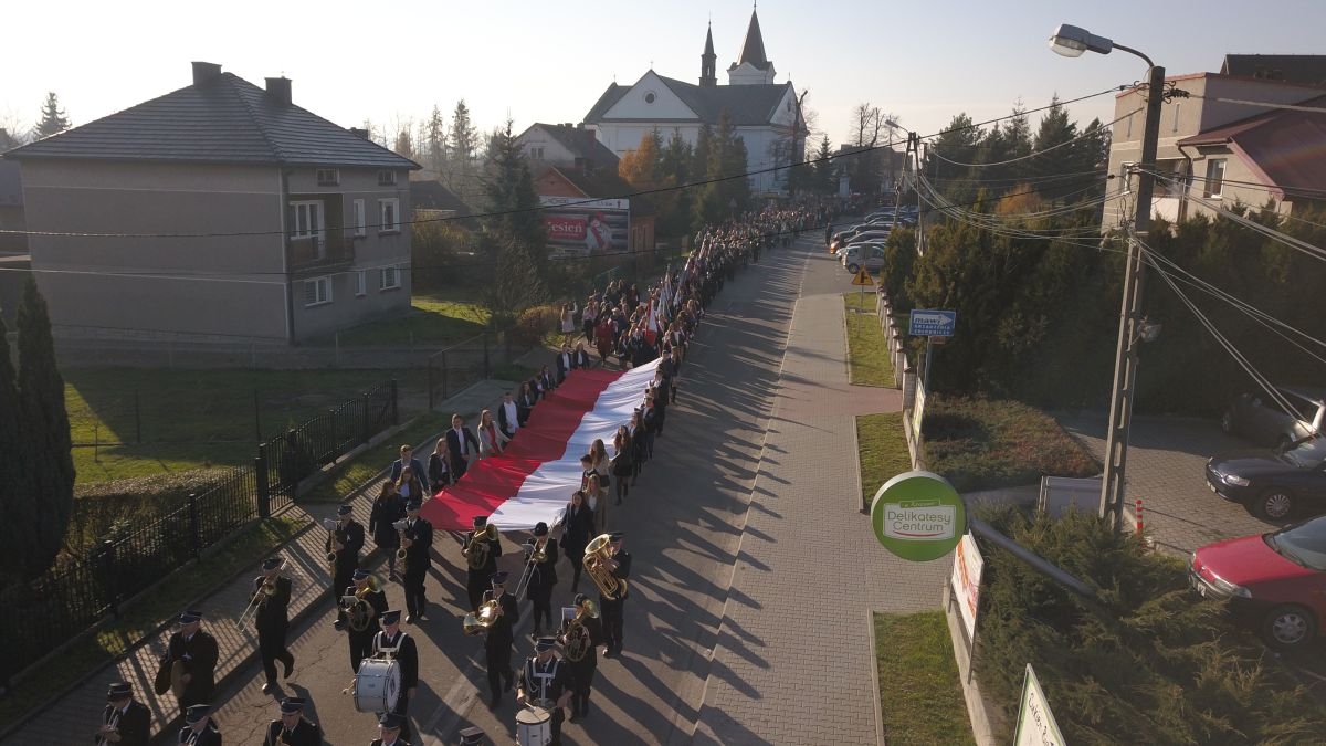 Po zakończeniu liturgii władze samorządowe, delegacje szkół i jednostek OSP wraz z pocztami sztandarowymi, a także przybyli mieszkańcy przy akompaniamencie Orkiestry Dętej z Okulic przemaszerowali do budynku Publicznej Szkoły Podstawowej w Rzezawie, gdzie miały miejsce dalsze uroczystości związane z celebracją Święta Niepodległości. W marszu wzięło udział w sumie kilkaset osób. Wiele z nich miało ze sobą biało-czerwone flagi. Największa z nich miała kilka metrów długości i była niesiona przez młodzież z terenu gminy Rzezawa.