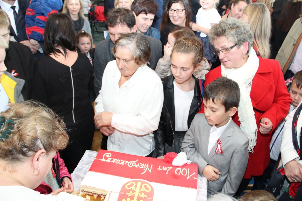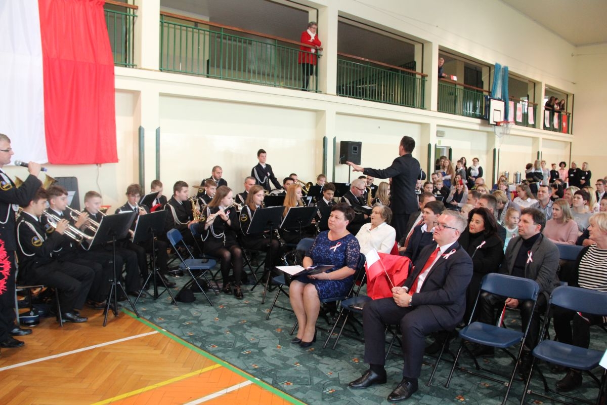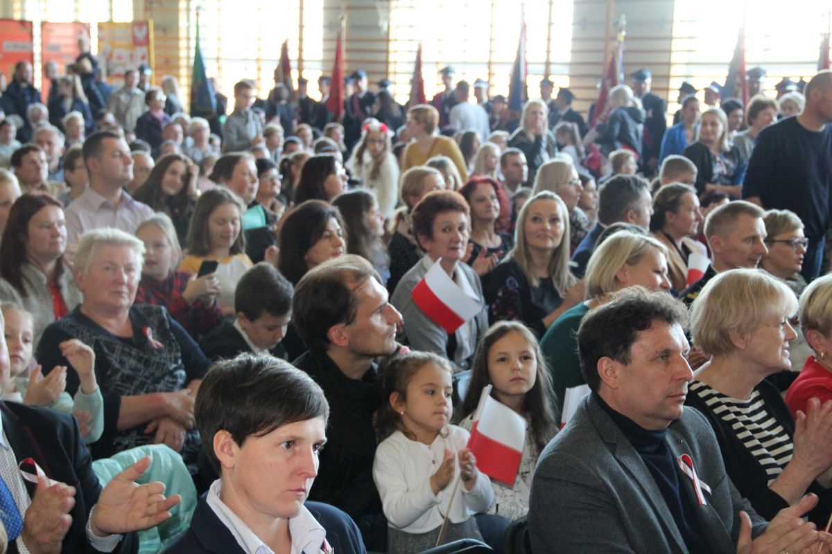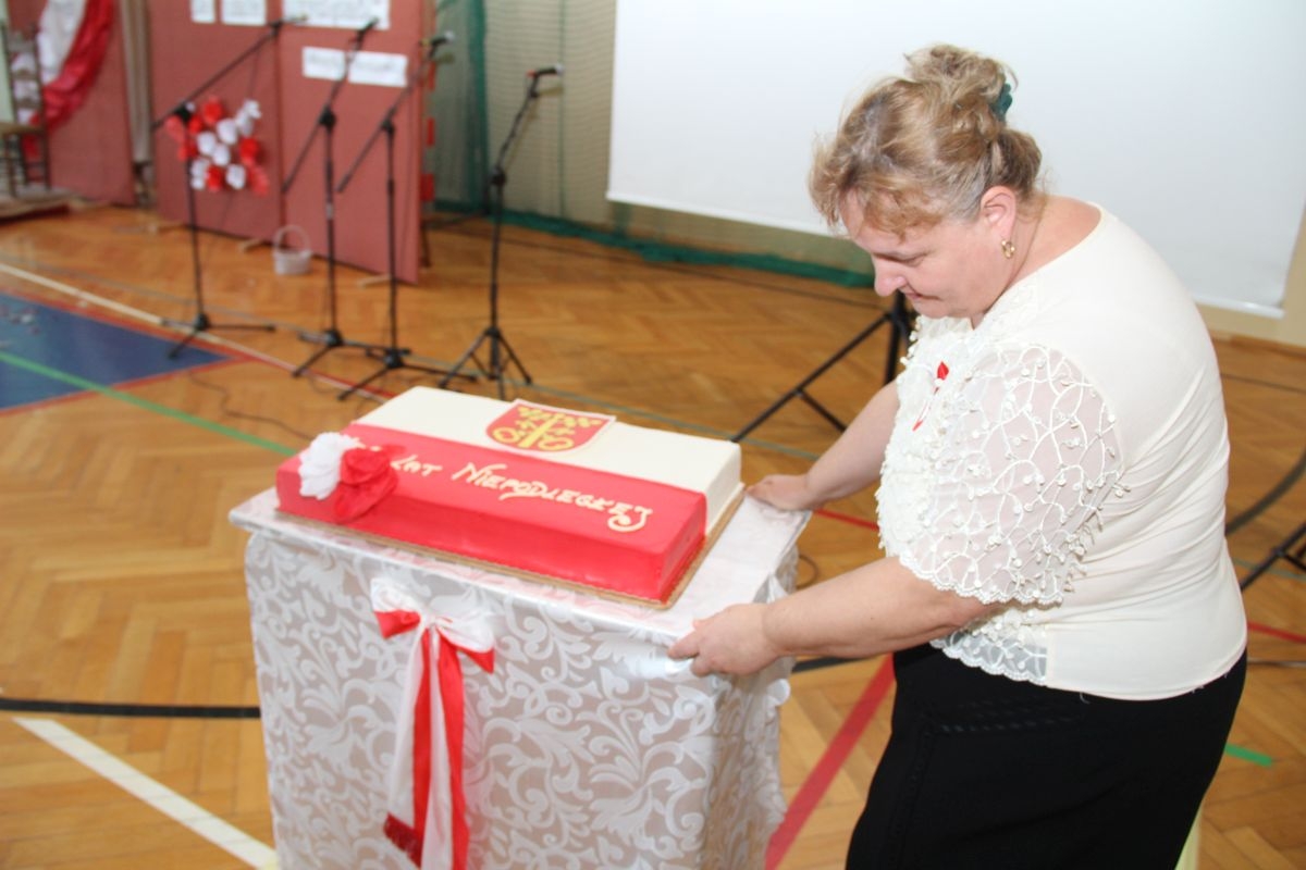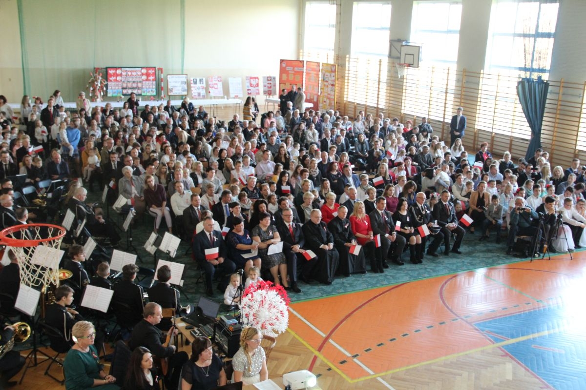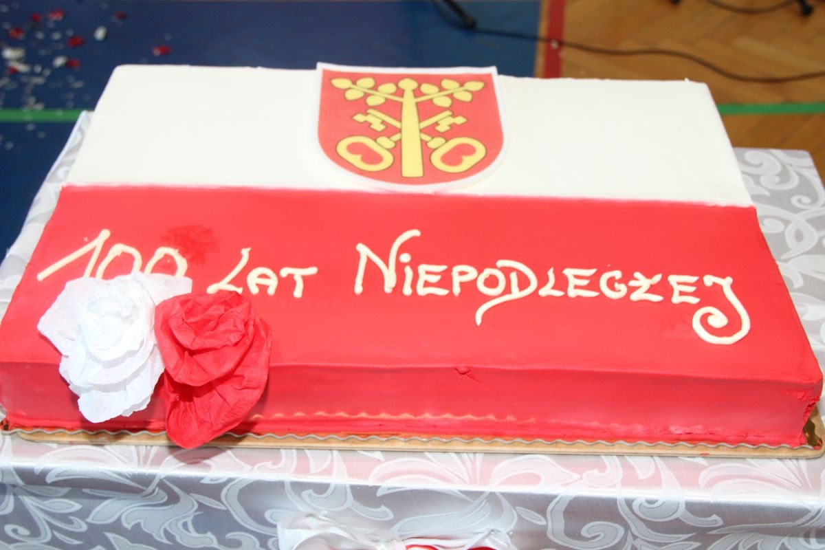 Na sali gimnastycznej Publicznej Szkoły Podstawowej w Rzezawie odbyła się część artystyczna gminnych uroczystości związanych z odzyskaniem przez naszą Ojczyznę niepodległości. W programie znalazł się m.in. występ przedszkolaków, którzy zaśpiewali piosenkę pt. „Jestem Polką i Polakiem” oraz występ muzyczno – teatralny pt. „100 powodów do radości, by świętować Niepodległość”, który przedstawiły dzieci i młodzież ze szkoły w Rzezawie. Mieszkańcy gminy mieli także możliwość wzięcia udziału w koncercie pieśni patriotycznych w wykonaniu orkiestry z Okulic. Po jego zakończeniu na wszystkich uczestników obchodów czekał biało-czerwony tort przygotowany specjalnie na 100-lecie odzyskania przez Polskę niepodległości.
