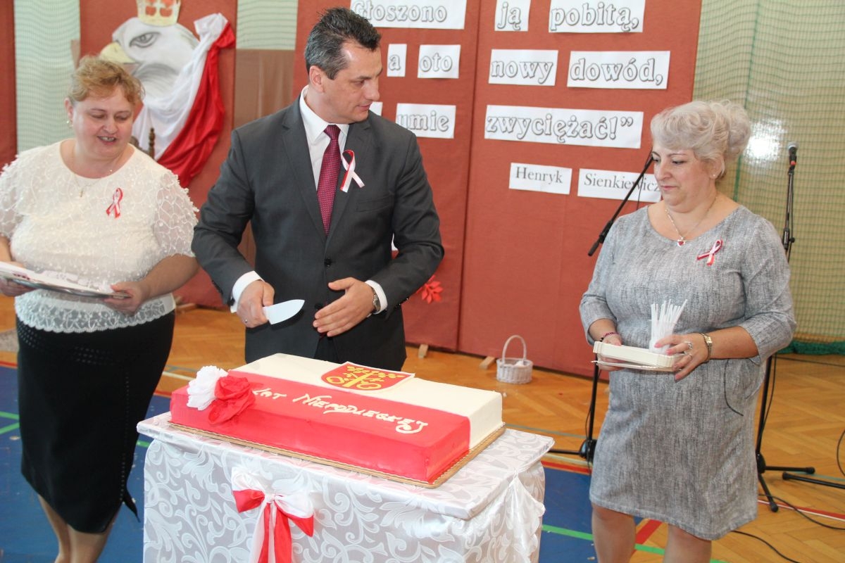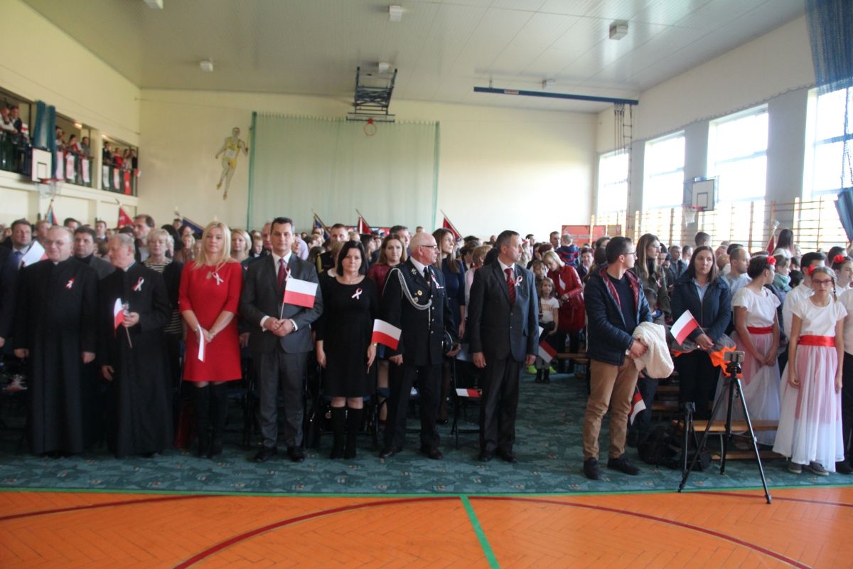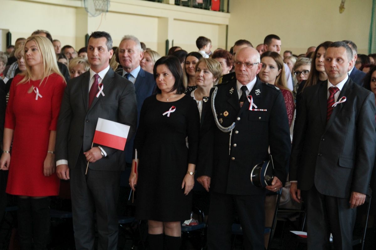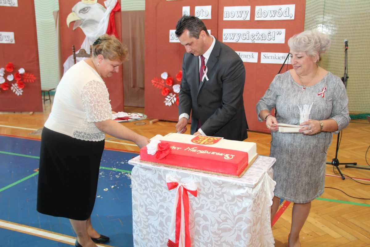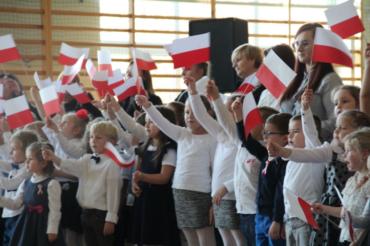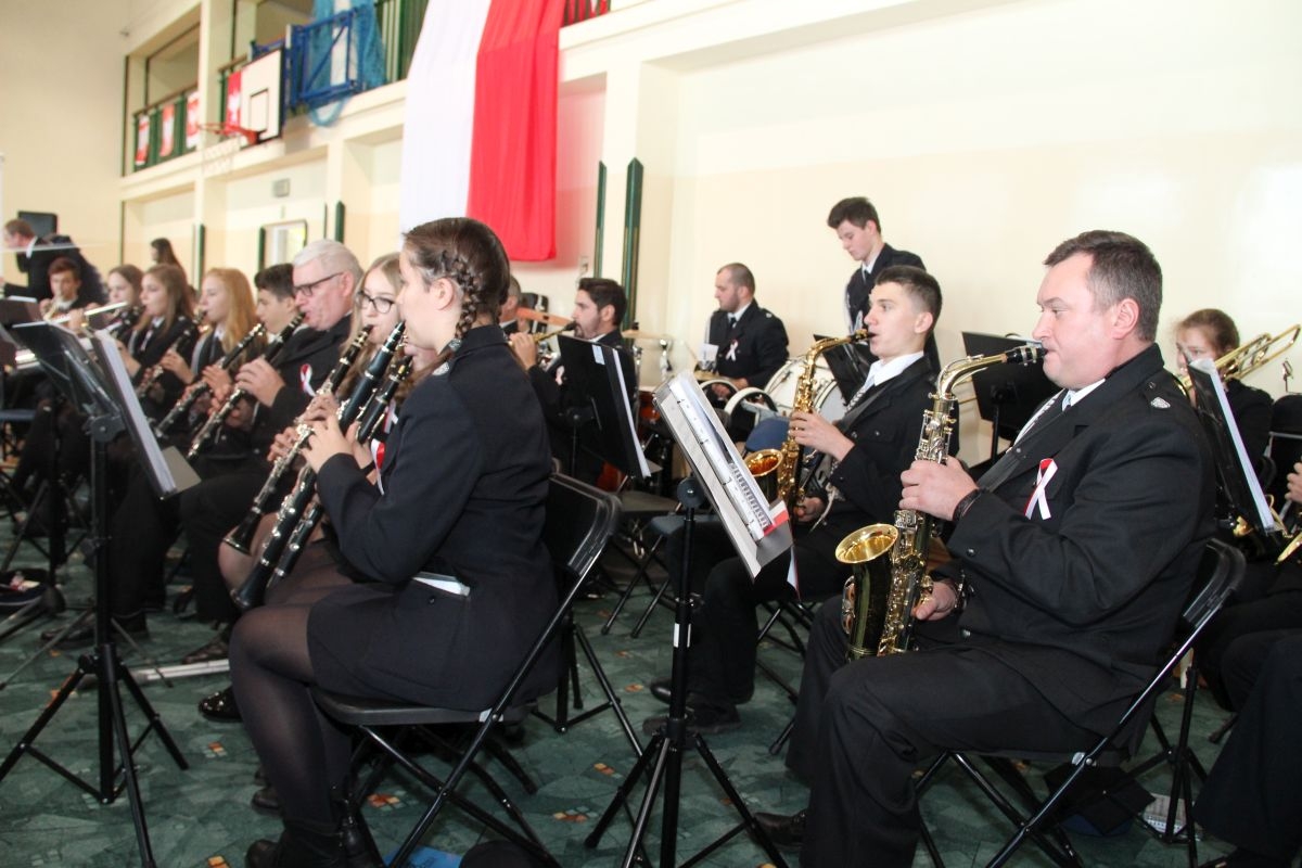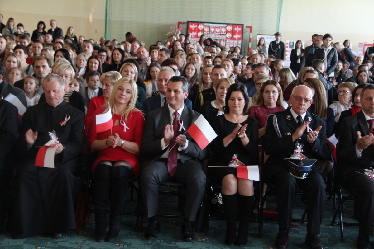Na sali gimnastycznej Publicznej Szkoły Podstawowej w Rzezawie odbyła się część artystyczna gminnych uroczystości związanych z odzyskaniem przez naszą Ojczyznę niepodległości. W programie znalazł się m.in. występ przedszkolaków, którzy zaśpiewali piosenkę pt. „Jestem Polką i Polakiem” oraz występ muzyczno – teatralny pt. „100 powodów do radości, by świętować Niepodległość”, który przedstawiły dzieci i młodzież ze szkoły w Rzezawie. Mieszkańcy gminy mieli także możliwość wzięcia udziału w koncercie pieśni patriotycznych w wykonaniu orkiestry z Okulic. Po jego zakończeniu na wszystkich uczestników obchodów czekał biało-czerwony tort przygotowany specjalnie na 100-lecie odzyskania przez Polskę niepodległości.