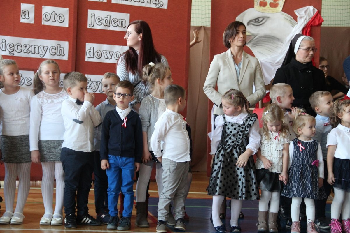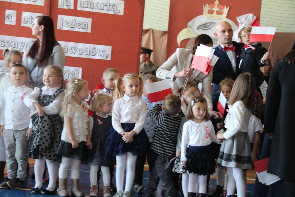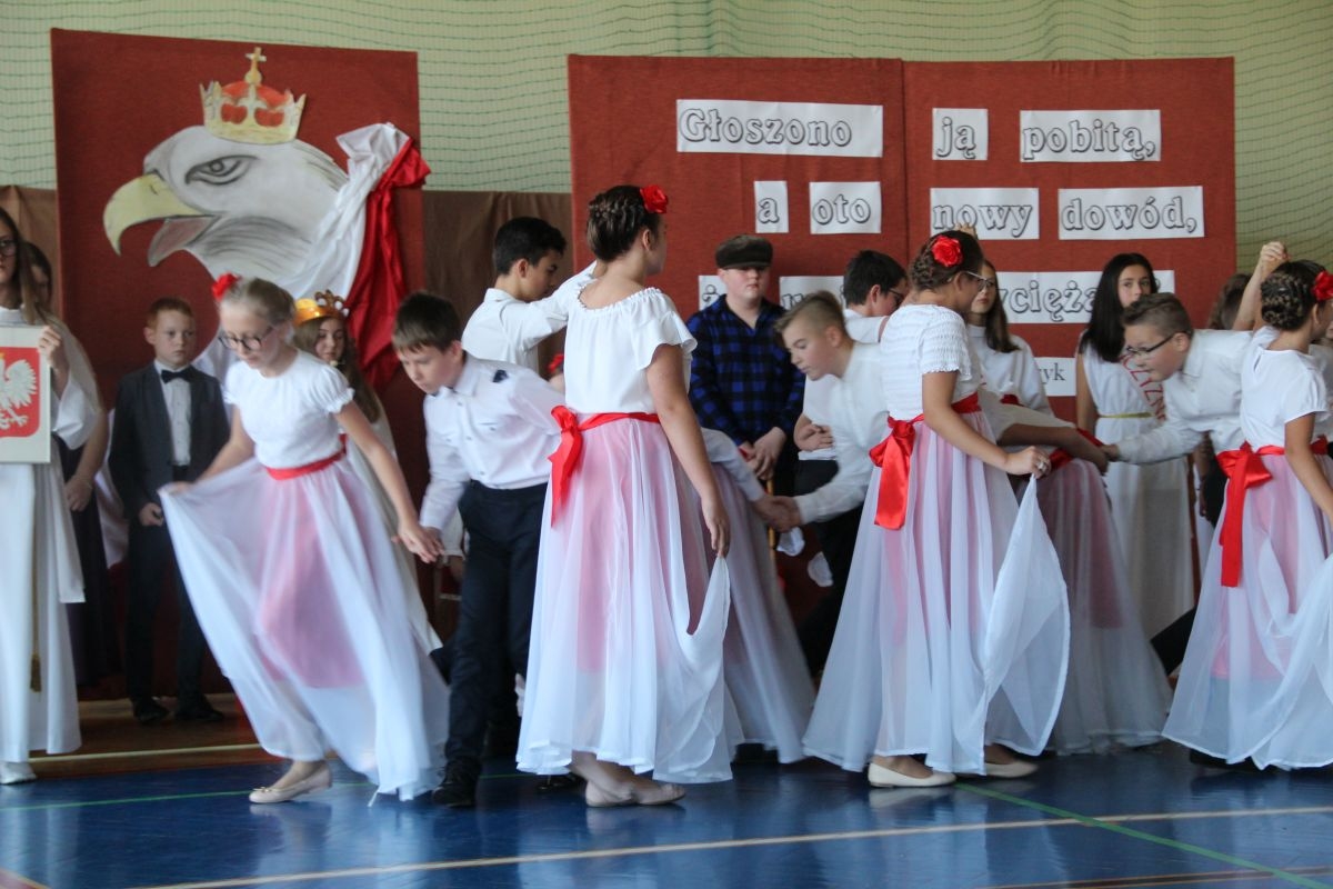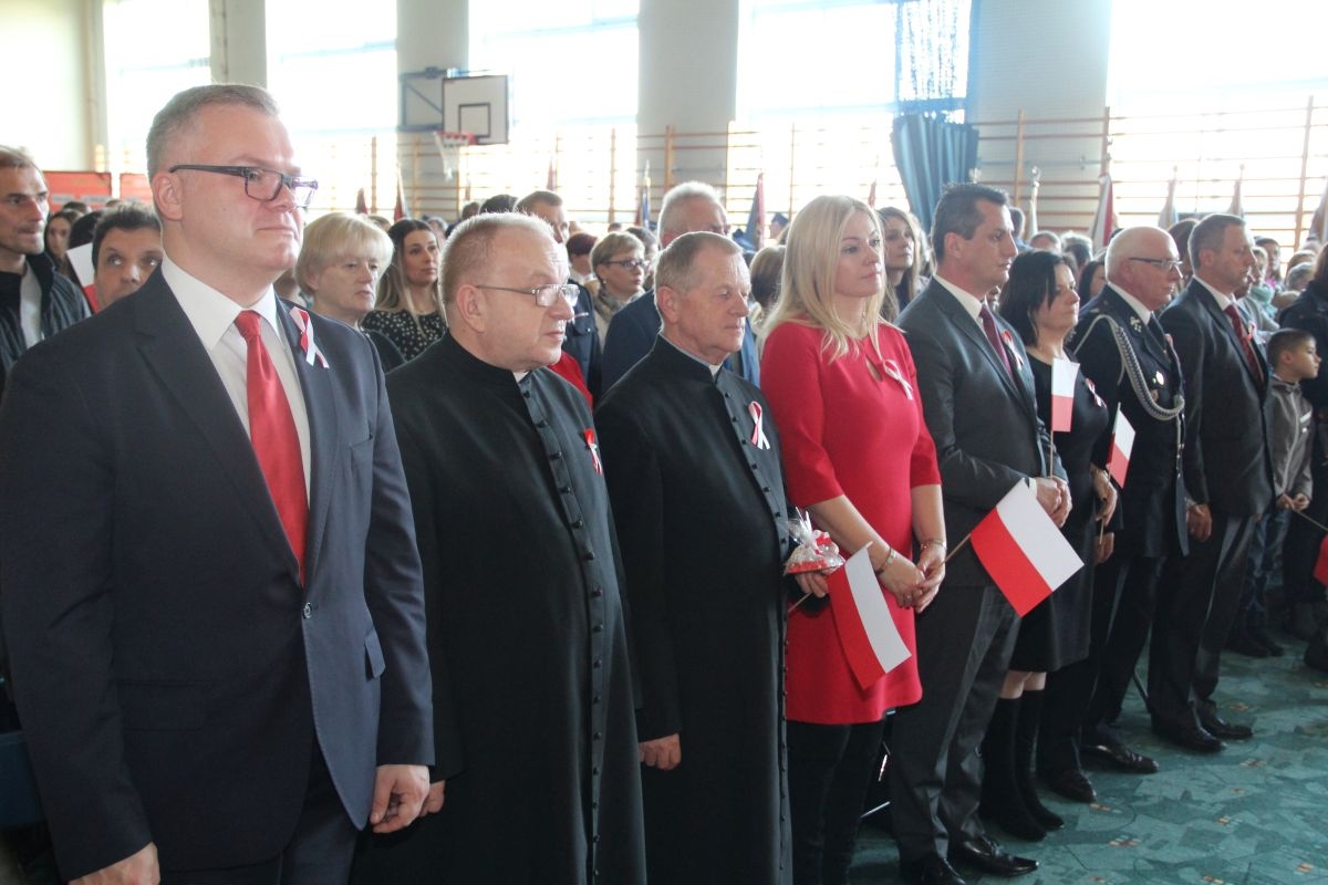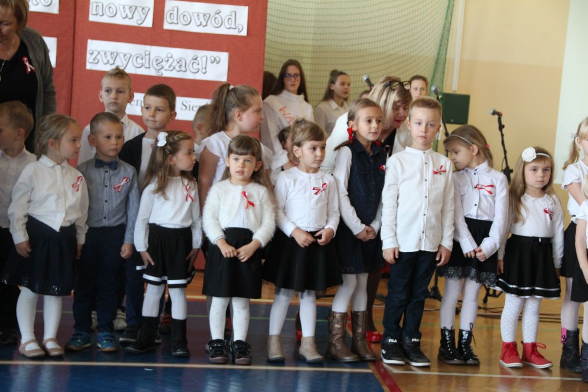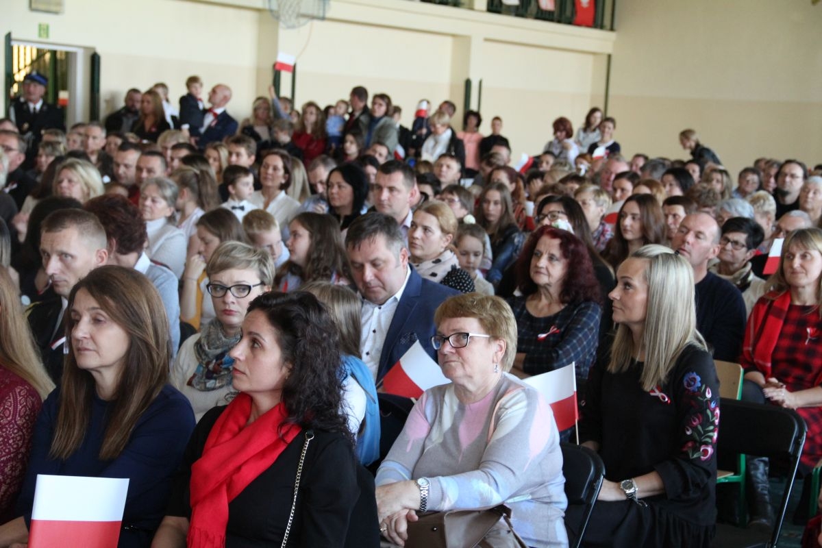 Na sali gimnastycznej Publicznej Szkoły Podstawowej w Rzezawie odbyła się część artystyczna gminnych uroczystości związanych z odzyskaniem przez naszą Ojczyznę niepodległości. W programie znalazł się m.in. występ przedszkolaków, którzy zaśpiewali piosenkę pt. „Jestem Polką i Polakiem” oraz występ muzyczno – teatralny pt. „100 powodów do radości, by świętować Niepodległość”, który przedstawiły dzieci i młodzież ze szkoły w Rzezawie. Mieszkańcy gminy mieli także możliwość wzięcia udziału w koncercie pieśni patriotycznych w wykonaniu orkiestry z Okulic. Po jego zakończeniu na wszystkich uczestników obchodów czekał biało-czerwony tort przygotowany specjalnie na 100-lecie odzyskania przez Polskę niepodległości.