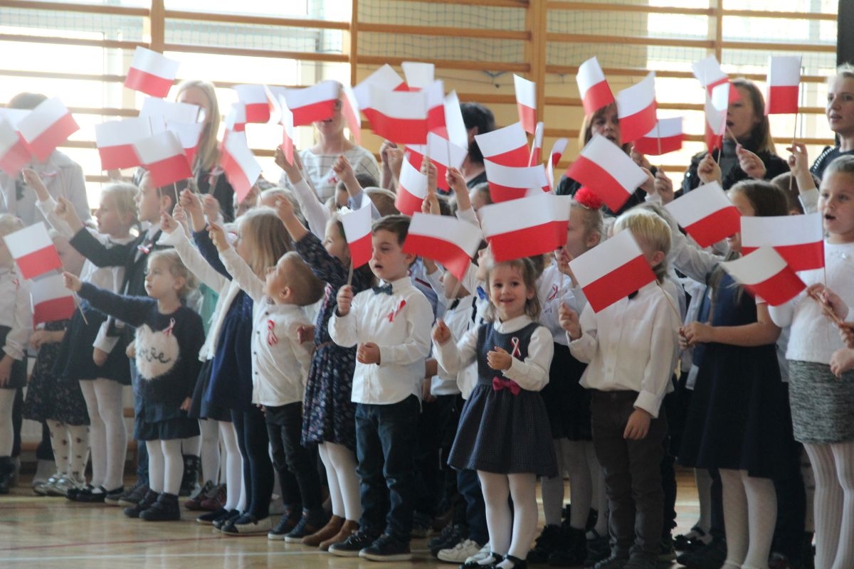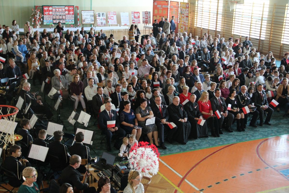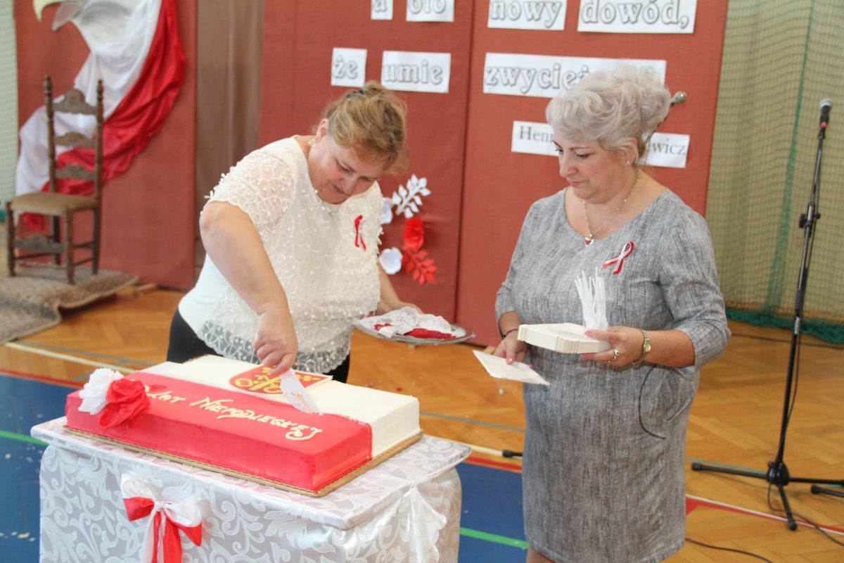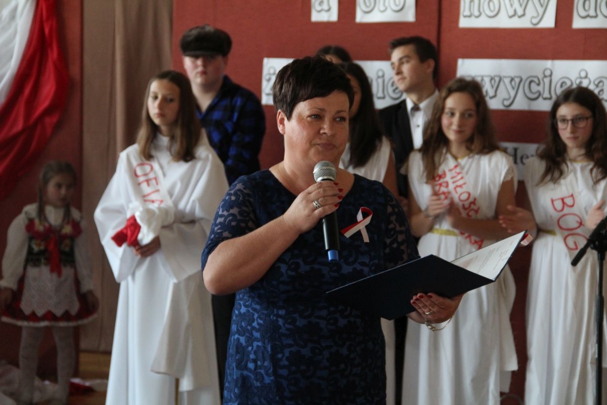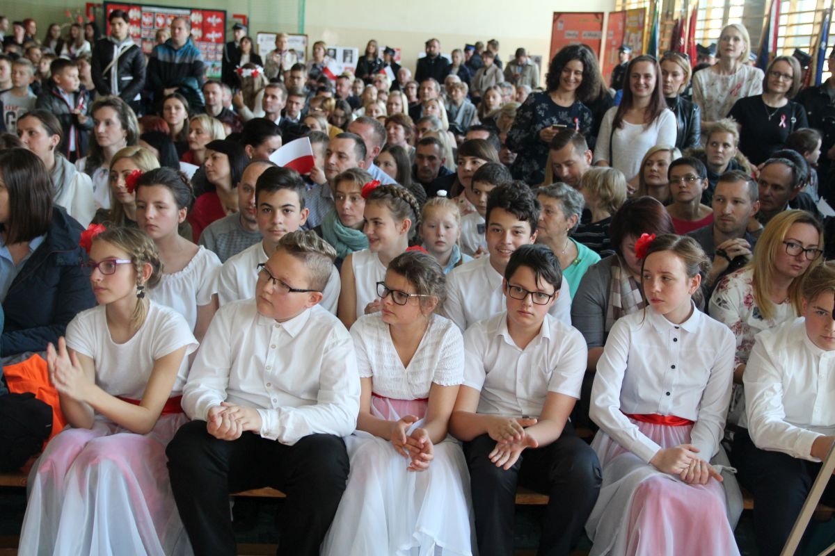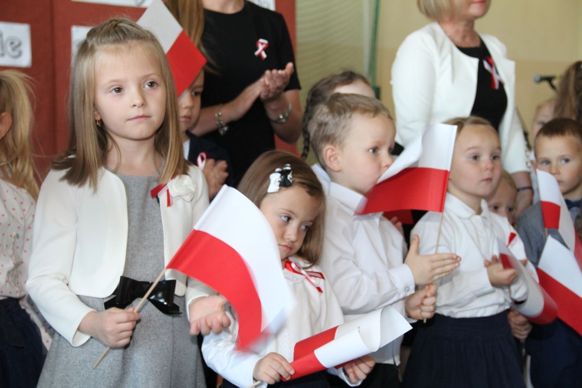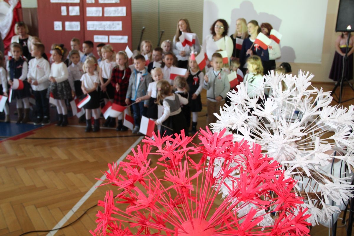 Na sali gimnastycznej Publicznej Szkoły Podstawowej w Rzezawie odbyła się część artystyczna gminnych uroczystości związanych z odzyskaniem przez naszą Ojczyznę niepodległości. W programie znalazł się m.in. występ przedszkolaków, którzy zaśpiewali piosenkę pt. „Jestem Polką i Polakiem” oraz występ muzyczno – teatralny pt. „100 powodów do radości, by świętować Niepodległość”, który przedstawiły dzieci i młodzież ze szkoły w Rzezawie. Mieszkańcy gminy mieli także możliwość wzięcia udziału w koncercie pieśni patriotycznych w wykonaniu orkiestry z Okulic. Po jego zakończeniu na wszystkich uczestników obchodów czekał biało-czerwony tort przygotowany specjalnie na 100-lecie odzyskania przez Polskę niepodległości.