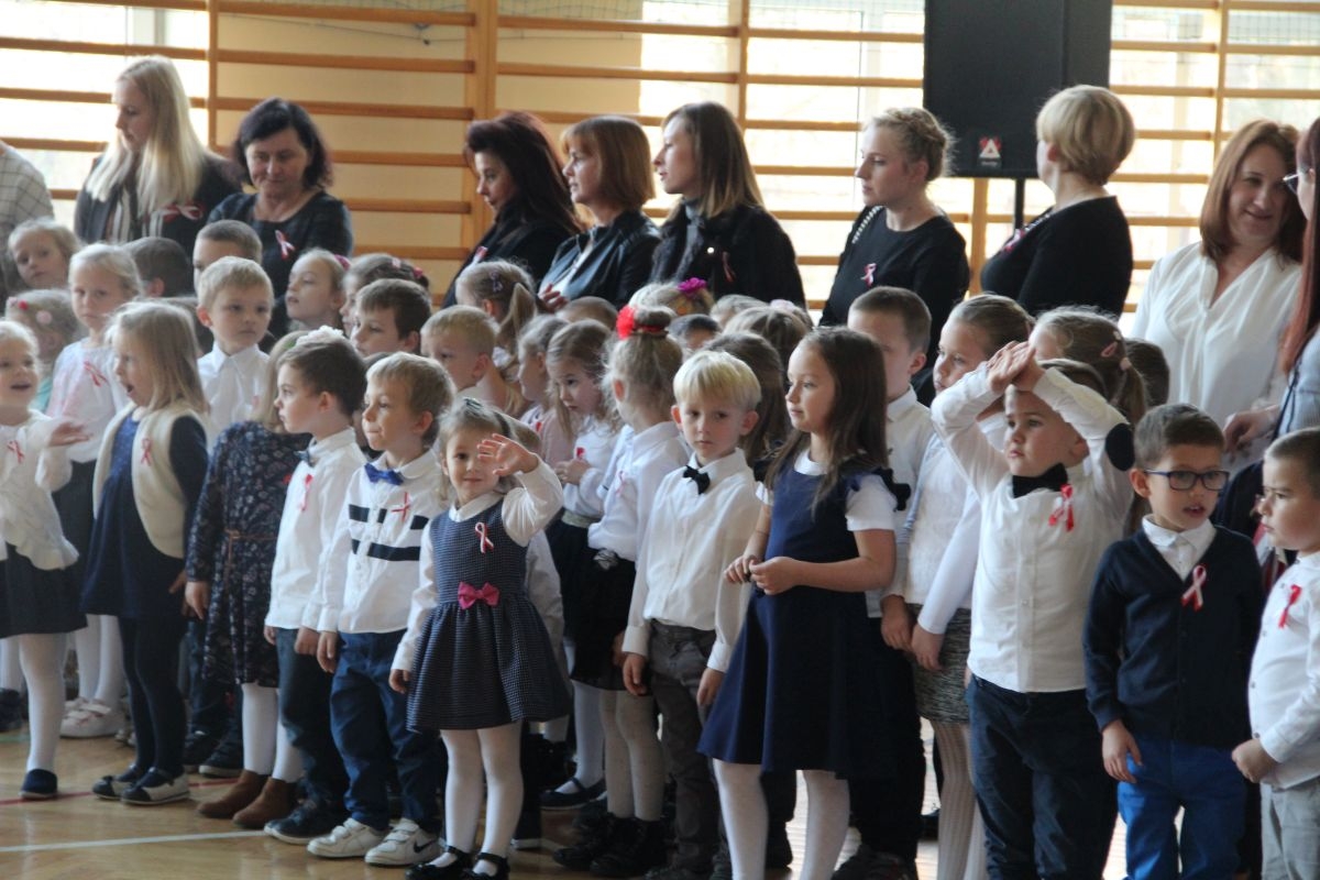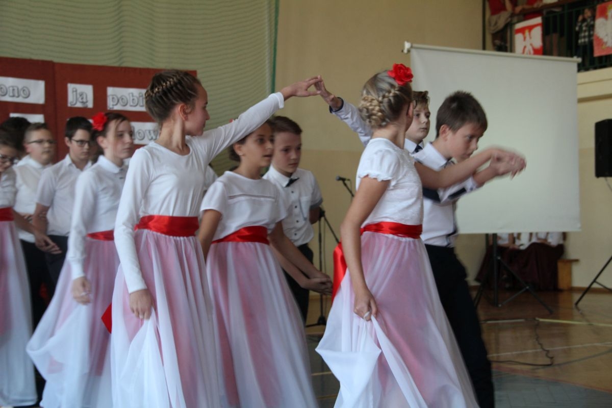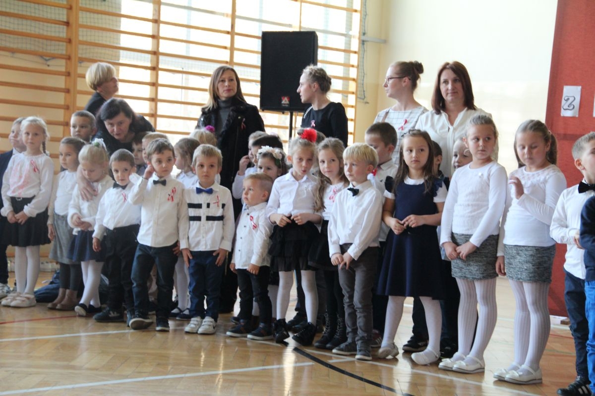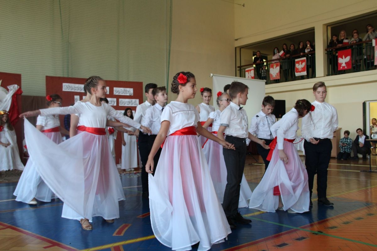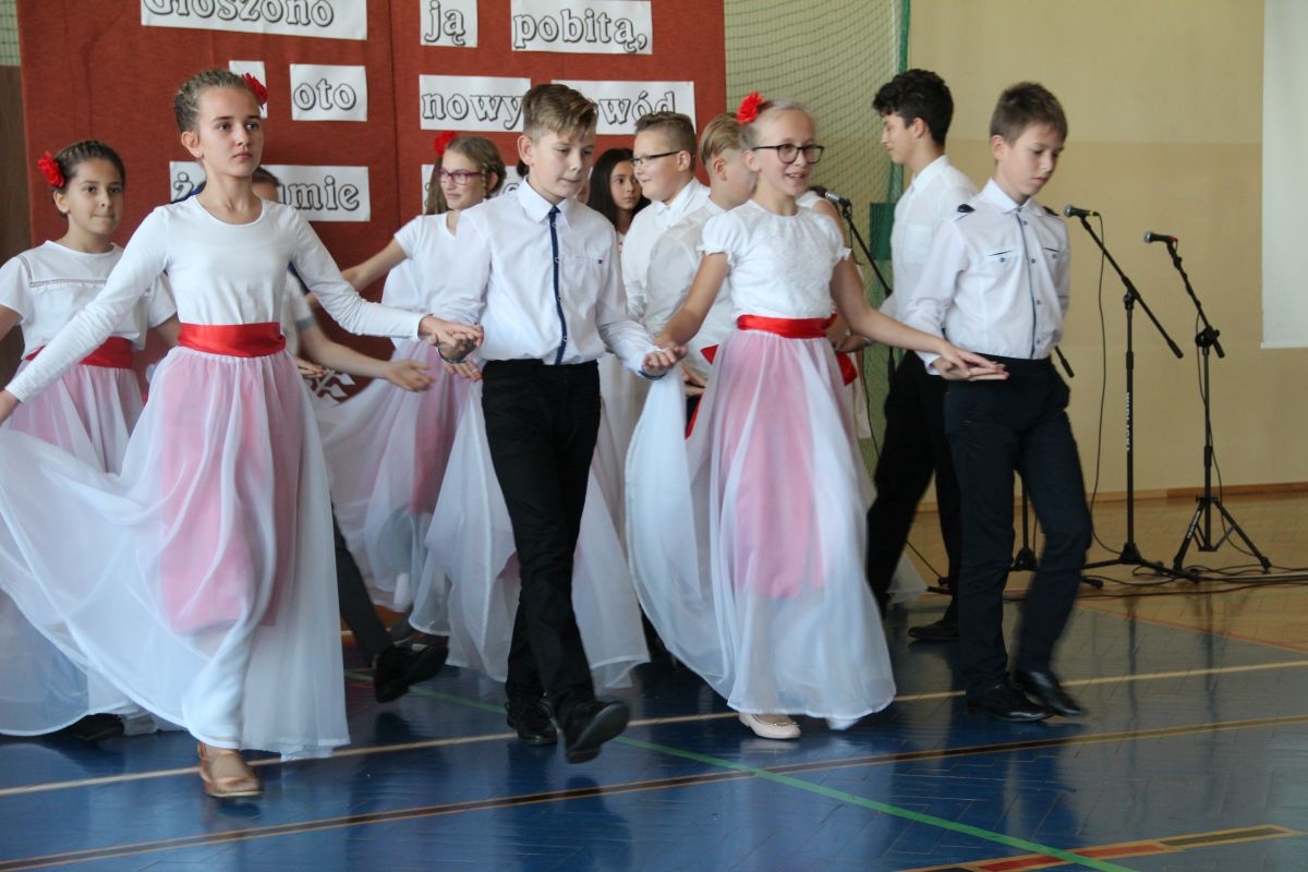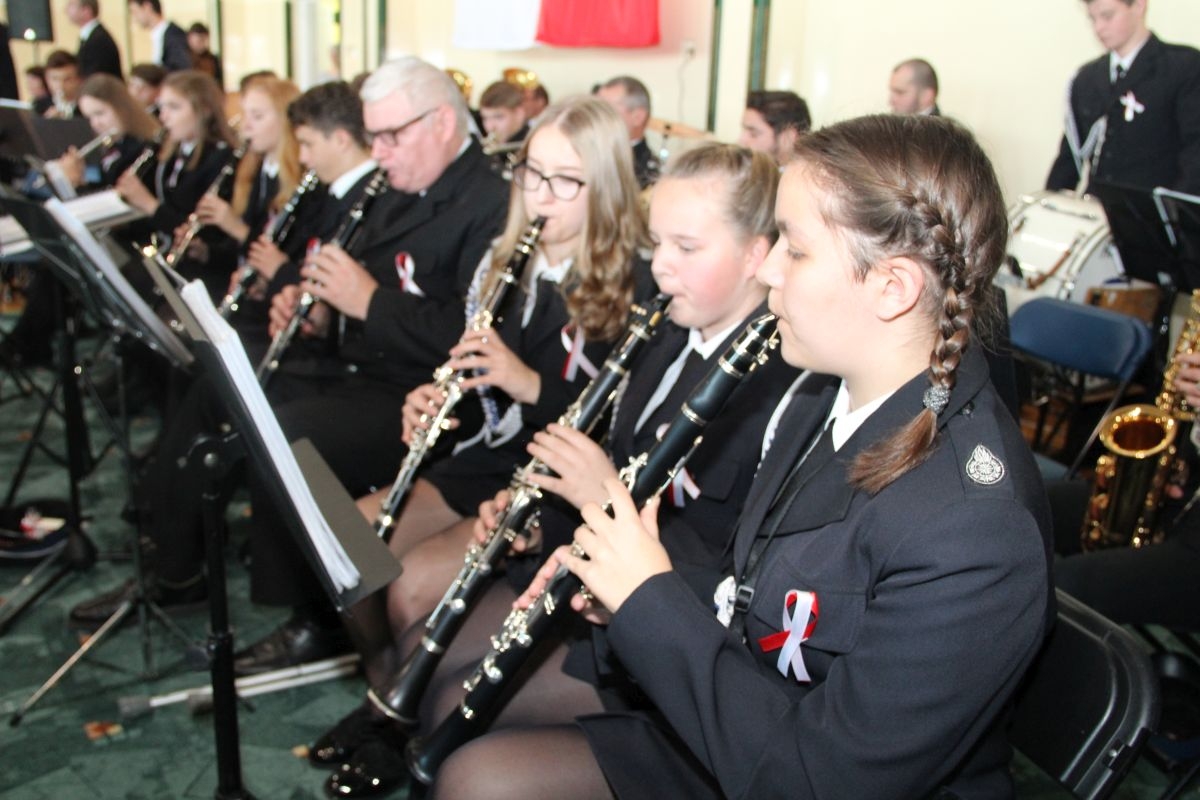 Na sali gimnastycznej Publicznej Szkoły Podstawowej w Rzezawie odbyła się część artystyczna gminnych uroczystości związanych z odzyskaniem przez naszą Ojczyznę niepodległości. W programie znalazł się m.in. występ przedszkolaków, którzy zaśpiewali piosenkę pt. „Jestem Polką i Polakiem” oraz występ muzyczno – teatralny pt. „100 powodów do radości, by świętować Niepodległość”, który przedstawiły dzieci i młodzież ze szkoły w Rzezawie. Mieszkańcy gminy mieli także możliwość wzięcia udziału w koncercie pieśni patriotycznych w wykonaniu orkiestry z Okulic. Po jego zakończeniu na wszystkich uczestników obchodów czekał biało-czerwony tort przygotowany specjalnie na 100-lecie odzyskania przez Polskę niepodległości.