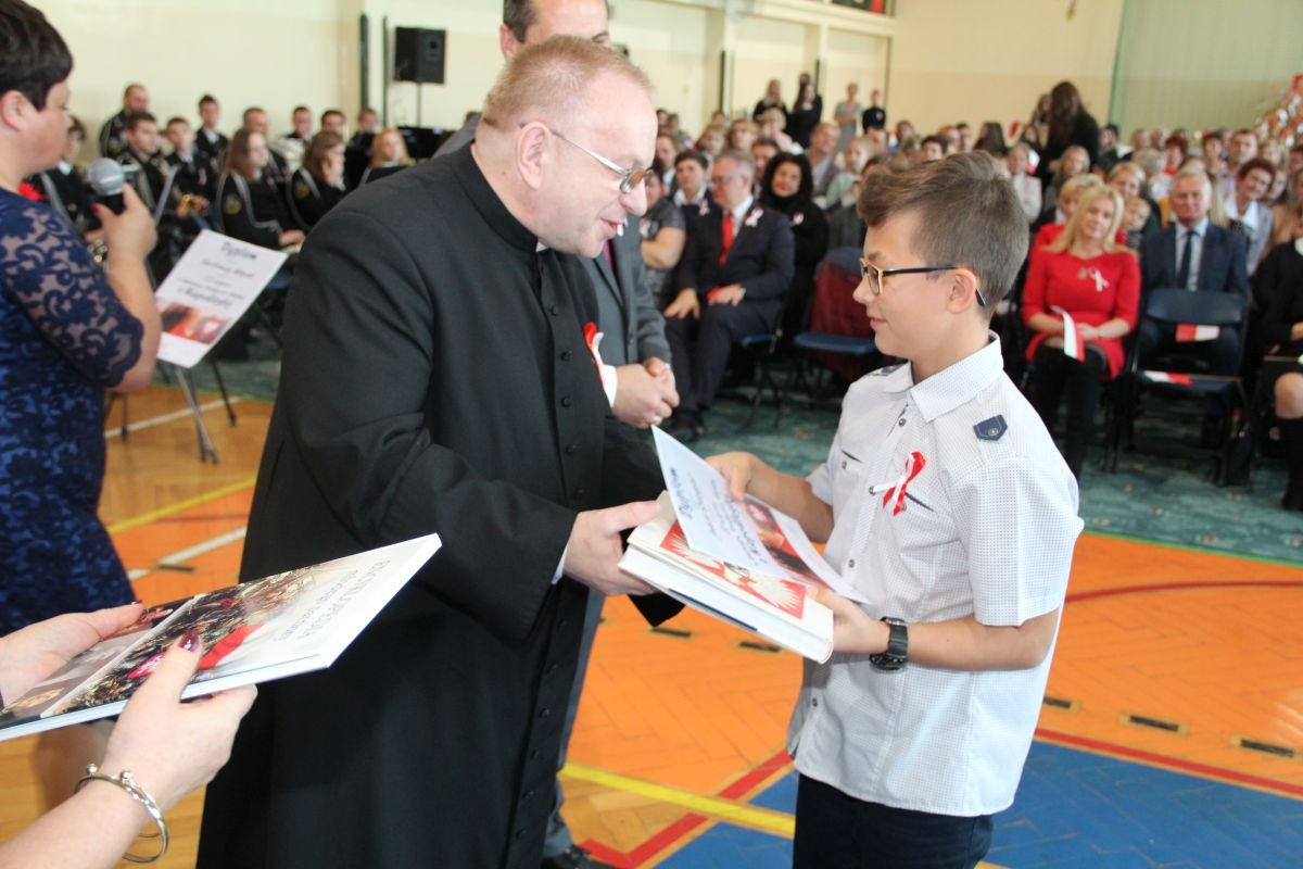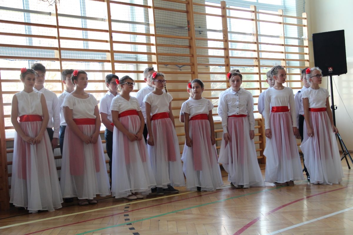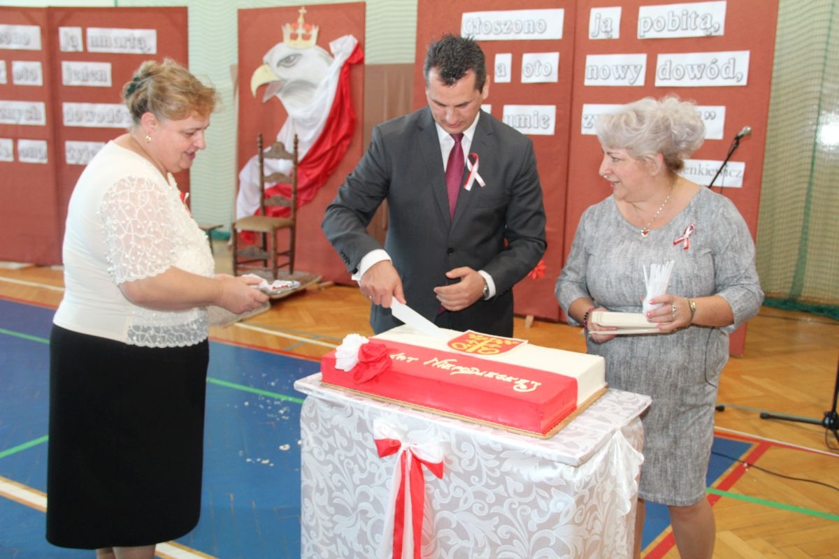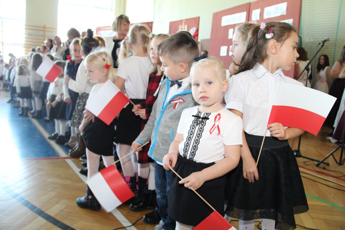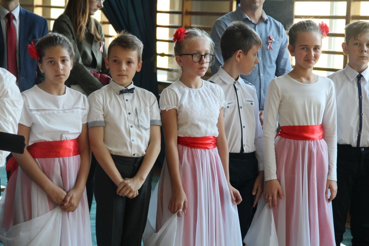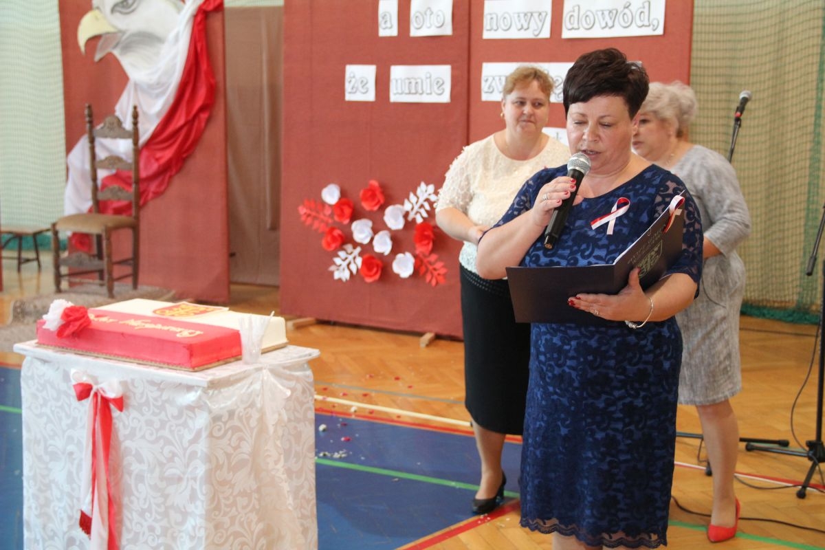 Na sali gimnastycznej Publicznej Szkoły Podstawowej w Rzezawie odbyła się część artystyczna gminnych uroczystości związanych z odzyskaniem przez naszą Ojczyznę niepodległości. W programie znalazł się m.in. występ przedszkolaków, którzy zaśpiewali piosenkę pt. „Jestem Polką i Polakiem” oraz występ muzyczno – teatralny pt. „100 powodów do radości, by świętować Niepodległość”, który przedstawiły dzieci i młodzież ze szkoły w Rzezawie. Mieszkańcy gminy mieli także możliwość wzięcia udziału w koncercie pieśni patriotycznych w wykonaniu orkiestry z Okulic. Po jego zakończeniu na wszystkich uczestników obchodów czekał biało-czerwony tort przygotowany specjalnie na 100-lecie odzyskania przez Polskę niepodległości.