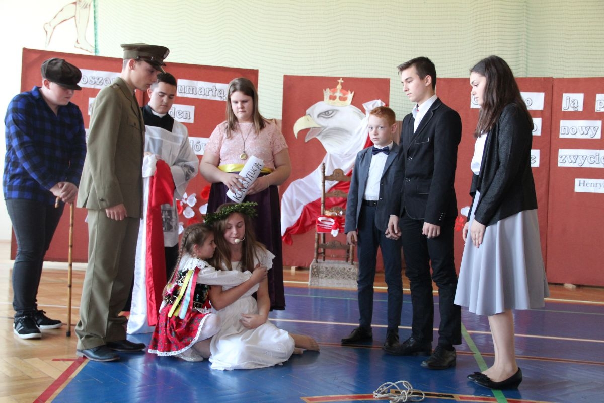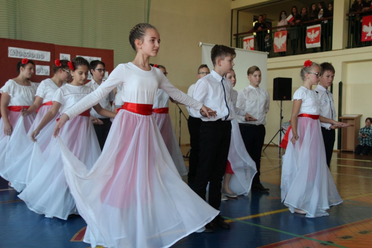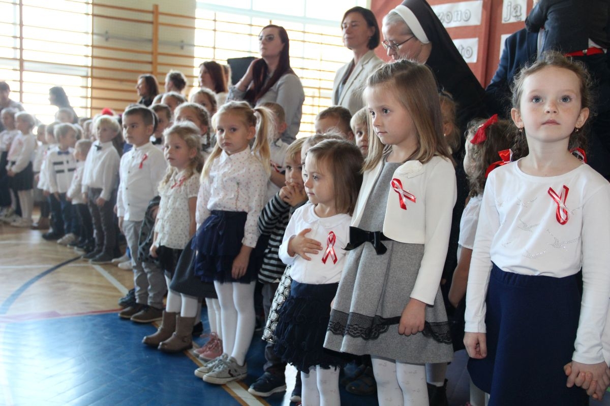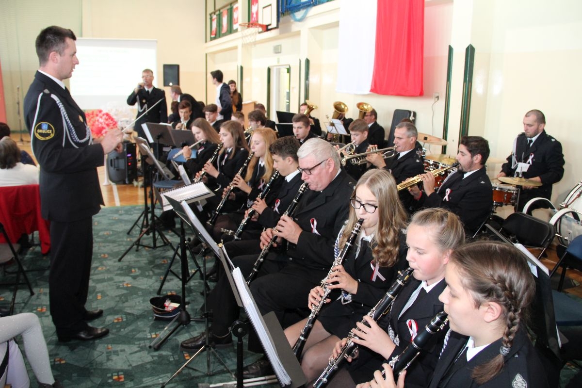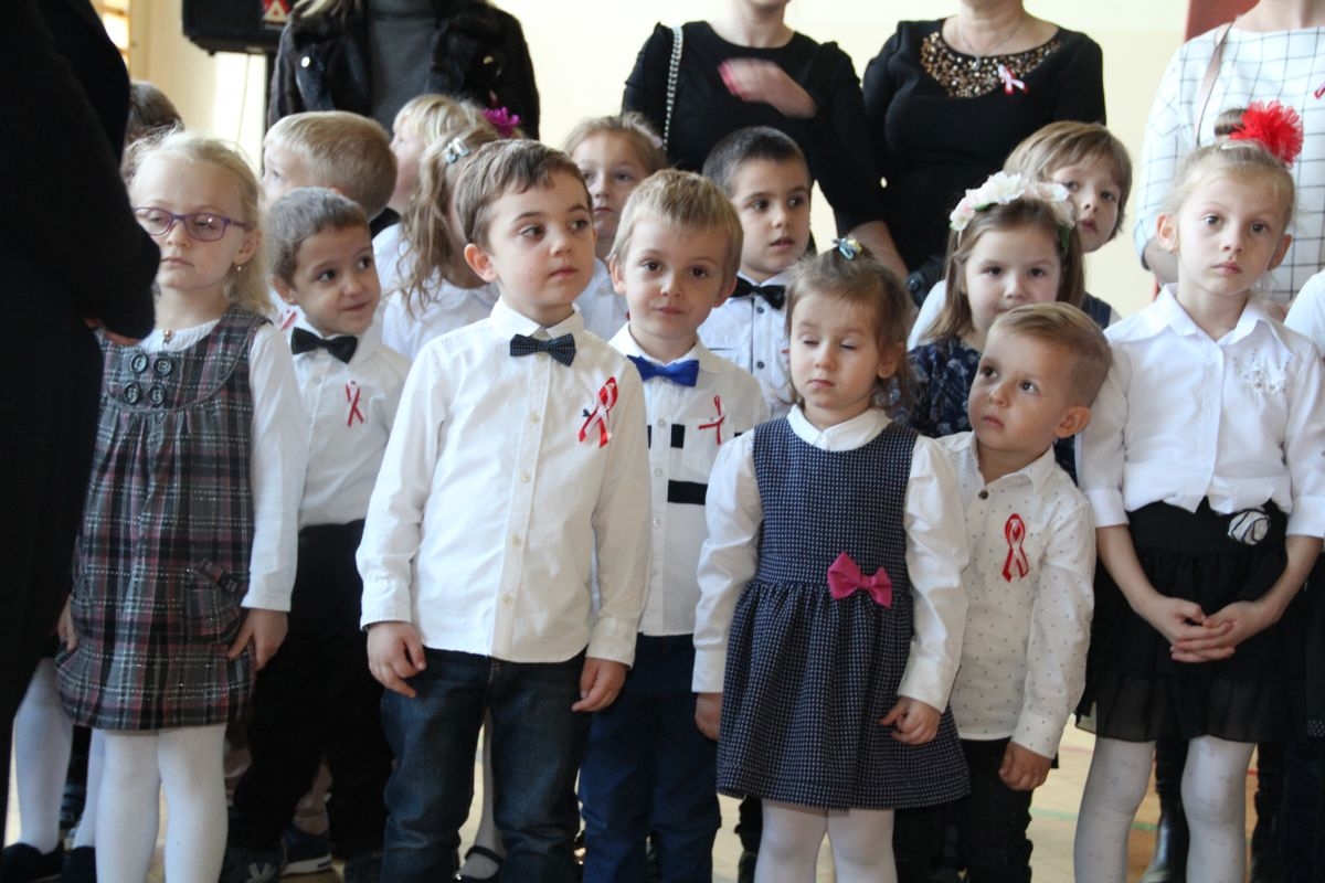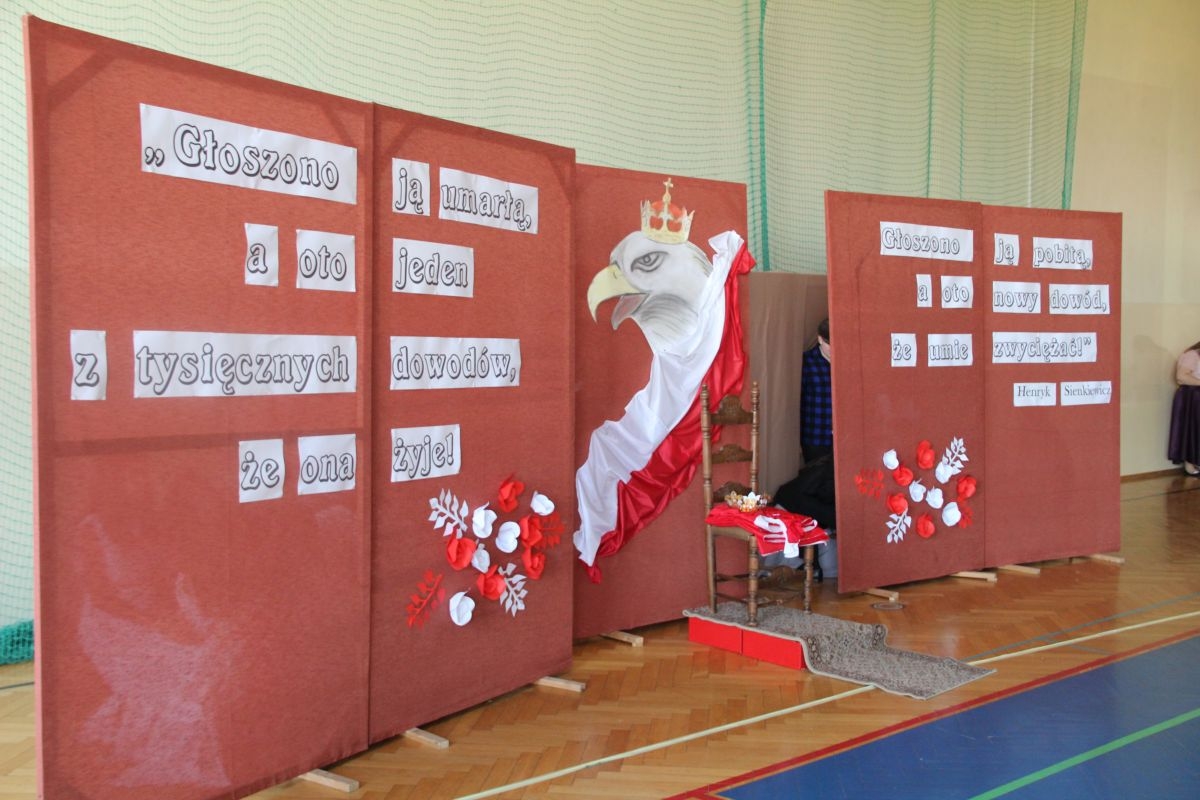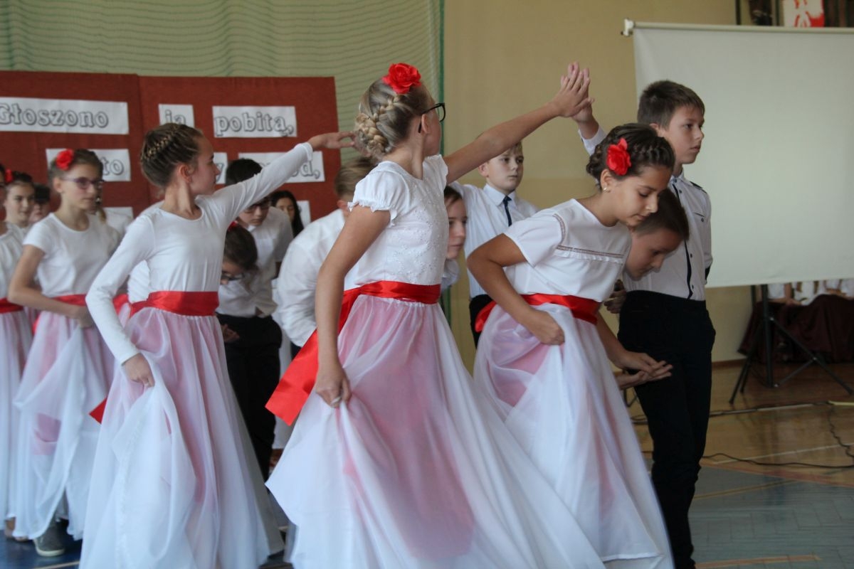 Na sali gimnastycznej Publicznej Szkoły Podstawowej w Rzezawie odbyła się część artystyczna gminnych uroczystości związanych z odzyskaniem przez naszą Ojczyznę niepodległości. W programie znalazł się m.in. występ przedszkolaków, którzy zaśpiewali piosenkę pt. „Jestem Polką i Polakiem” oraz występ muzyczno – teatralny pt. „100 powodów do radości, by świętować Niepodległość”, który przedstawiły dzieci i młodzież ze szkoły w Rzezawie. Mieszkańcy gminy mieli także możliwość wzięcia udziału w koncercie pieśni patriotycznych w wykonaniu orkiestry z Okulic. Po jego zakończeniu na wszystkich uczestników obchodów czekał biało-czerwony tort przygotowany specjalnie na 100-lecie odzyskania przez Polskę niepodległości.
