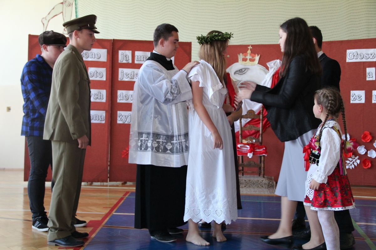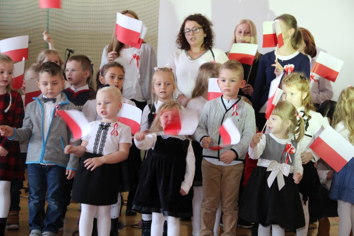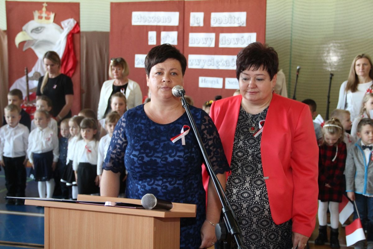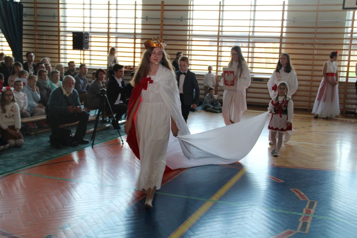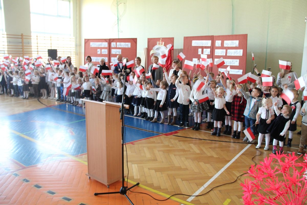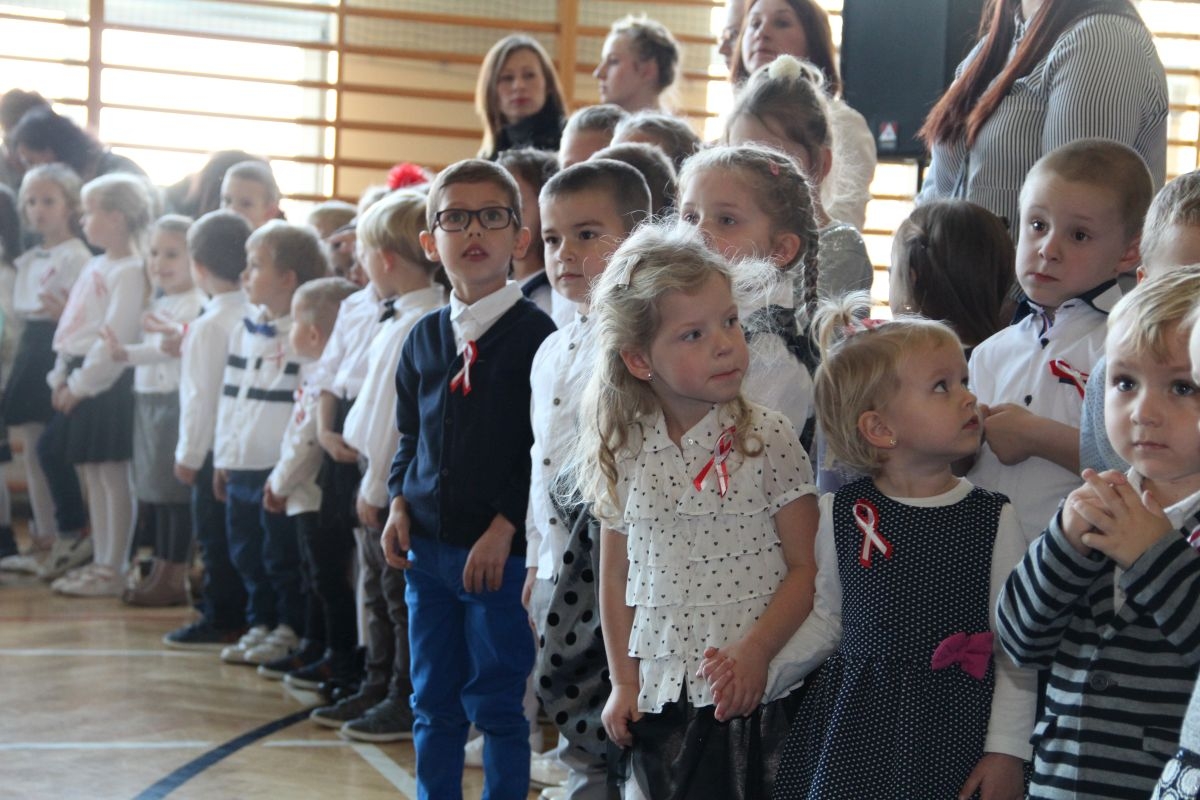 Na sali gimnastycznej Publicznej Szkoły Podstawowej w Rzezawie odbyła się część artystyczna gminnych uroczystości związanych z odzyskaniem przez naszą Ojczyznę niepodległości. W programie znalazł się m.in. występ przedszkolaków, którzy zaśpiewali piosenkę pt. „Jestem Polką i Polakiem” oraz występ muzyczno – teatralny pt. „100 powodów do radości, by świętować Niepodległość”, który przedstawiły dzieci i młodzież ze szkoły w Rzezawie. Mieszkańcy gminy mieli także możliwość wzięcia udziału w koncercie pieśni patriotycznych w wykonaniu orkiestry z Okulic. Po jego zakończeniu na wszystkich uczestników obchodów czekał biało-czerwony tort przygotowany specjalnie na 100-lecie odzyskania przez Polskę niepodległości.
