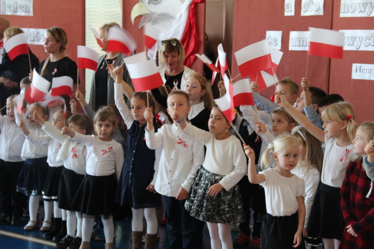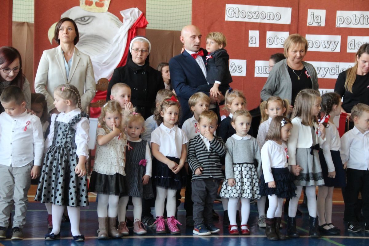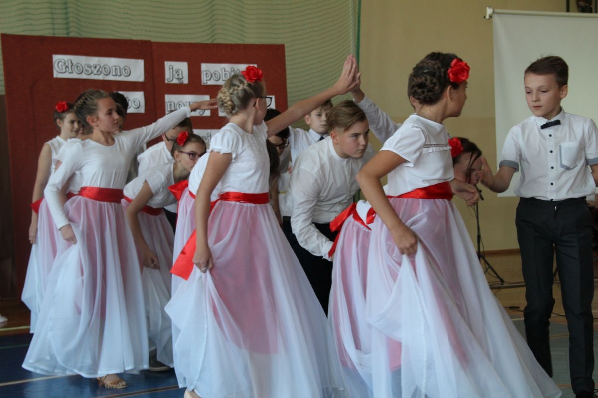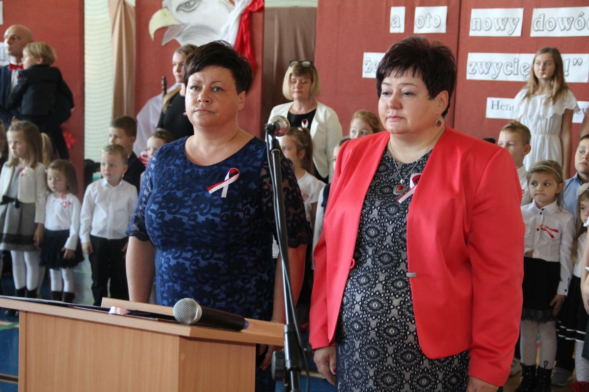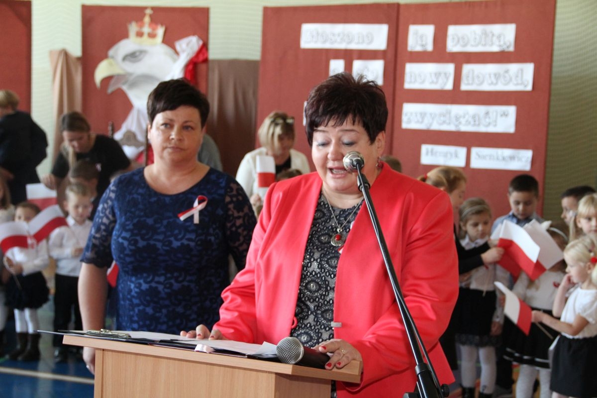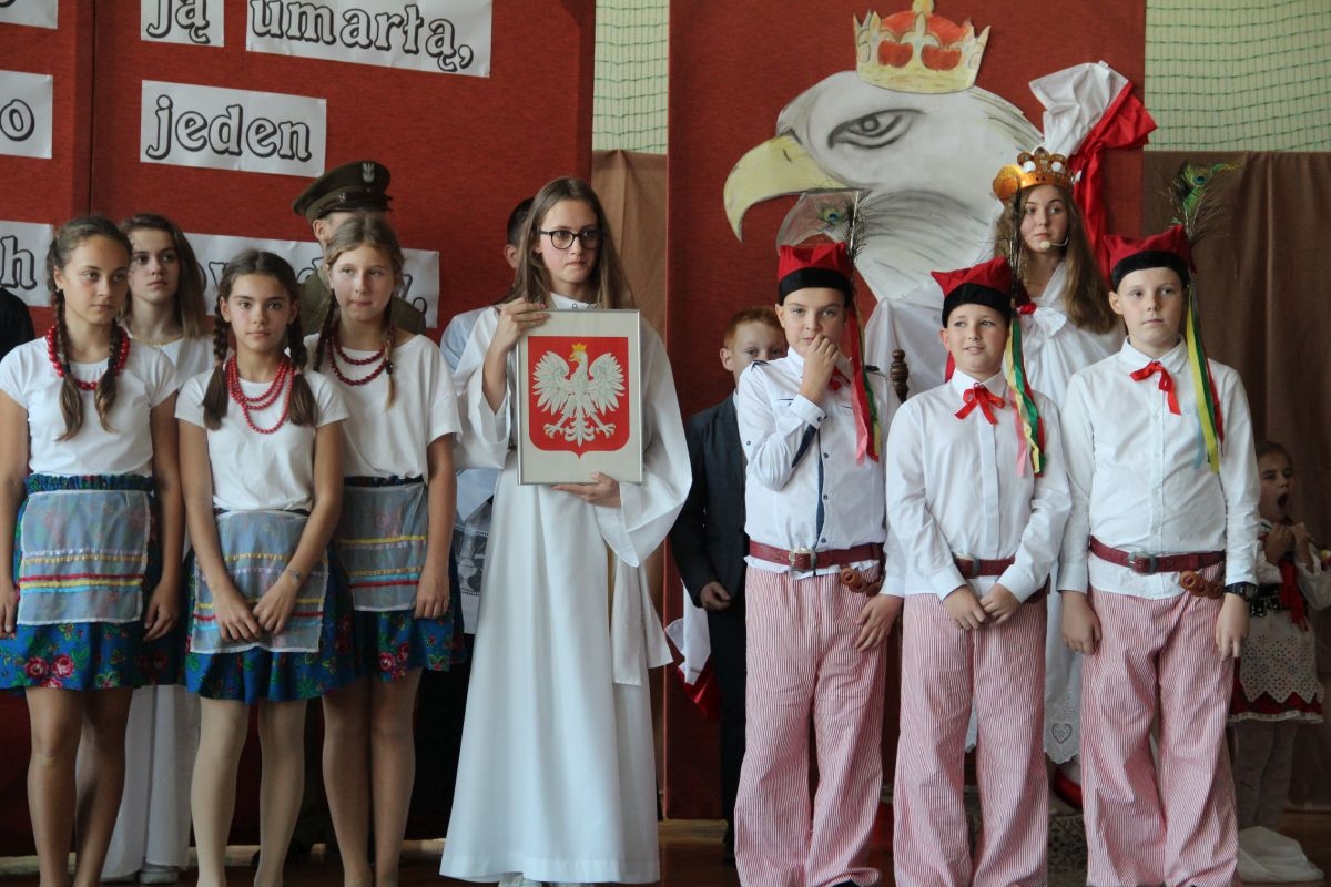 Na sali gimnastycznej Publicznej Szkoły Podstawowej w Rzezawie odbyła się część artystyczna gminnych uroczystości związanych z odzyskaniem przez naszą Ojczyznę niepodległości. W programie znalazł się m.in. występ przedszkolaków, którzy zaśpiewali piosenkę pt. „Jestem Polką i Polakiem” oraz występ muzyczno – teatralny pt. „100 powodów do radości, by świętować Niepodległość”, który przedstawiły dzieci i młodzież ze szkoły w Rzezawie. Mieszkańcy gminy mieli także możliwość wzięcia udziału w koncercie pieśni patriotycznych w wykonaniu orkiestry z Okulic. Po jego zakończeniu na wszystkich uczestników obchodów czekał biało-czerwony tort przygotowany specjalnie na 100-lecie odzyskania przez Polskę niepodległości.