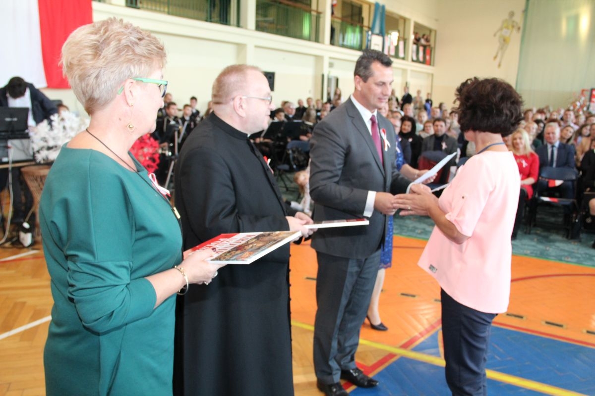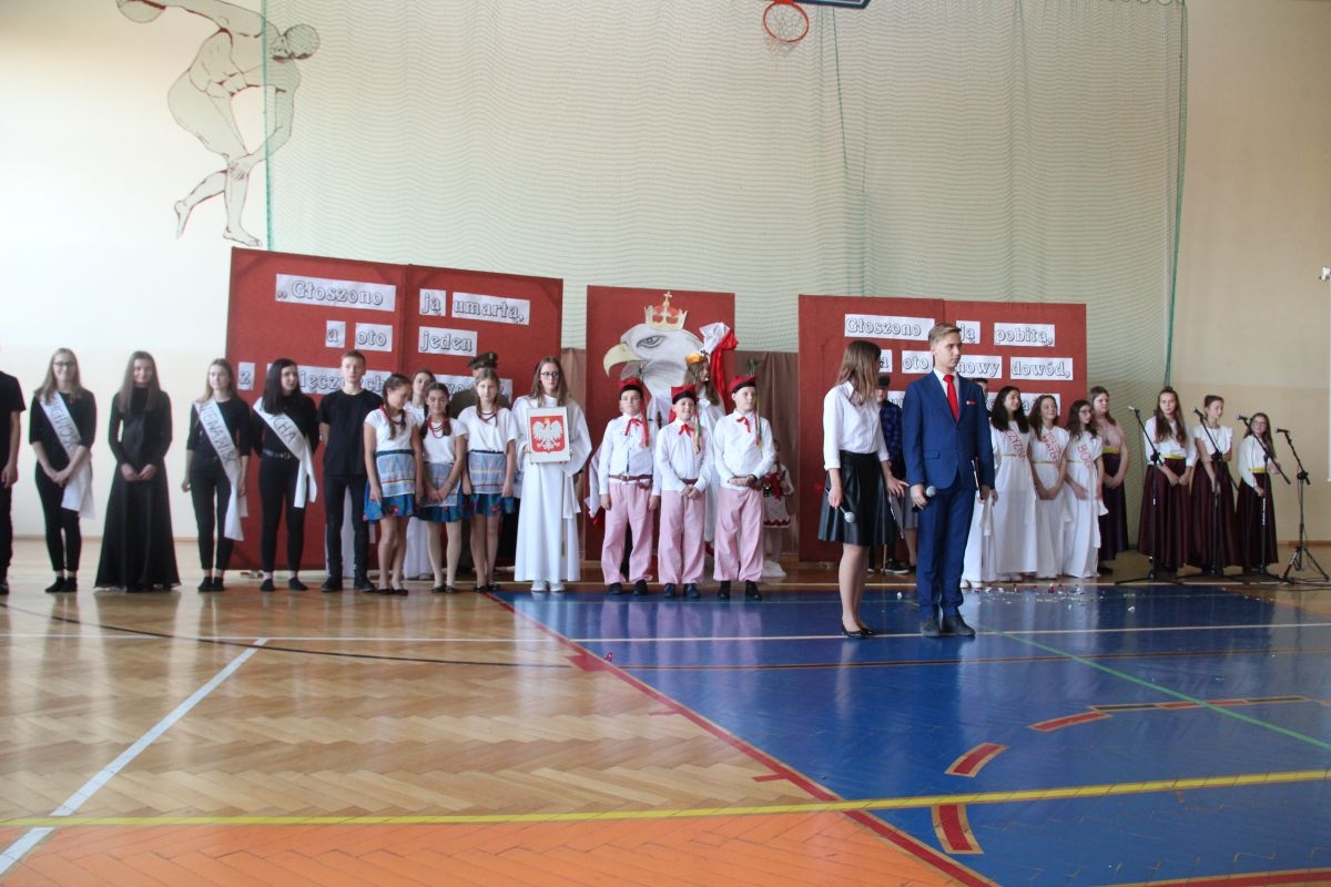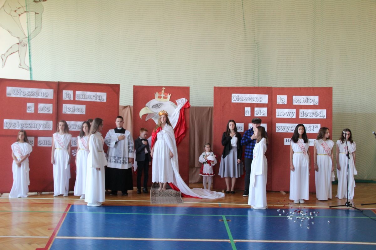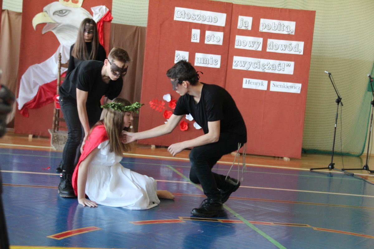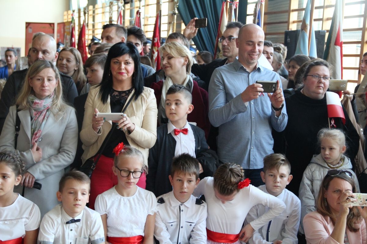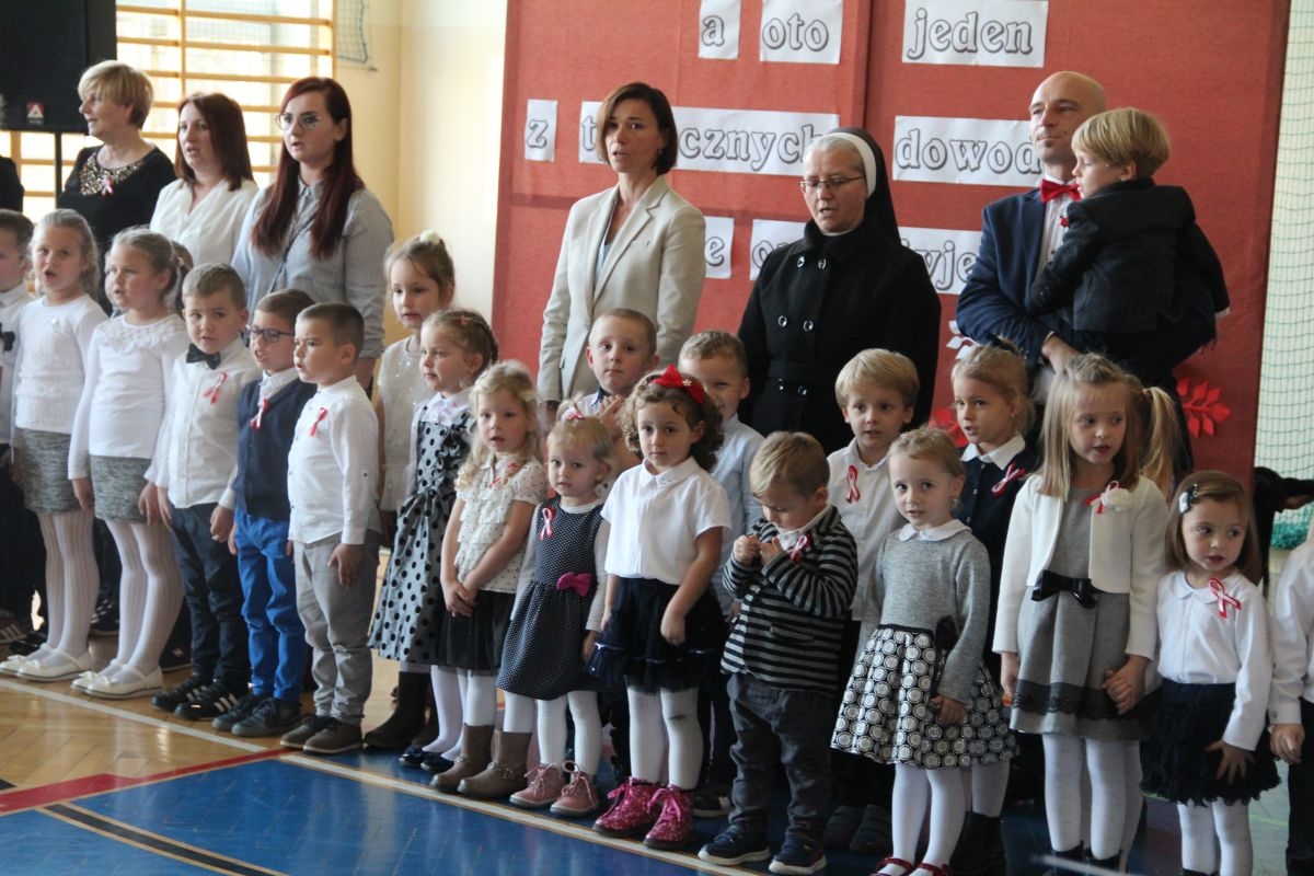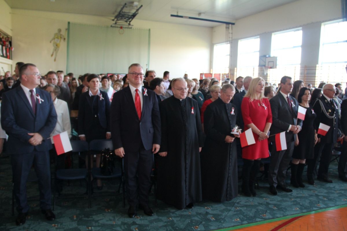 Na sali gimnastycznej Publicznej Szkoły Podstawowej w Rzezawie odbyła się część artystyczna gminnych uroczystości związanych z odzyskaniem przez naszą Ojczyznę niepodległości. W programie znalazł się m.in. występ przedszkolaków, którzy zaśpiewali piosenkę pt. „Jestem Polką i Polakiem” oraz występ muzyczno – teatralny pt. „100 powodów do radości, by świętować Niepodległość”, który przedstawiły dzieci i młodzież ze szkoły w Rzezawie. Mieszkańcy gminy mieli także możliwość wzięcia udziału w koncercie pieśni patriotycznych w wykonaniu orkiestry z Okulic. Po jego zakończeniu na wszystkich uczestników obchodów czekał biało-czerwony tort przygotowany specjalnie na 100-lecie odzyskania przez Polskę niepodległości.