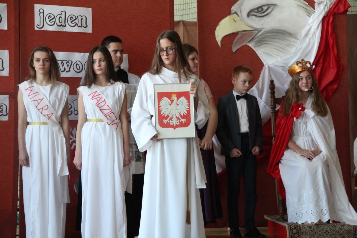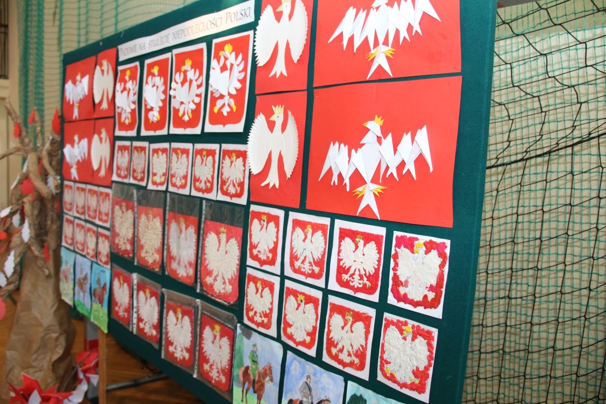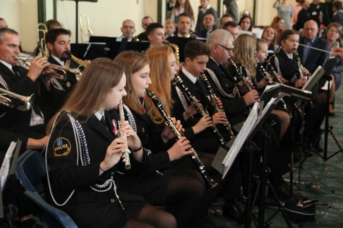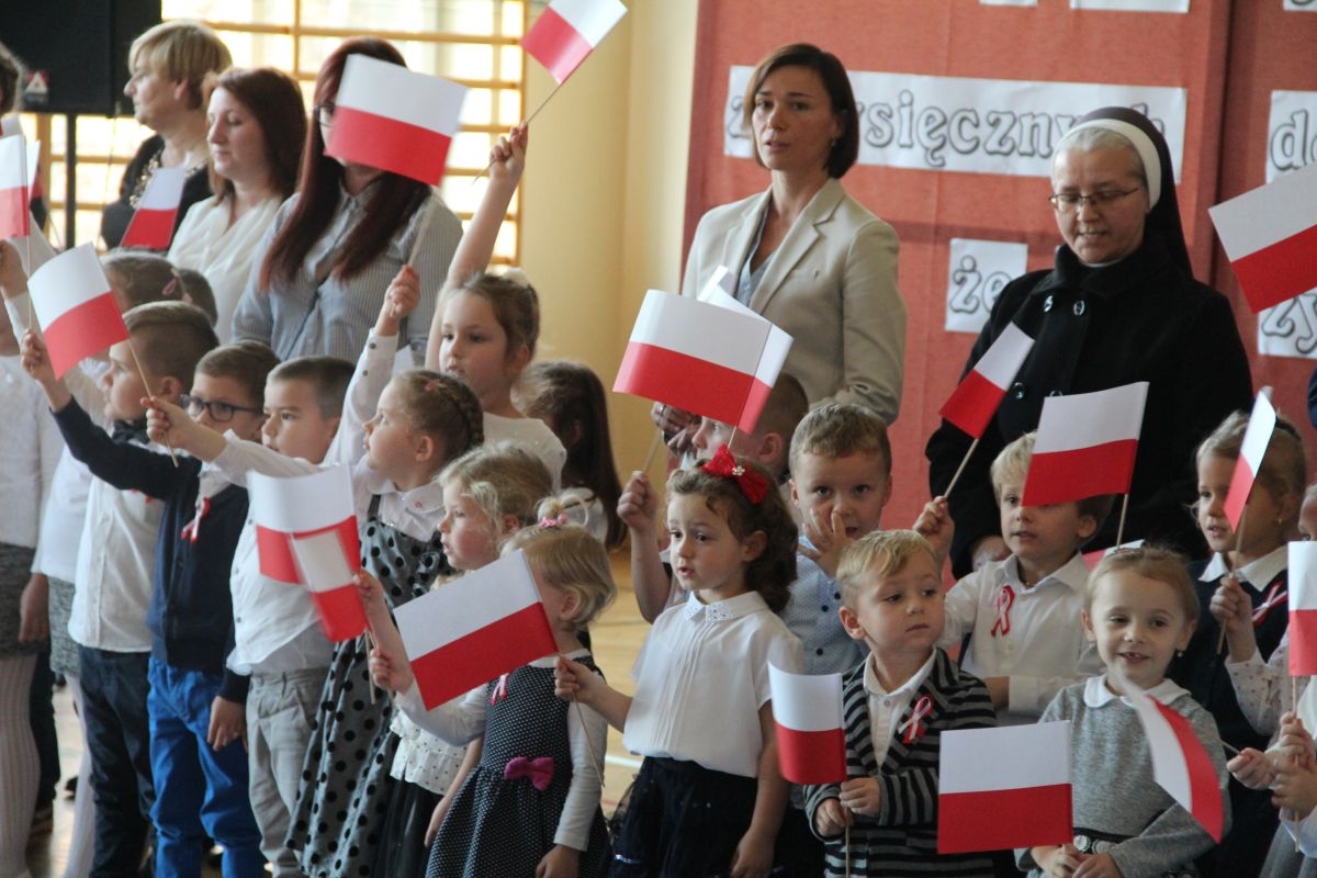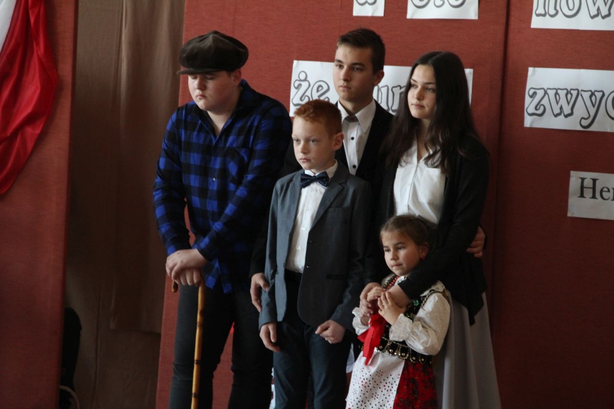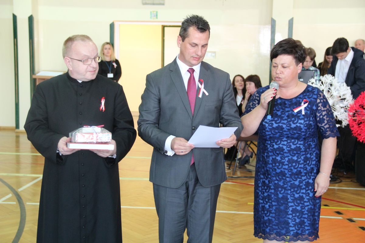 Na sali gimnastycznej Publicznej Szkoły Podstawowej w Rzezawie odbyła się część artystyczna gminnych uroczystości związanych z odzyskaniem przez naszą Ojczyznę niepodległości. W programie znalazł się m.in. występ przedszkolaków, którzy zaśpiewali piosenkę pt. „Jestem Polką i Polakiem” oraz występ muzyczno – teatralny pt. „100 powodów do radości, by świętować Niepodległość”, który przedstawiły dzieci i młodzież ze szkoły w Rzezawie. Mieszkańcy gminy mieli także możliwość wzięcia udziału w koncercie pieśni patriotycznych w wykonaniu orkiestry z Okulic. Po jego zakończeniu na wszystkich uczestników obchodów czekał biało-czerwony tort przygotowany specjalnie na 100-lecie odzyskania przez Polskę niepodległości.