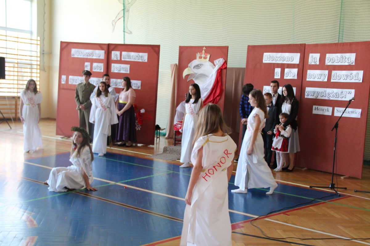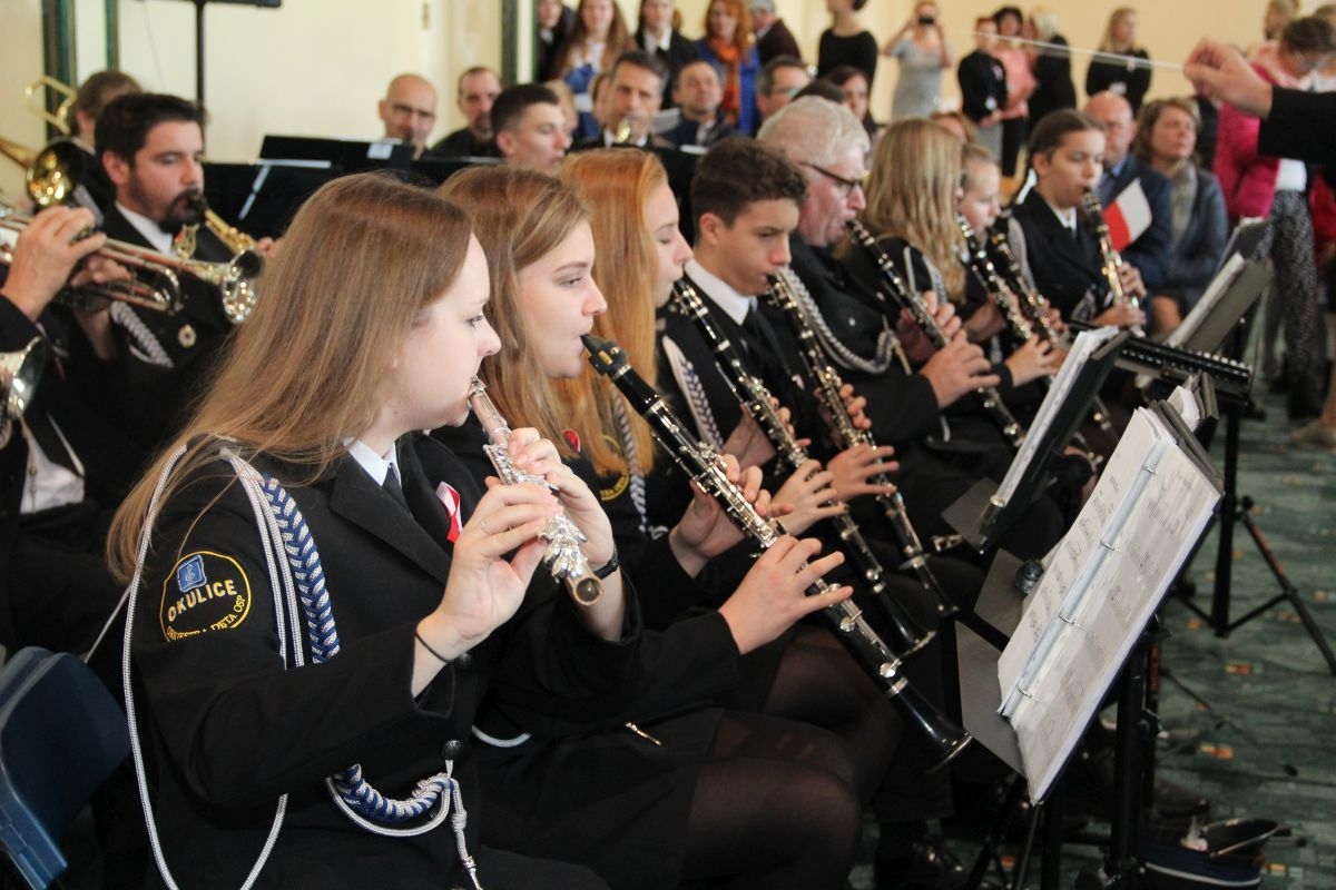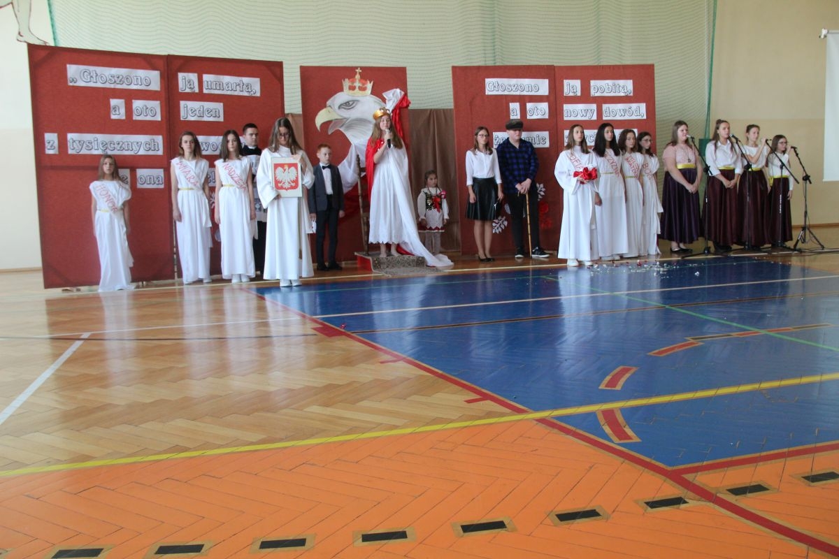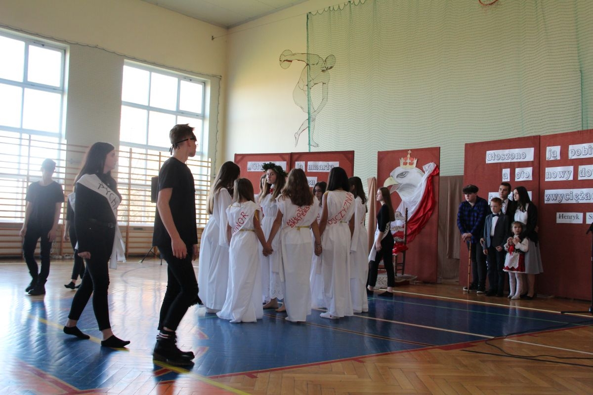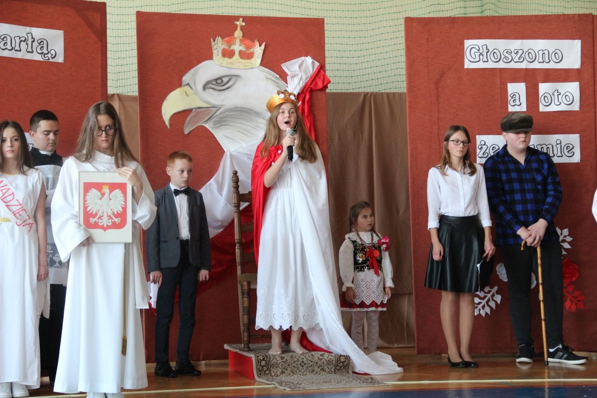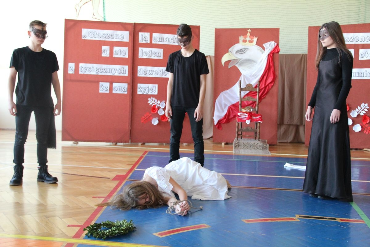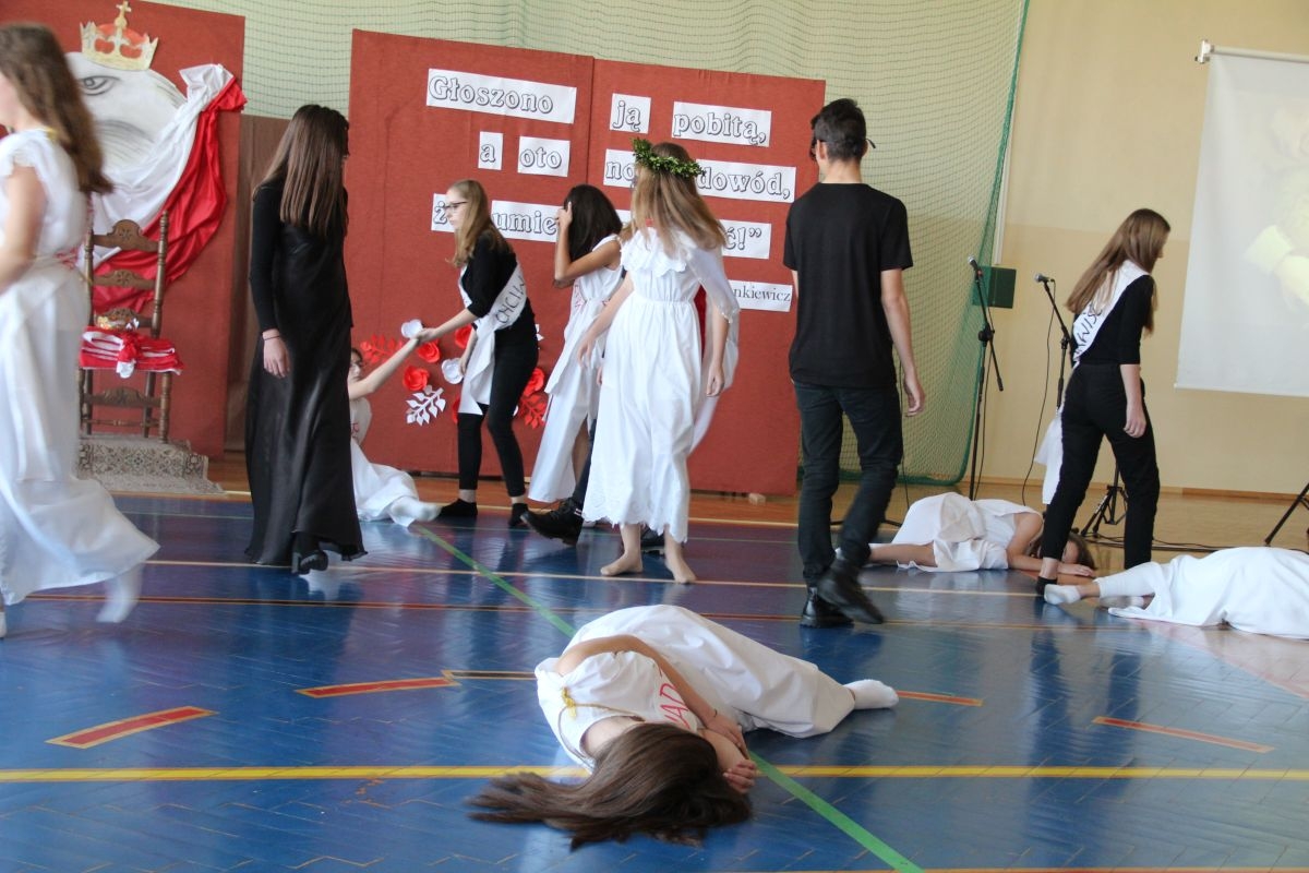 Na sali gimnastycznej Publicznej Szkoły Podstawowej w Rzezawie odbyła się część artystyczna gminnych uroczystości związanych z odzyskaniem przez naszą Ojczyznę niepodległości. W programie znalazł się m.in. występ przedszkolaków, którzy zaśpiewali piosenkę pt. „Jestem Polką i Polakiem” oraz występ muzyczno – teatralny pt. „100 powodów do radości, by świętować Niepodległość”, który przedstawiły dzieci i młodzież ze szkoły w Rzezawie. Mieszkańcy gminy mieli także możliwość wzięcia udziału w koncercie pieśni patriotycznych w wykonaniu orkiestry z Okulic. Po jego zakończeniu na wszystkich uczestników obchodów czekał biało-czerwony tort przygotowany specjalnie na 100-lecie odzyskania przez Polskę niepodległości.