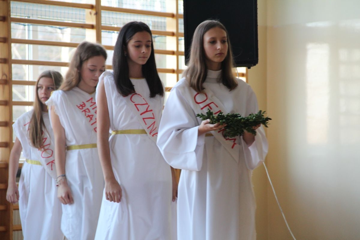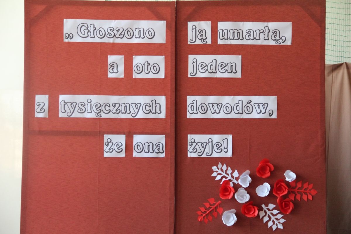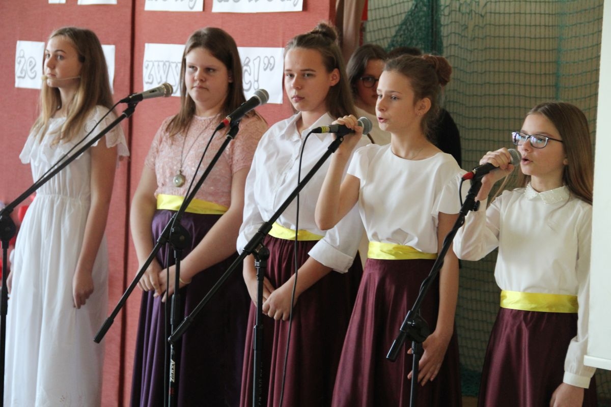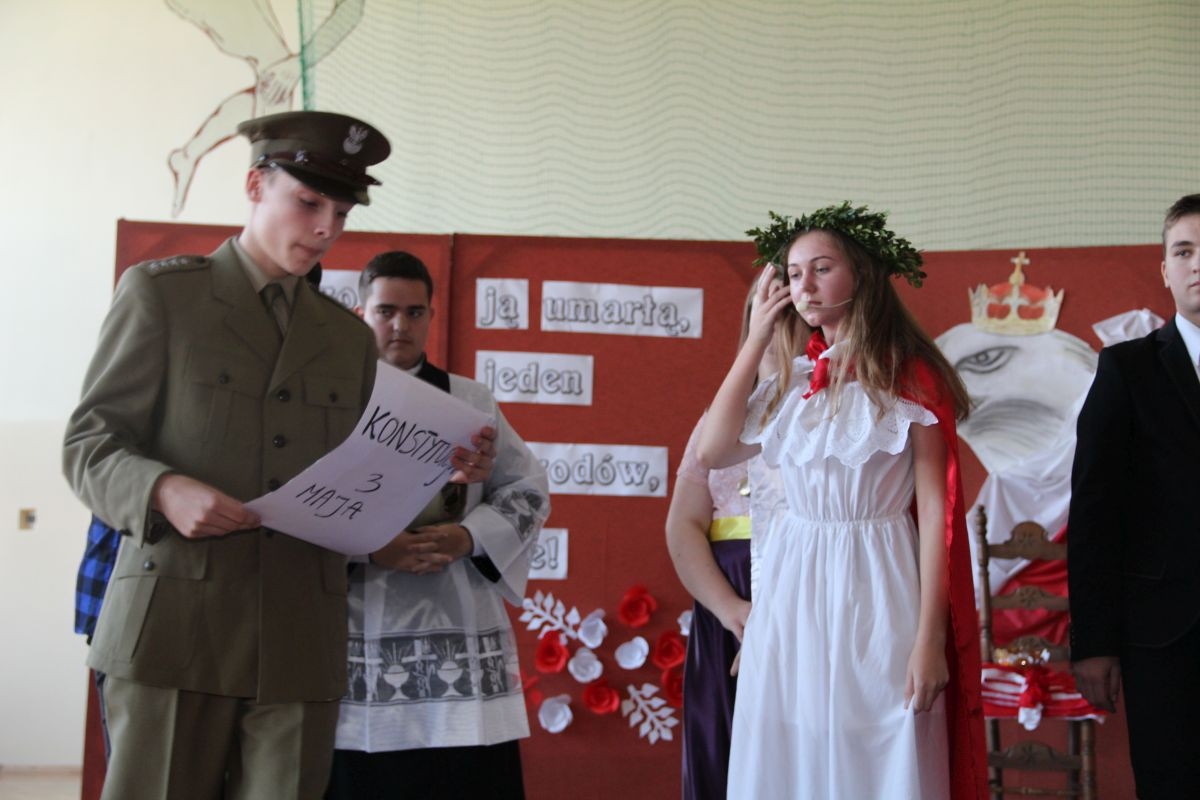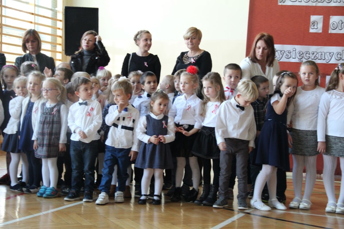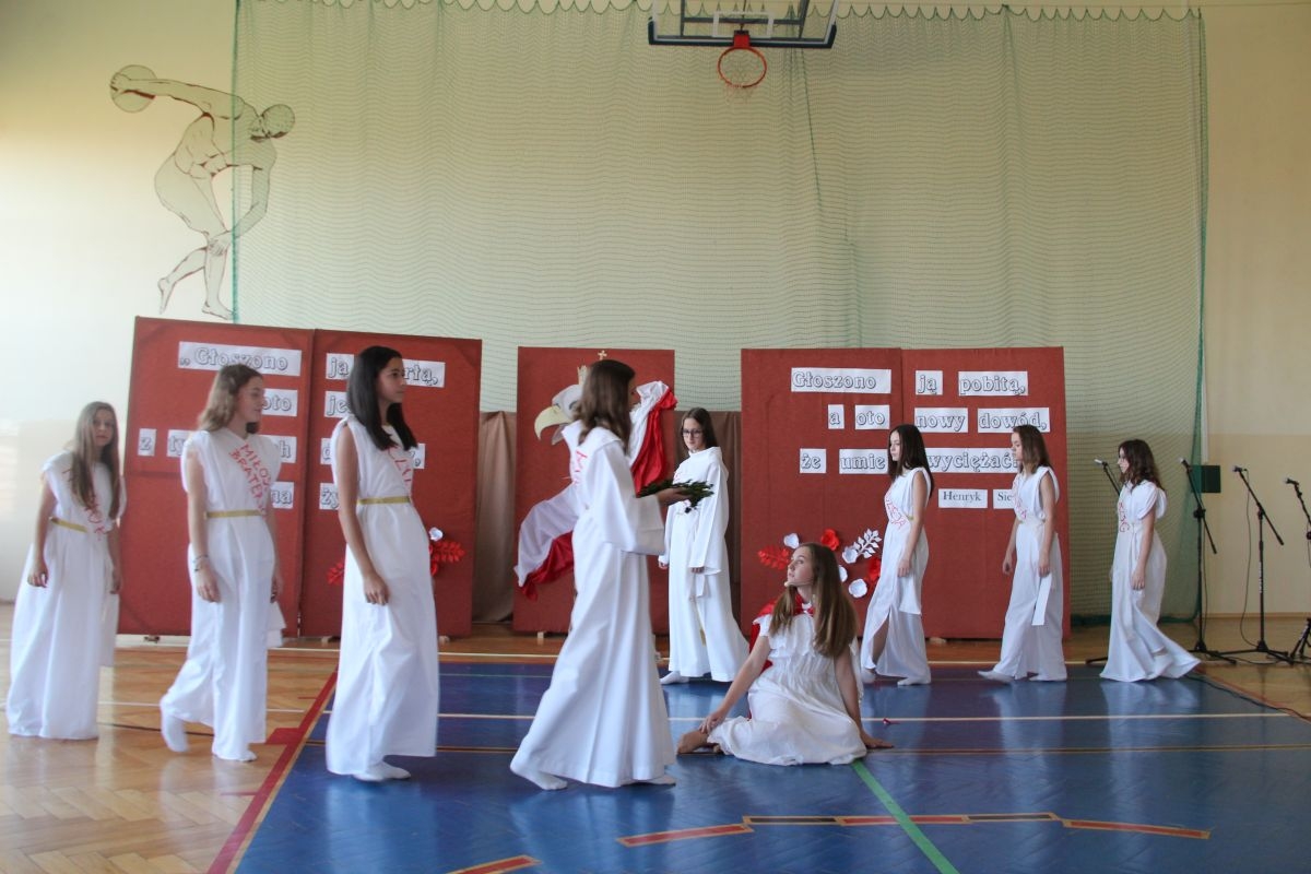 Na sali gimnastycznej Publicznej Szkoły Podstawowej w Rzezawie odbyła się część artystyczna gminnych uroczystości związanych z odzyskaniem przez naszą Ojczyznę niepodległości. W programie znalazł się m.in. występ przedszkolaków, którzy zaśpiewali piosenkę pt. „Jestem Polką i Polakiem” oraz występ muzyczno – teatralny pt. „100 powodów do radości, by świętować Niepodległość”, który przedstawiły dzieci i młodzież ze szkoły w Rzezawie. Mieszkańcy gminy mieli także możliwość wzięcia udziału w koncercie pieśni patriotycznych w wykonaniu orkiestry z Okulic. Po jego zakończeniu na wszystkich uczestników obchodów czekał biało-czerwony tort przygotowany specjalnie na 100-lecie odzyskania przez Polskę niepodległości.