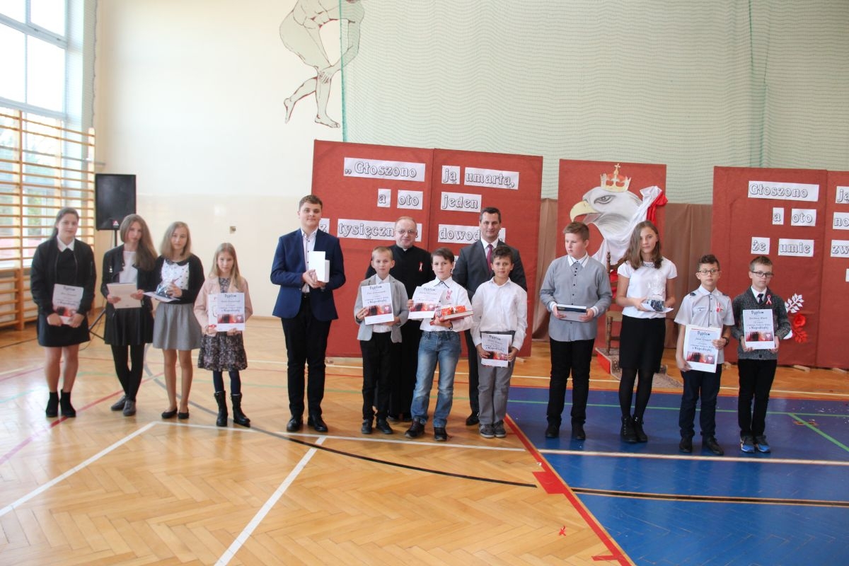 Niedzielna uroczystość była również okazją do wręczenia nagród laureatom „Konkursu Wiedzy o Niepodległej”, który miał na celu propagowanie wartości patriotycznych oraz motywowanie młodych ludzi do pogłębiania wiedzy o Polsce.
