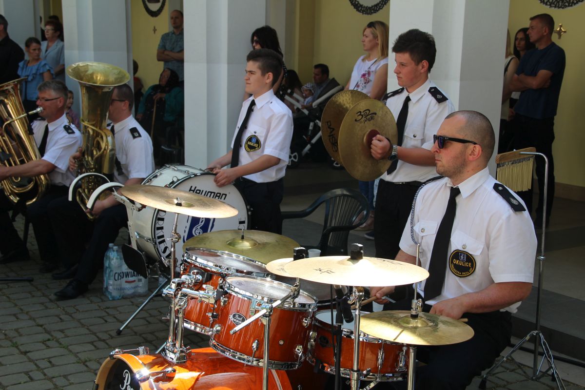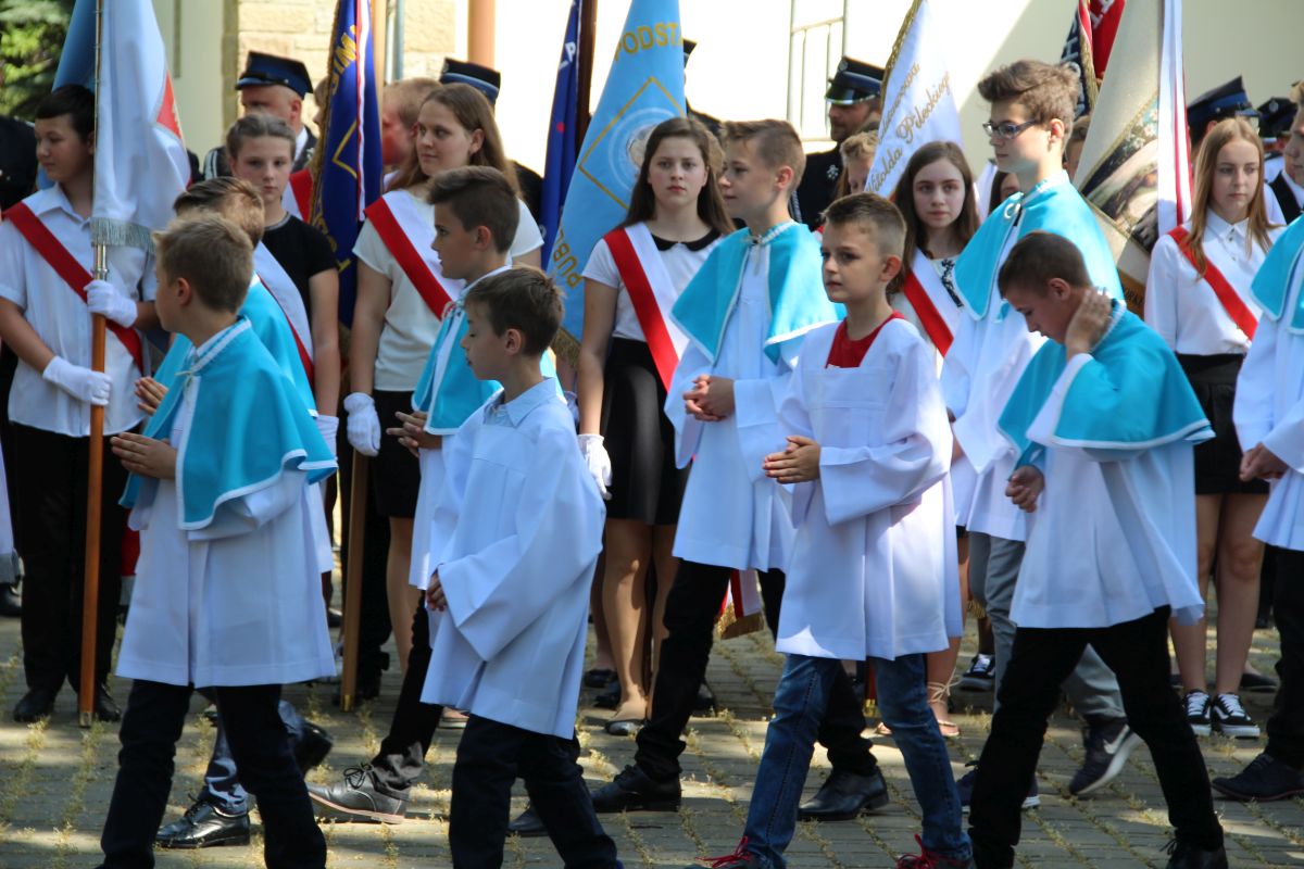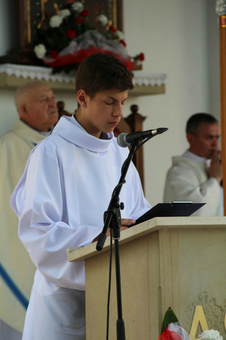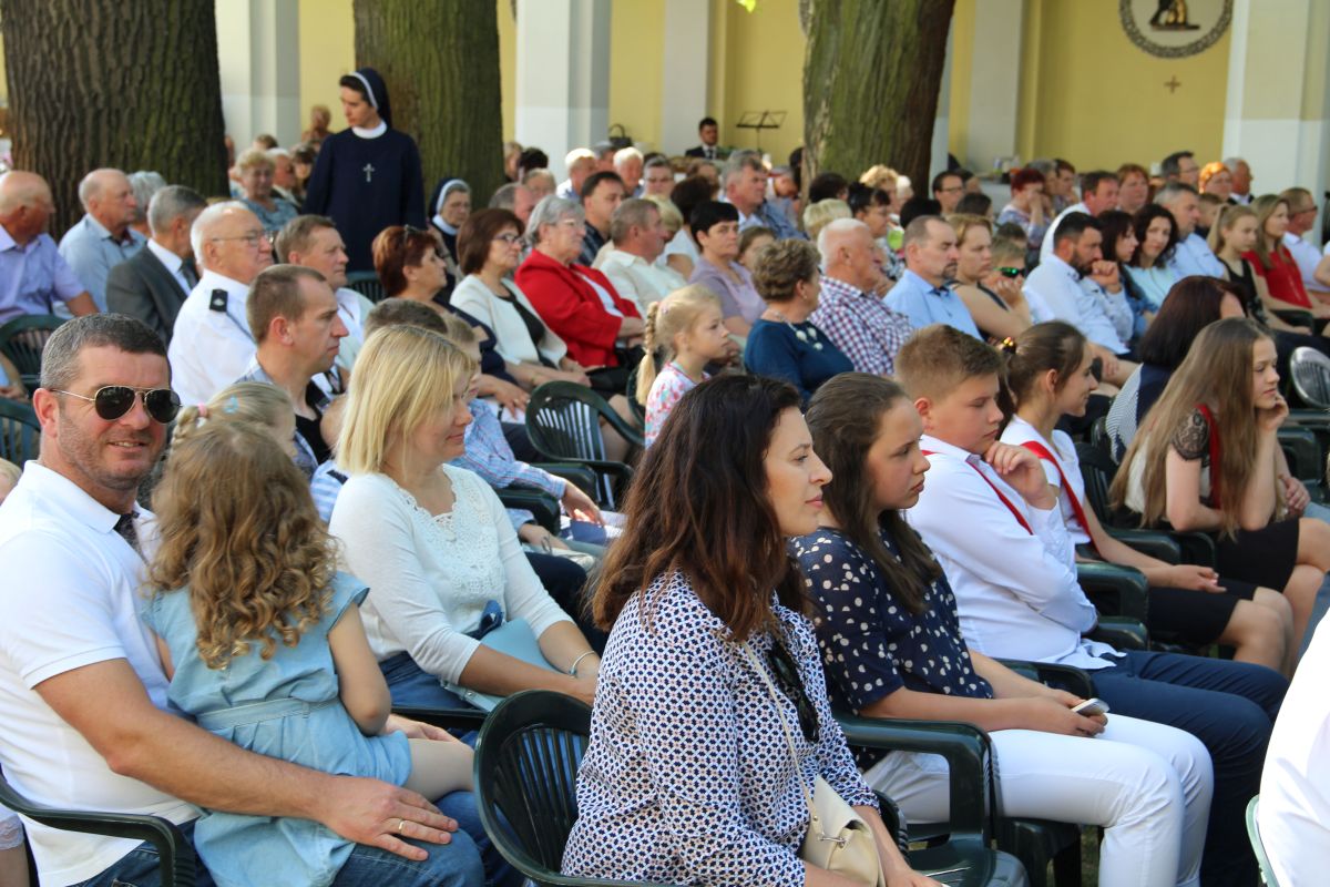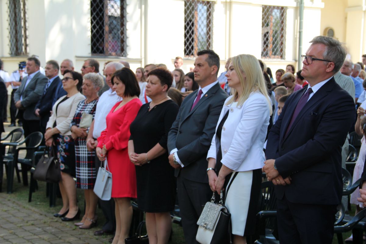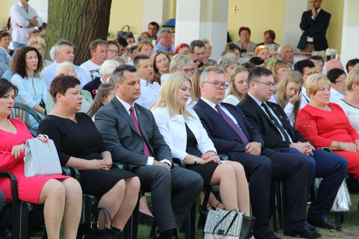O godz. 11 rozpoczęła się natomiast uroczysta msza święta na placu sanktuaryjnym. Udział w niej wziął, oprócz wójta Gminy Rzezawa Mariusza Paleja i jego małżonki, m.in. sekretarz Gminy Rzezawa Piotr Koczanowski, przewodnicząca Rady Gminy Rzezawa Beata Puzia, dyrektor Gminnego Centrum Kultury Czytelnictwa i Sportu w Rzezawie Renata Prokop, a także radni, sołtysi, poczty sztandarowe jednostek oświatowych, straży pożarnej oraz mieszkańcy Gminy Rzezawa, którzy bardzo licznie przybyli do Okulic.