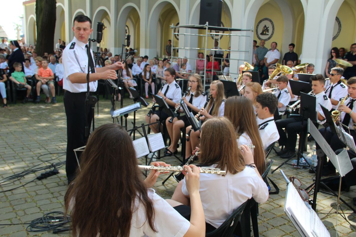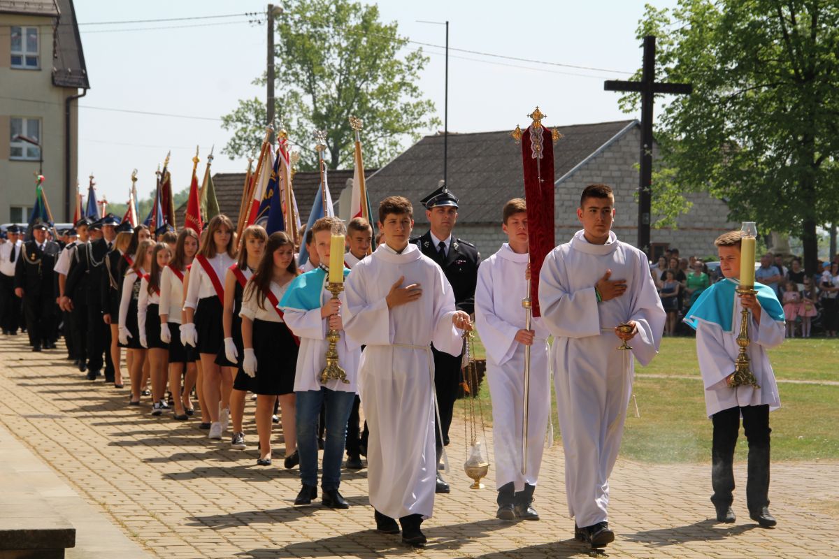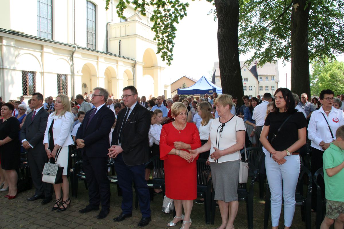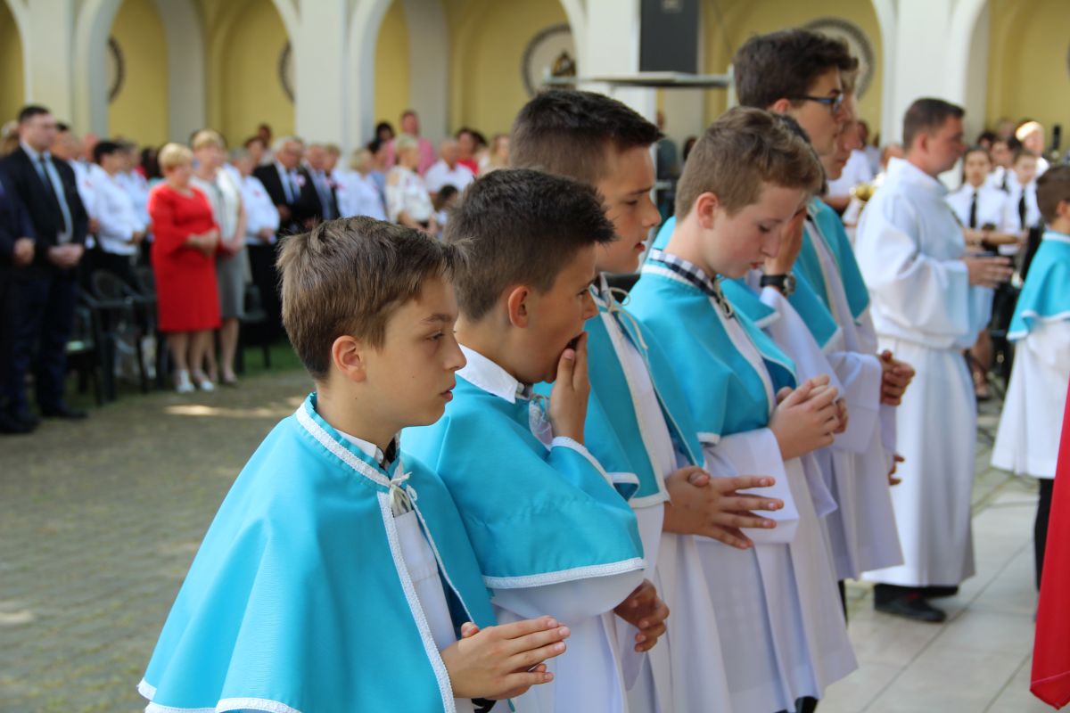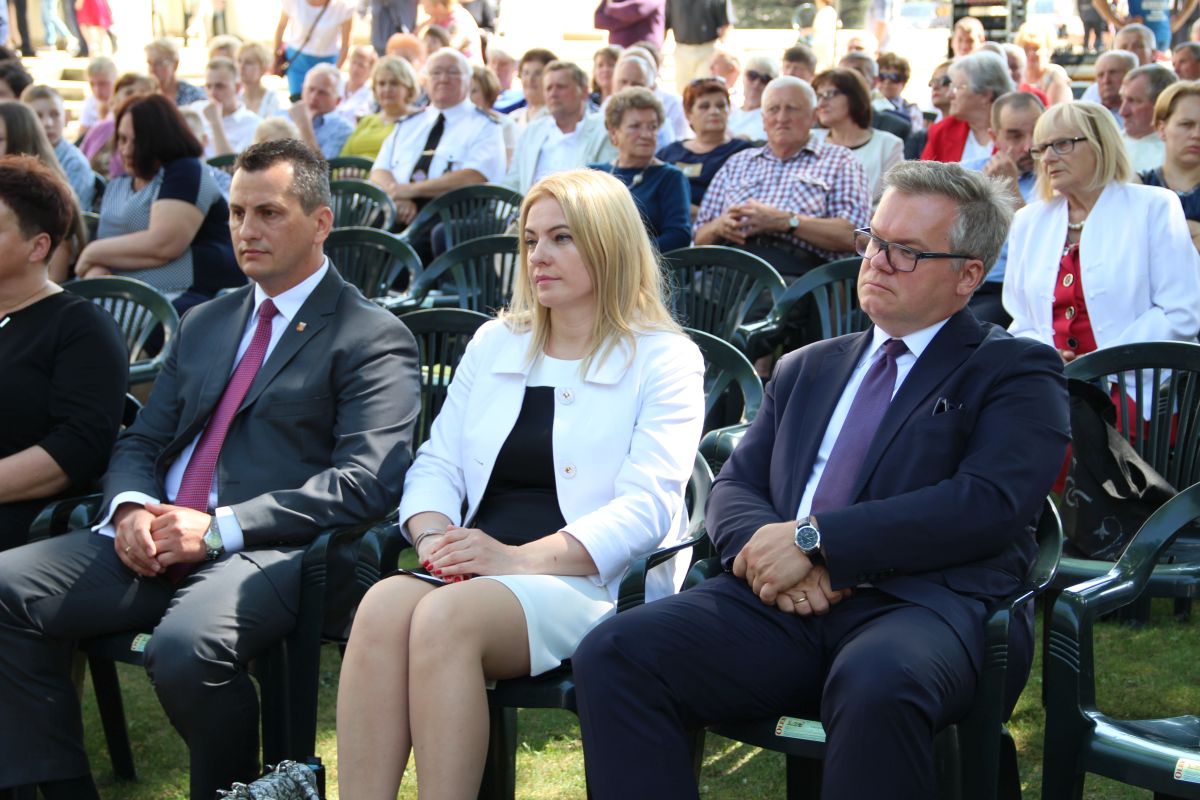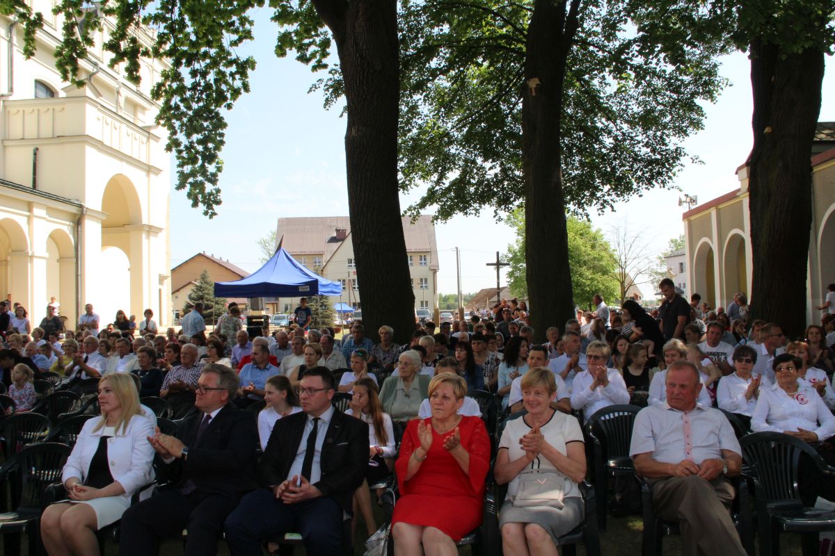 O godz. 11 rozpoczęła się natomiast uroczysta msza święta na placu sanktuaryjnym. Udział w niej wziął, oprócz wójta Gminy Rzezawa Mariusza Paleja i jego małżonki, m.in. sekretarz Gminy Rzezawa Piotr Koczanowski, przewodnicząca Rady Gminy Rzezawa Beata Puzia, dyrektor Gminnego Centrum Kultury Czytelnictwa i Sportu w Rzezawie Renata Prokop, a także radni, sołtysi, poczty sztandarowe jednostek oświatowych, straży pożarnej oraz mieszkańcy Gminy Rzezawa, którzy bardzo licznie przybyli do Okulic.