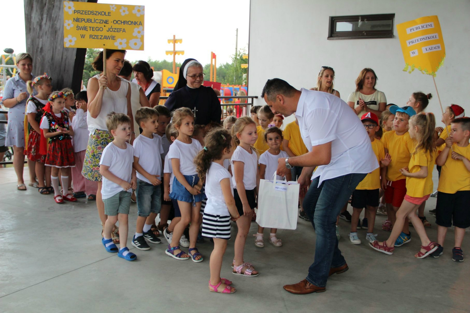 Imprezę rozpoczął niezwykle ciekawy koncert piosenki pn. „Przedszkolak potrafi śpiewać”. Podczas występu dzieci wraz ze swoimi opiekunami zaprezentowały swoje zdolności wokalne, ale także taneczne. Występ na scenie i możliwość zaprezentowania się szerokiej publiczności sprawił im wiele radości. W koncercie uczestniczyły dzieci ze wszystkich przedszkoli znajdujących się na terenie gminy Rzezawa. Przedszkolaki wzięły udział także w III Gminnej Olimpiadzie Sportowej przeznaczonej specjalnie dla nich. Składała się ona z kilku niezwykle ciekawych i oryginalnych konkurencji, które dostarczyły im dużo pozytywnych emocji. Po zakończeniu zawodów Wójt Gminy Rzezawa Mariusz Palej, Dyrektor Gminnego Centrum Kultury, Czytelnictwa i Sportu w Rzezawie Renata Prokop oraz Przewodnicząca Rady Gminy Rzezawa Barbara Kwiecińska wręczyli wszystkim przedszkolakom pamiątkowe medale oraz upominki zasponsorowane przez firmę ZIAJA. Dzieci otrzymały także słodkie upominki.