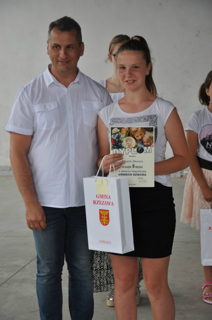 Wójt Gminy Rzezawa wręczył prezenty także zwycięzcom gminnego konkursu fotograficznego „Uśmiech dziecka”. Wśród nich były m.in. tablety, profesjonalne słuchawki do słuchania muzyki oraz przenośne głośniki bluetooth. Podczas V Gminnego Dnia Dziecka w Rzezawie odbył się również koncert zespołu „OCOCHODZI”. Repertuar obejmował utwory ludowe, a także autorskie piosnki napisane przez Piotra Poloka, który prowadzi zespół. Na rzezawskiej scenie zaprezentował się także zespół SzuGirls wykonujący muzykę disco-polo, który wkrótce zamierza podbić polską scenę muzyczną.