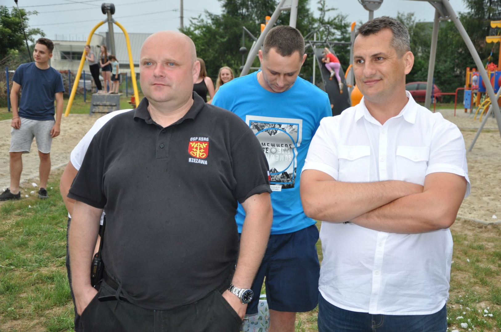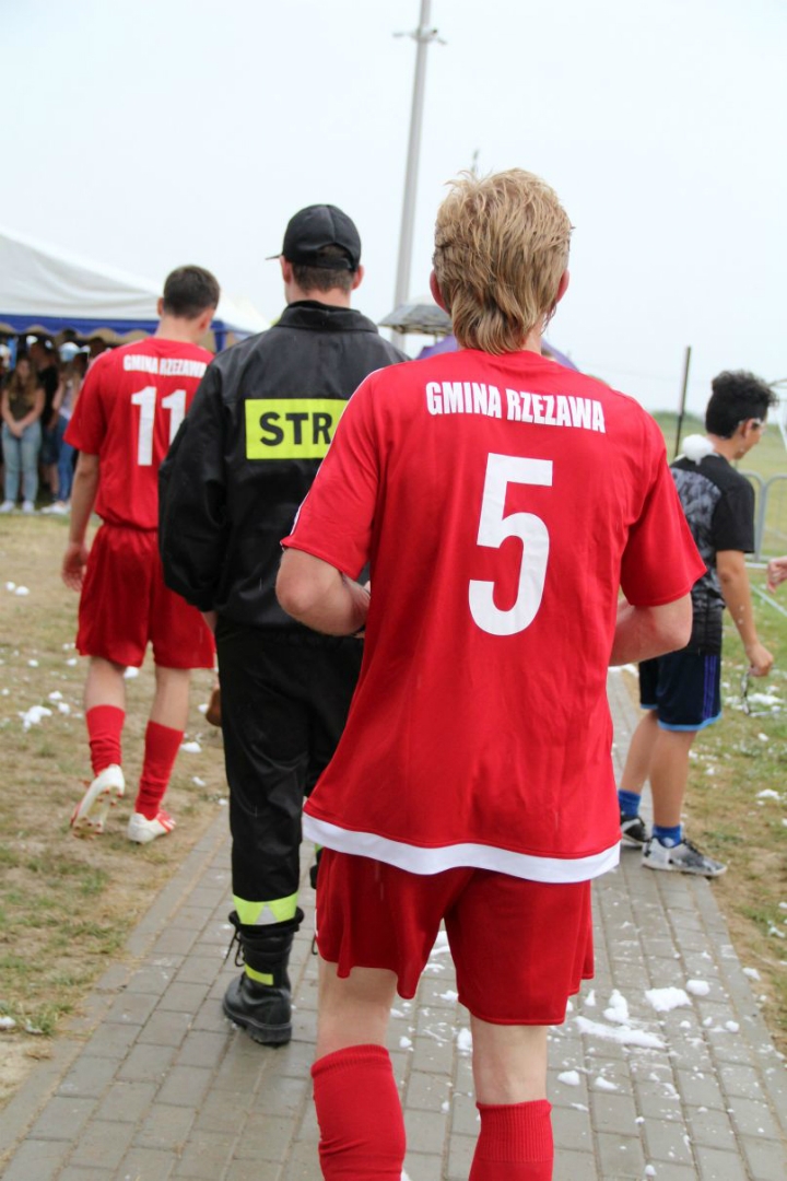 Ważnym punktem obchodów Dnia Dziecka w Rzezawie był także mecz charytatywny, w którym zmierzyła się drużyna Samorządowców, na której czele stał Wójt Mariusz Palej z zespołem Księży. Po niezwykle zaciętym meczu padł wynik 2:4.
