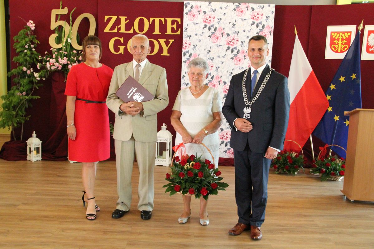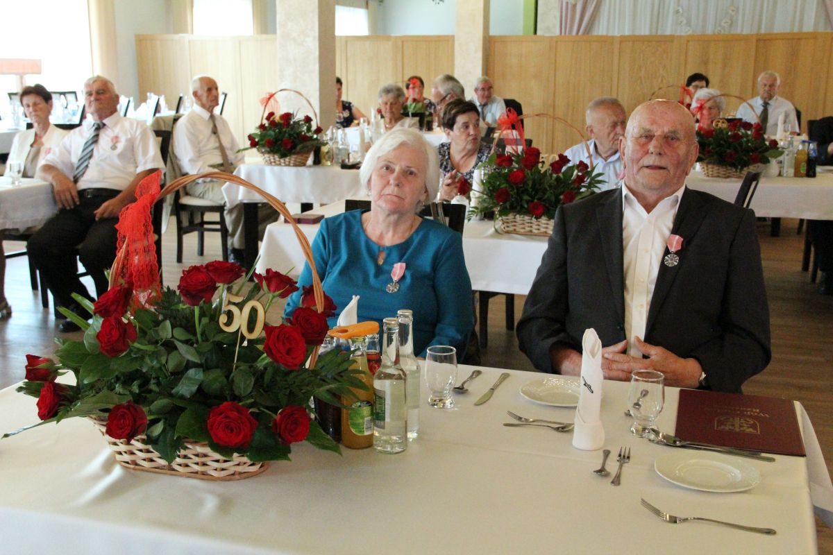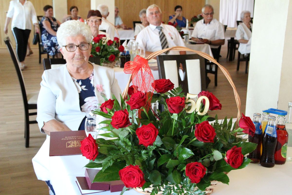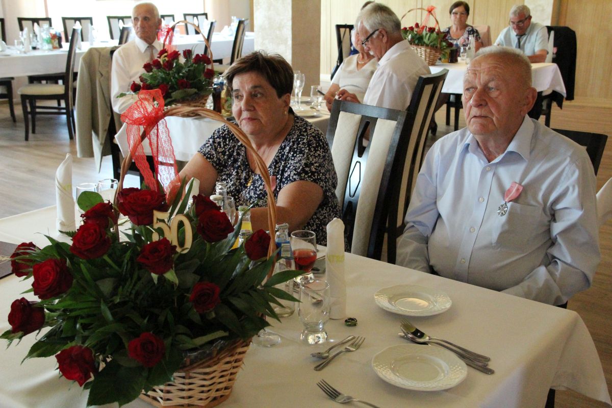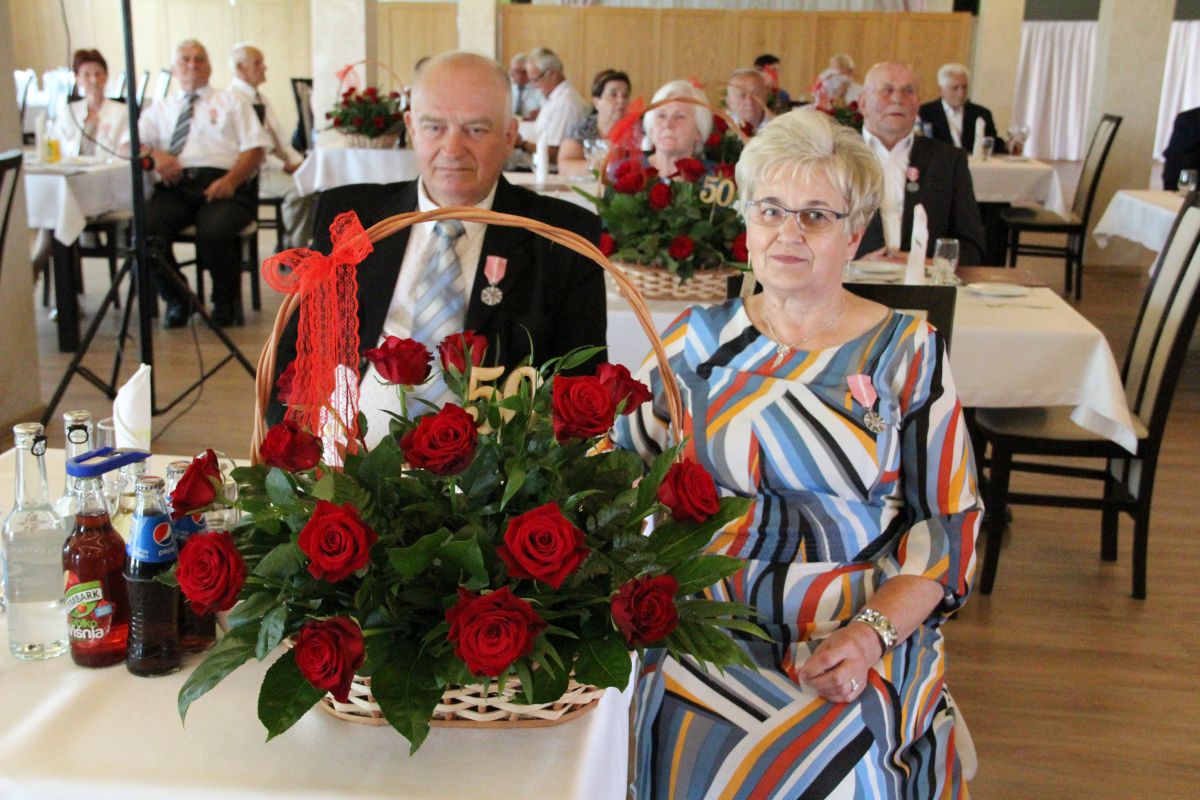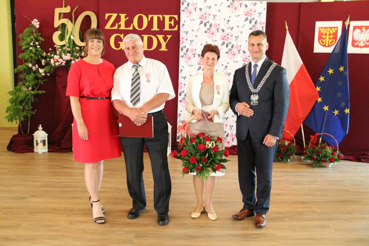 Wójt podkreślał także, że Jubilaci są wspaniałym wzorem dla innych, szczególnie dla młodych małżeństw. - Pół wieku temu ślubowaliście przed sobą i Bogiem miłość, wierność, uczciwość małżeńską oraz wspólne życie aż do śmierci. Państwa obecność tutaj drodzy Jubilaci dowozi, że dochowaliście tej przysięgi. Przez te wszystkie lata małżeństwa z całą pewnością przeżyliście wiele niezwykle pięknych, cudownych, podniosłych i niesamowitych chwil. Zdarzały się jednak zapewne także gorsze momenty, chwile ciężkie, a być może nawet i tragiczne. Bez względu na zaistniałą sytuację byliście jednak zawsze ze sobą i wzajemnie się wspieraliście. Byliście ze sobą na dobre i na złe. Bo taka właśnie powinna być miłość. Nie wystarczy dzielić z kimś życia, kiedy wszystko jest piękne, człowiek jest młody, zdrowy, nie ma żadnych zmartwień, ale także w sytuacjach, kiedy spotykają nas kłopoty i różnego rodzaju problemy. Prawdziwe, zgodne i dobre małżeństwo to takie, które przetrwa wszystkie życiowe zawieruchy, by po latach zyskać wzajemne zrozumienie, tolerancję i szacunek - podkreślał Mariusz Palej.