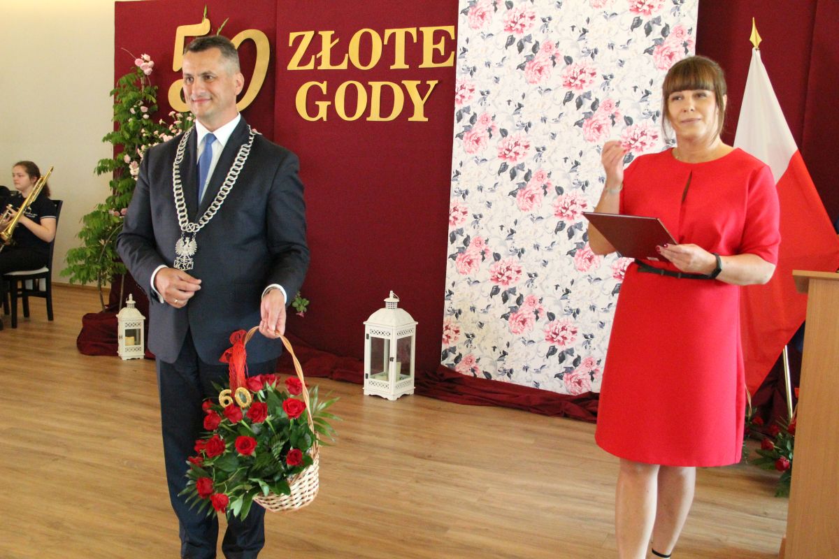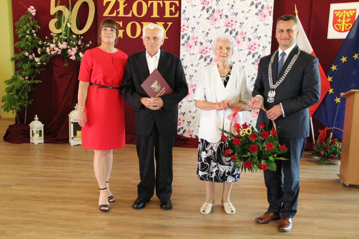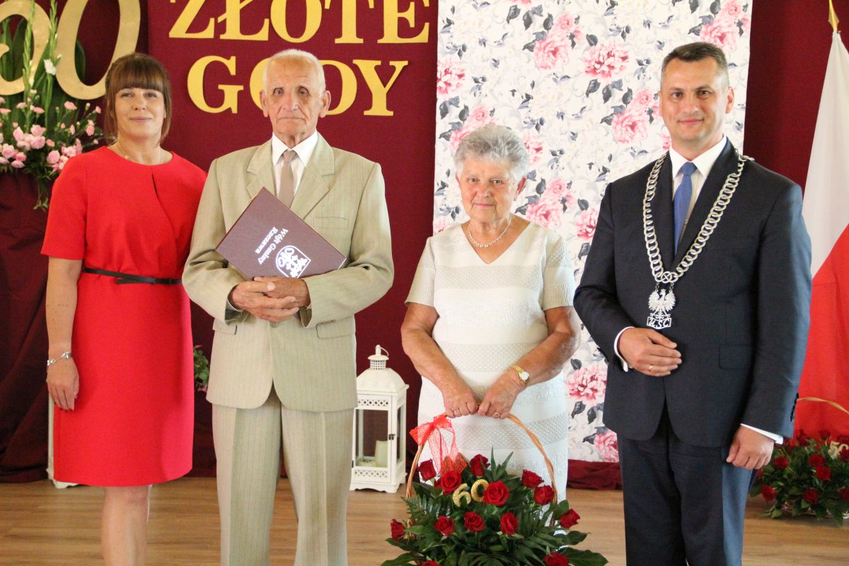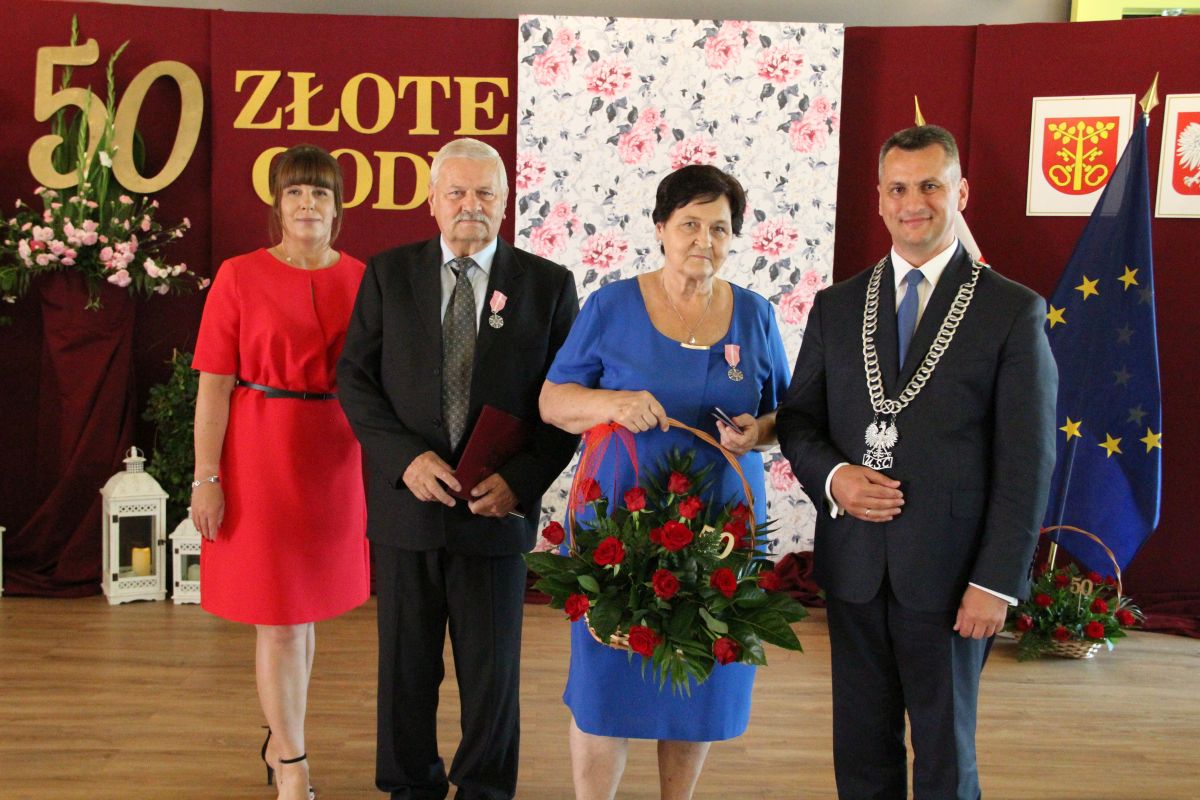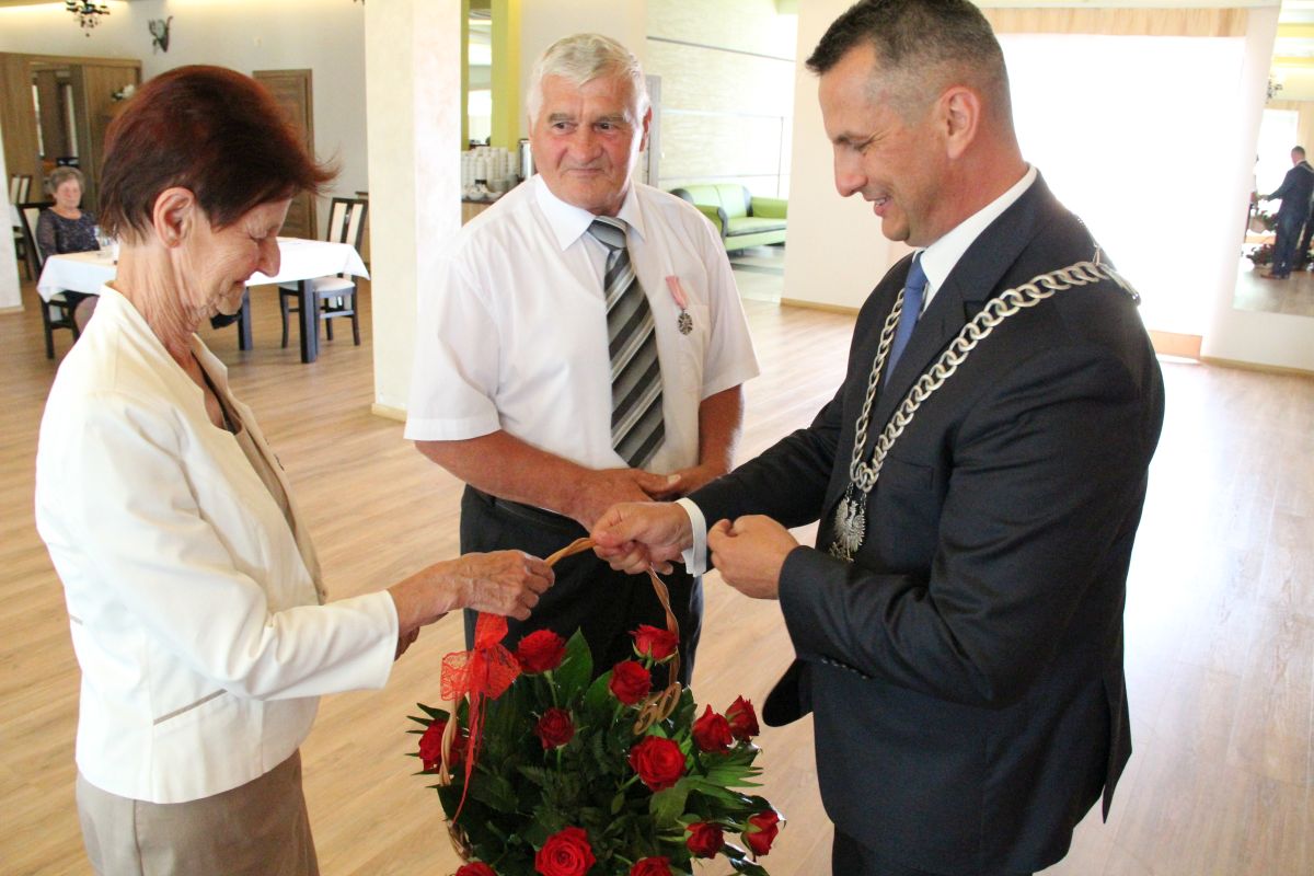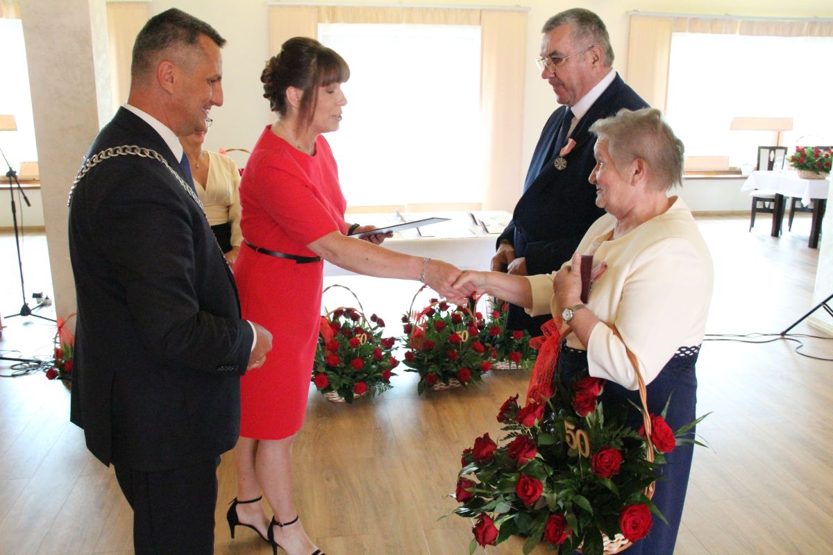 Wójt podkreślał także, że Jubilaci są wspaniałym wzorem dla innych, szczególnie dla młodych małżeństw. - Pół wieku temu ślubowaliście przed sobą i Bogiem miłość, wierność, uczciwość małżeńską oraz wspólne życie aż do śmierci. Państwa obecność tutaj drodzy Jubilaci dowozi, że dochowaliście tej przysięgi. Przez te wszystkie lata małżeństwa z całą pewnością przeżyliście wiele niezwykle pięknych, cudownych, podniosłych i niesamowitych chwil. Zdarzały się jednak zapewne także gorsze momenty, chwile ciężkie, a być może nawet i tragiczne. Bez względu na zaistniałą sytuację byliście jednak zawsze ze sobą i wzajemnie się wspieraliście. Byliście ze sobą na dobre i na złe. Bo taka właśnie powinna być miłość. Nie wystarczy dzielić z kimś życia, kiedy wszystko jest piękne, człowiek jest młody, zdrowy, nie ma żadnych zmartwień, ale także w sytuacjach, kiedy spotykają nas kłopoty i różnego rodzaju problemy. Prawdziwe, zgodne i dobre małżeństwo to takie, które przetrwa wszystkie życiowe zawieruchy, by po latach zyskać wzajemne zrozumienie, tolerancję i szacunek - podkreślał Mariusz Palej.