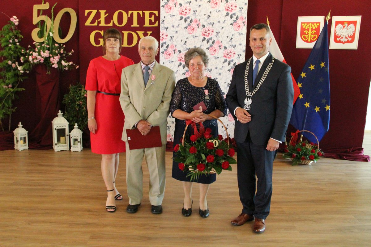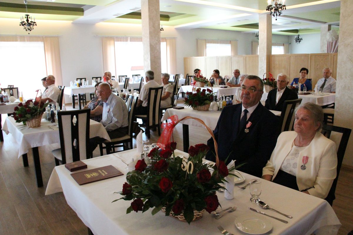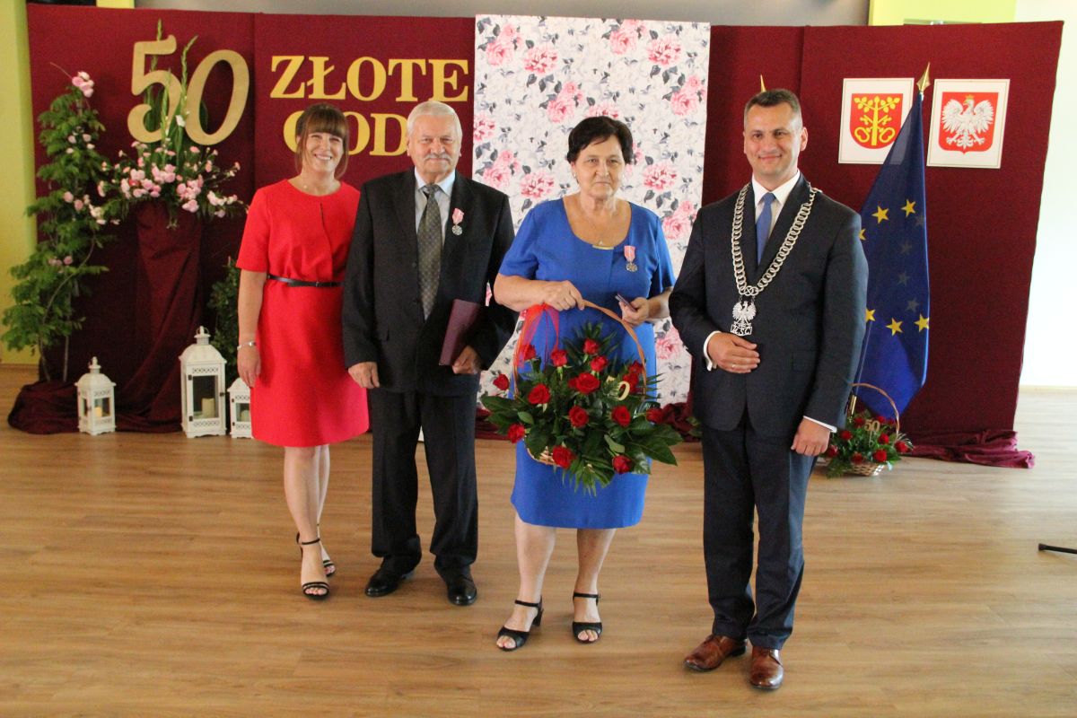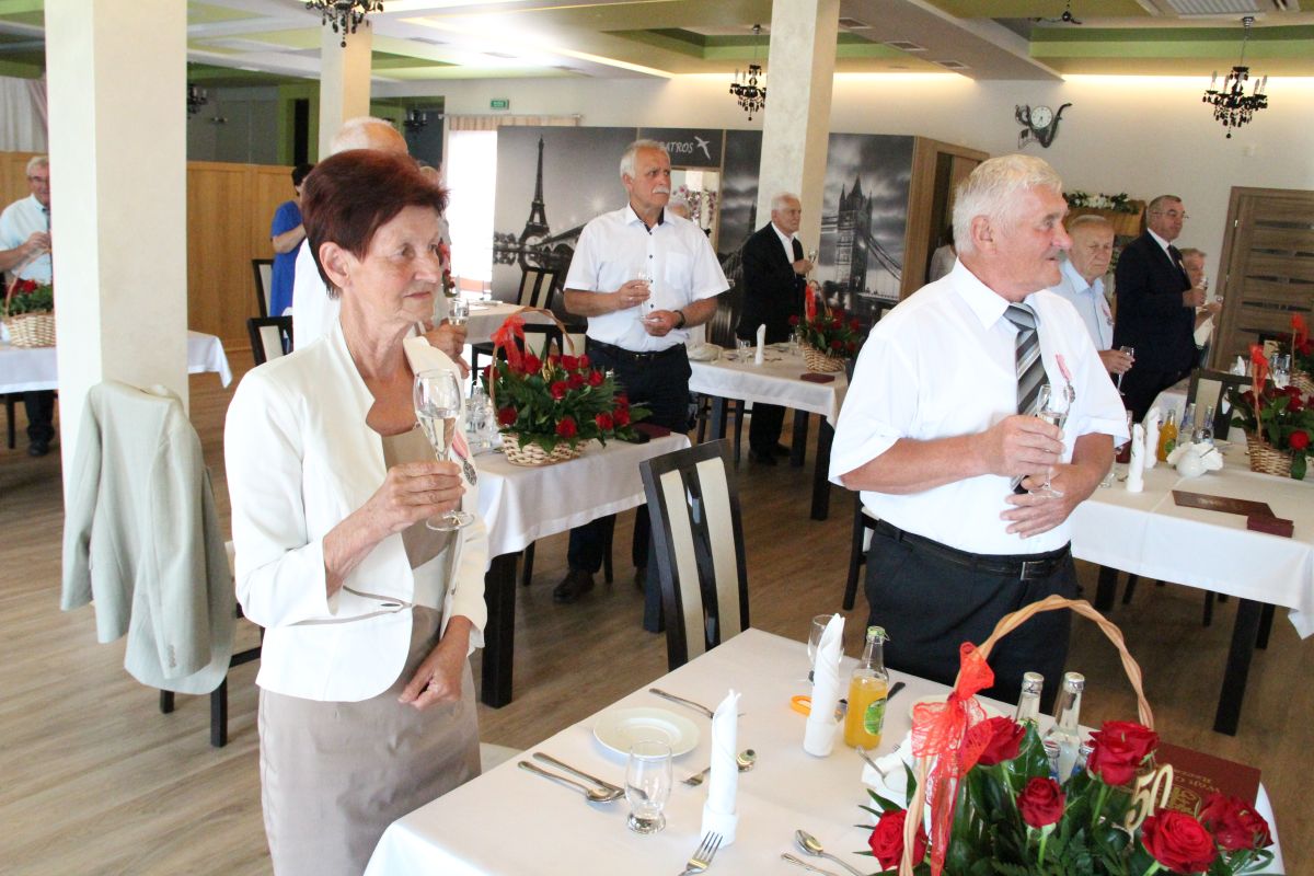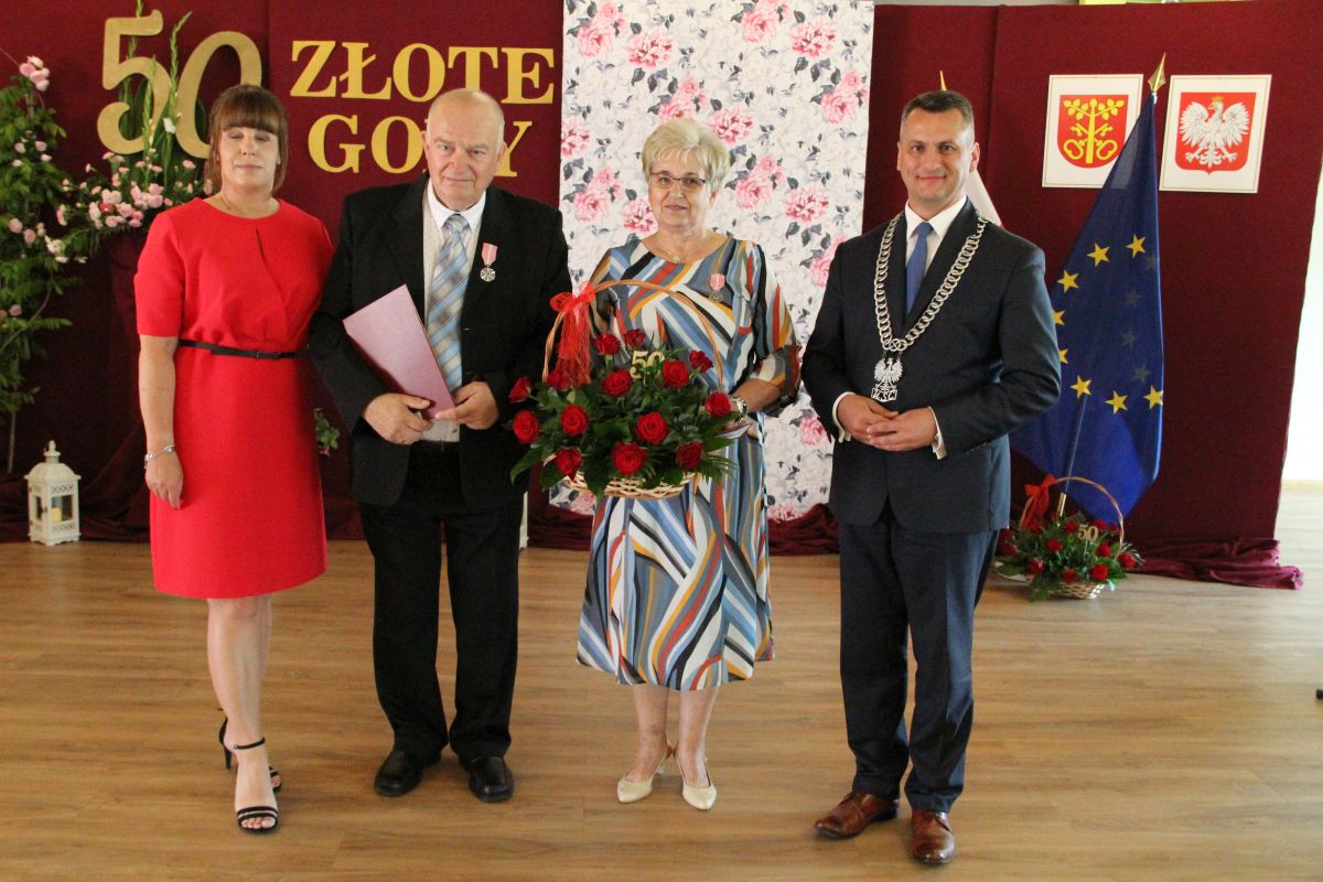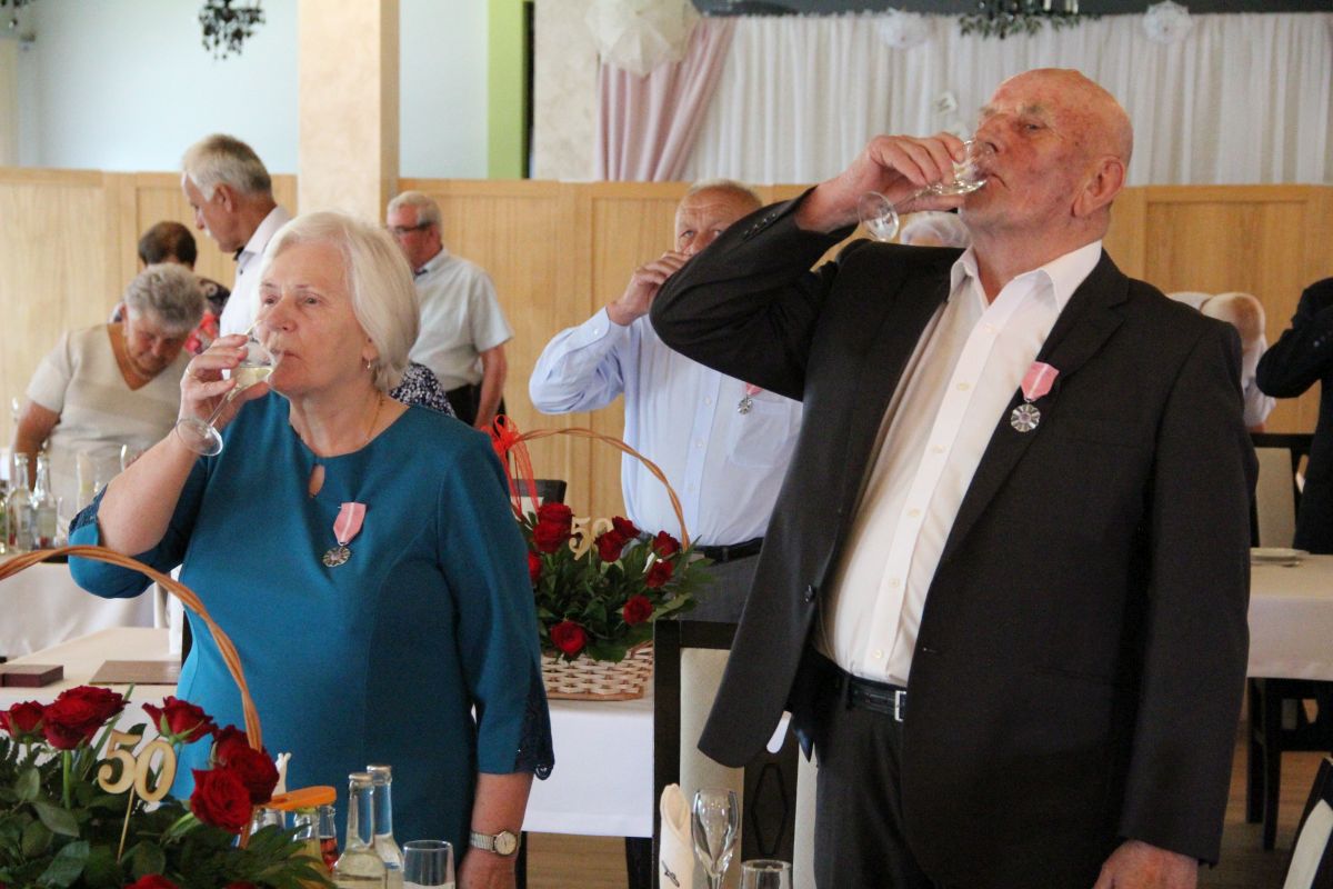 Wójt podkreślał także, że Jubilaci są wspaniałym wzorem dla innych, szczególnie dla młodych małżeństw. - Pół wieku temu ślubowaliście przed sobą i Bogiem miłość, wierność, uczciwość małżeńską oraz wspólne życie aż do śmierci. Państwa obecność tutaj drodzy Jubilaci dowozi, że dochowaliście tej przysięgi. Przez te wszystkie lata małżeństwa z całą pewnością przeżyliście wiele niezwykle pięknych, cudownych, podniosłych i niesamowitych chwil. Zdarzały się jednak zapewne także gorsze momenty, chwile ciężkie, a być może nawet i tragiczne. Bez względu na zaistniałą sytuację byliście jednak zawsze ze sobą i wzajemnie się wspieraliście. Byliście ze sobą na dobre i na złe. Bo taka właśnie powinna być miłość. Nie wystarczy dzielić z kimś życia, kiedy wszystko jest piękne, człowiek jest młody, zdrowy, nie ma żadnych zmartwień, ale także w sytuacjach, kiedy spotykają nas kłopoty i różnego rodzaju problemy. Prawdziwe, zgodne i dobre małżeństwo to takie, które przetrwa wszystkie życiowe zawieruchy, by po latach zyskać wzajemne zrozumienie, tolerancję i szacunek - podkreślał Mariusz Palej.