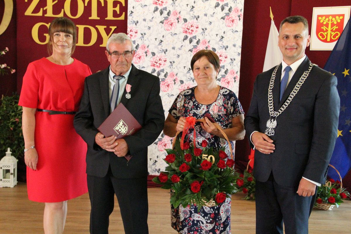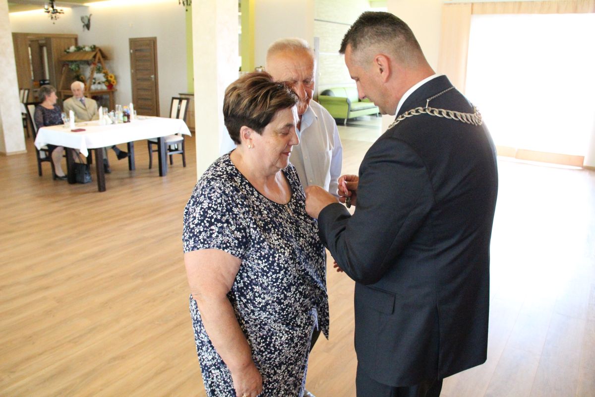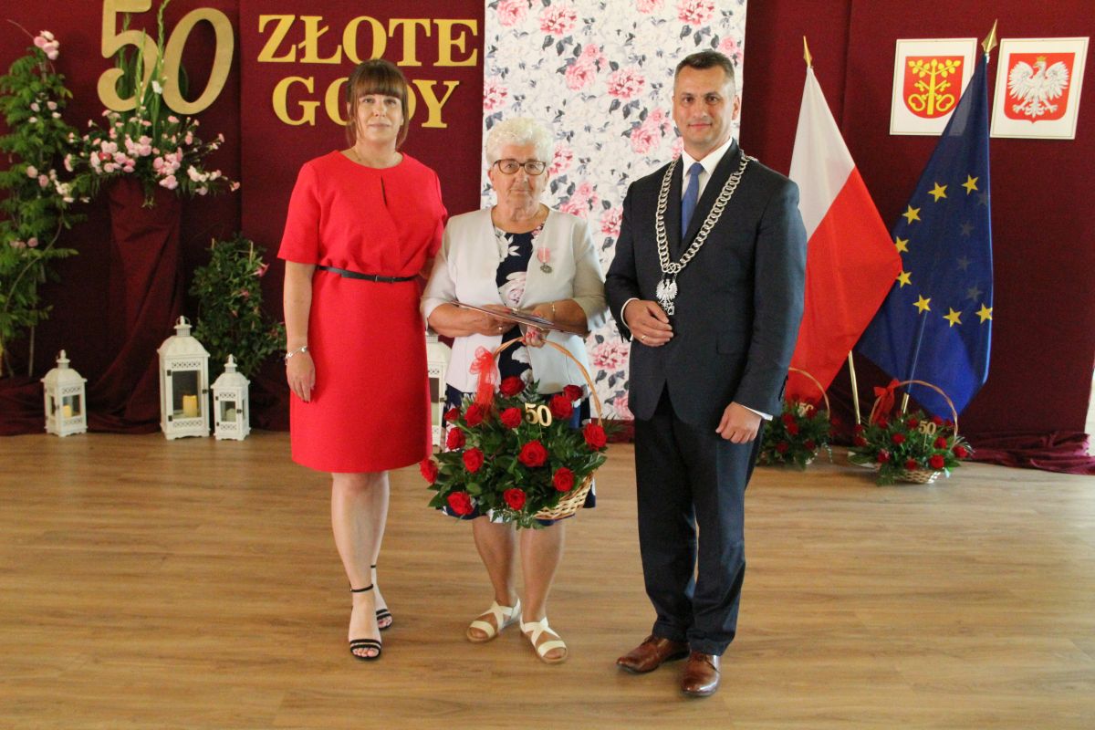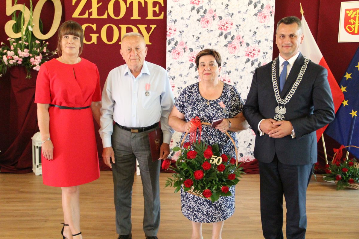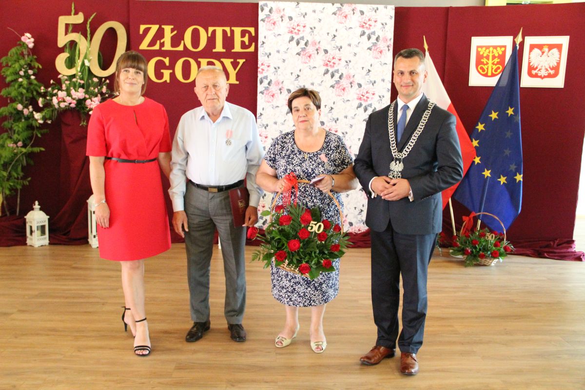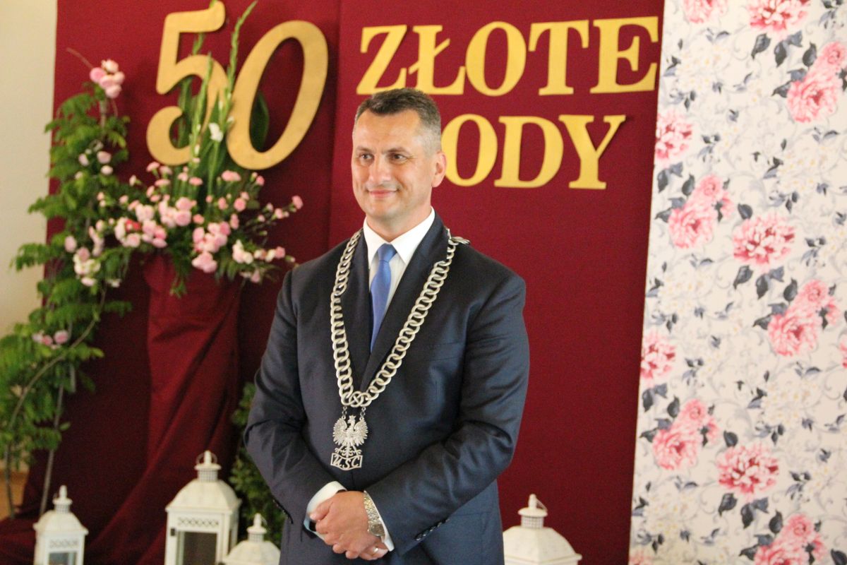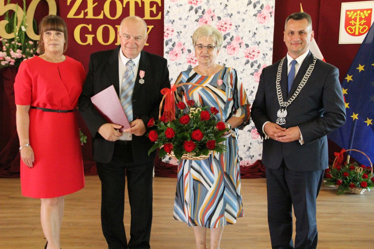Wójt podkreślał także, że Jubilaci są wspaniałym wzorem dla innych, szczególnie dla młodych małżeństw. - Pół wieku temu ślubowaliście przed sobą i Bogiem miłość, wierność, uczciwość małżeńską oraz wspólne życie aż do śmierci. Państwa obecność tutaj drodzy Jubilaci dowozi, że dochowaliście tej przysięgi. Przez te wszystkie lata małżeństwa z całą pewnością przeżyliście wiele niezwykle pięknych, cudownych, podniosłych i niesamowitych chwil. Zdarzały się jednak zapewne także gorsze momenty, chwile ciężkie, a być może nawet i tragiczne. Bez względu na zaistniałą sytuację byliście jednak zawsze ze sobą i wzajemnie się wspieraliście. Byliście ze sobą na dobre i na złe. Bo taka właśnie powinna być miłość. Nie wystarczy dzielić z kimś życia, kiedy wszystko jest piękne, człowiek jest młody, zdrowy, nie ma żadnych zmartwień, ale także w sytuacjach, kiedy spotykają nas kłopoty i różnego rodzaju problemy. Prawdziwe, zgodne i dobre małżeństwo to takie, które przetrwa wszystkie życiowe zawieruchy, by po latach zyskać wzajemne zrozumienie, tolerancję i szacunek - podkreślał Mariusz Palej.