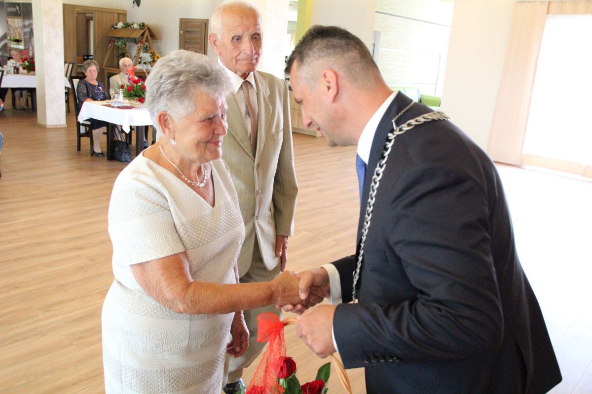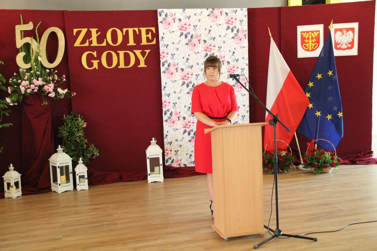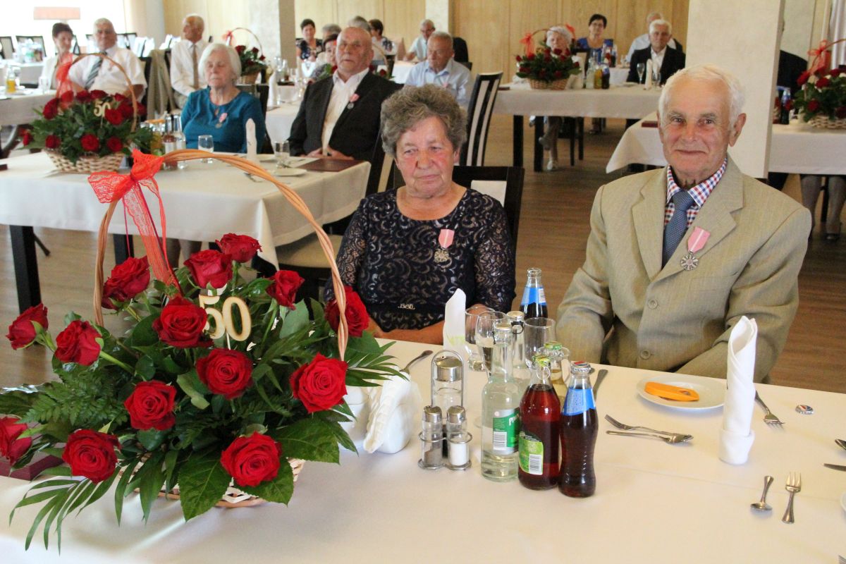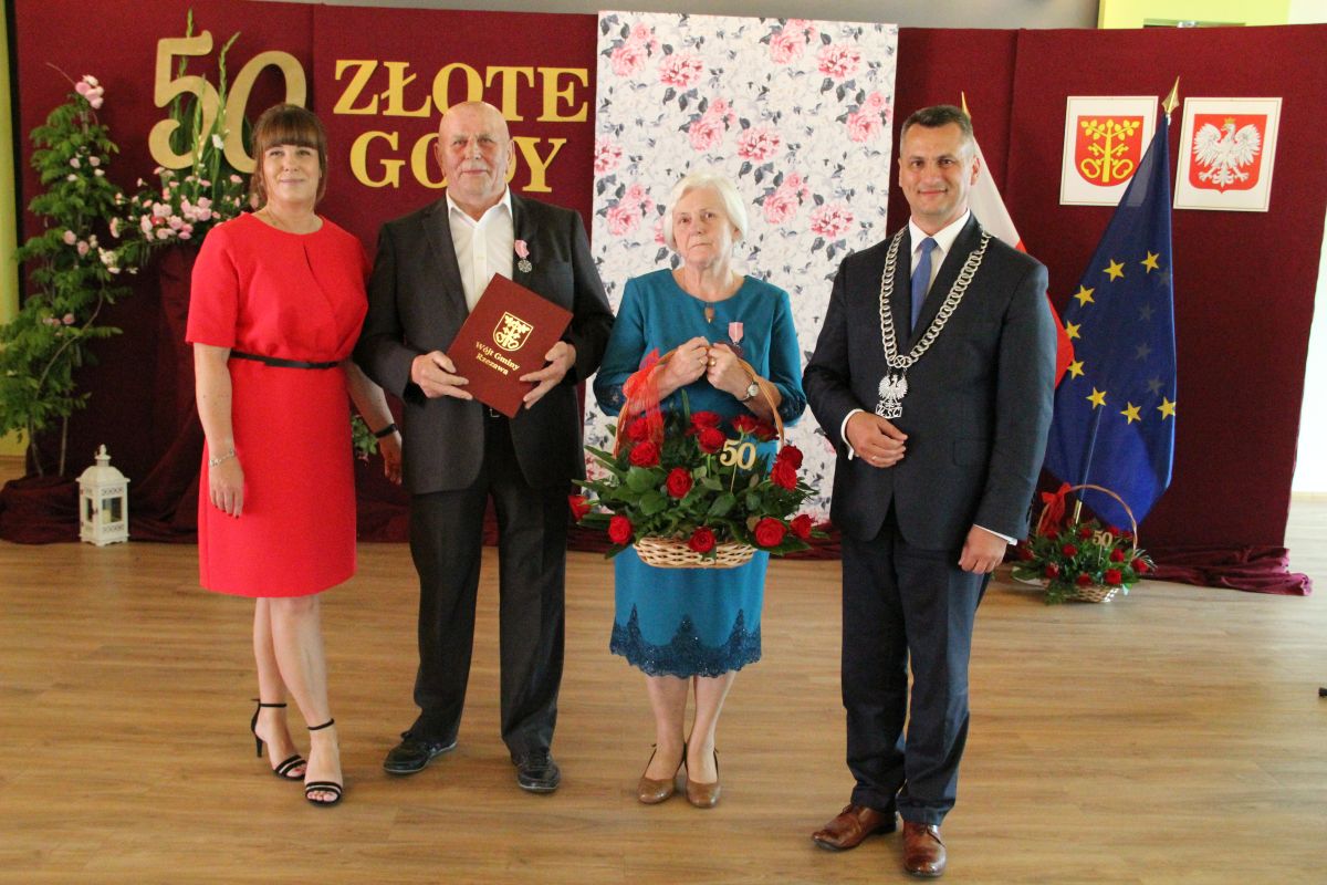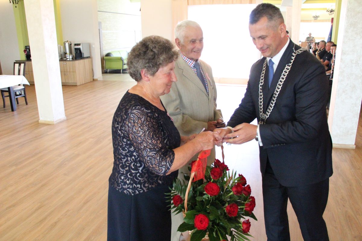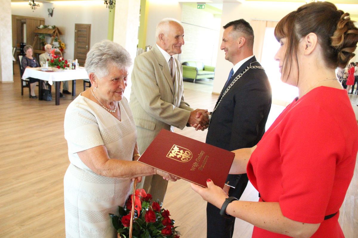 Wójt podkreślał także, że Jubilaci są wspaniałym wzorem dla innych, szczególnie dla młodych małżeństw. - Pół wieku temu ślubowaliście przed sobą i Bogiem miłość, wierność, uczciwość małżeńską oraz wspólne życie aż do śmierci. Państwa obecność tutaj drodzy Jubilaci dowozi, że dochowaliście tej przysięgi. Przez te wszystkie lata małżeństwa z całą pewnością przeżyliście wiele niezwykle pięknych, cudownych, podniosłych i niesamowitych chwil. Zdarzały się jednak zapewne także gorsze momenty, chwile ciężkie, a być może nawet i tragiczne. Bez względu na zaistniałą sytuację byliście jednak zawsze ze sobą i wzajemnie się wspieraliście. Byliście ze sobą na dobre i na złe. Bo taka właśnie powinna być miłość. Nie wystarczy dzielić z kimś życia, kiedy wszystko jest piękne, człowiek jest młody, zdrowy, nie ma żadnych zmartwień, ale także w sytuacjach, kiedy spotykają nas kłopoty i różnego rodzaju problemy. Prawdziwe, zgodne i dobre małżeństwo to takie, które przetrwa wszystkie życiowe zawieruchy, by po latach zyskać wzajemne zrozumienie, tolerancję i szacunek - podkreślał Mariusz Palej.