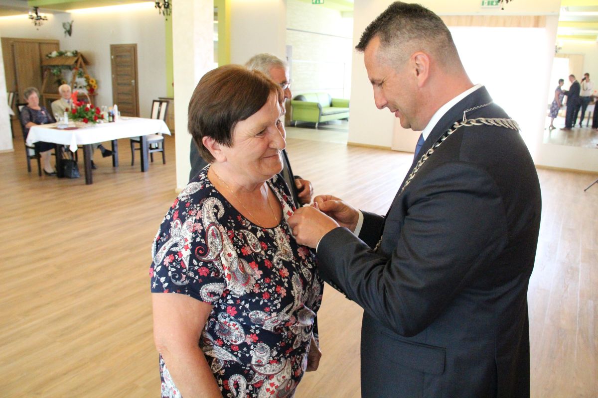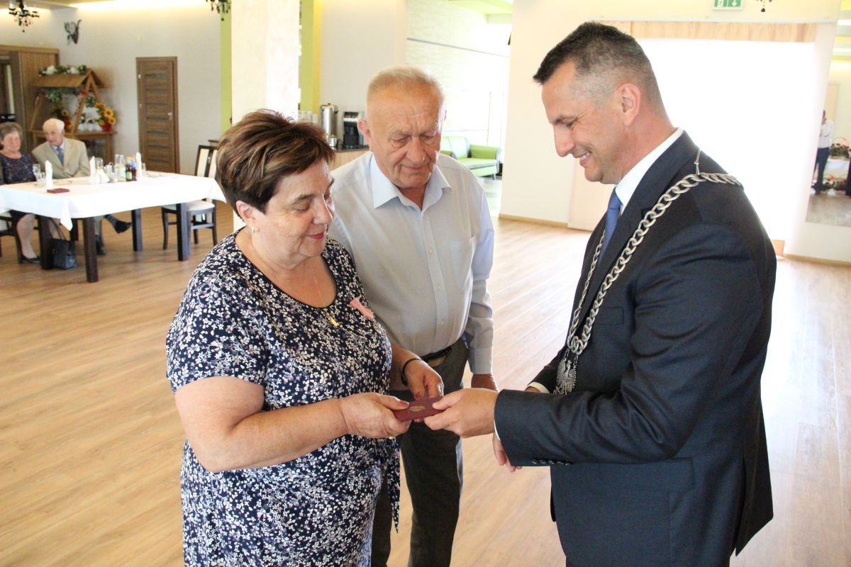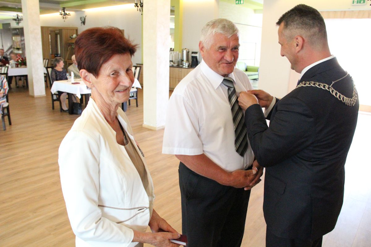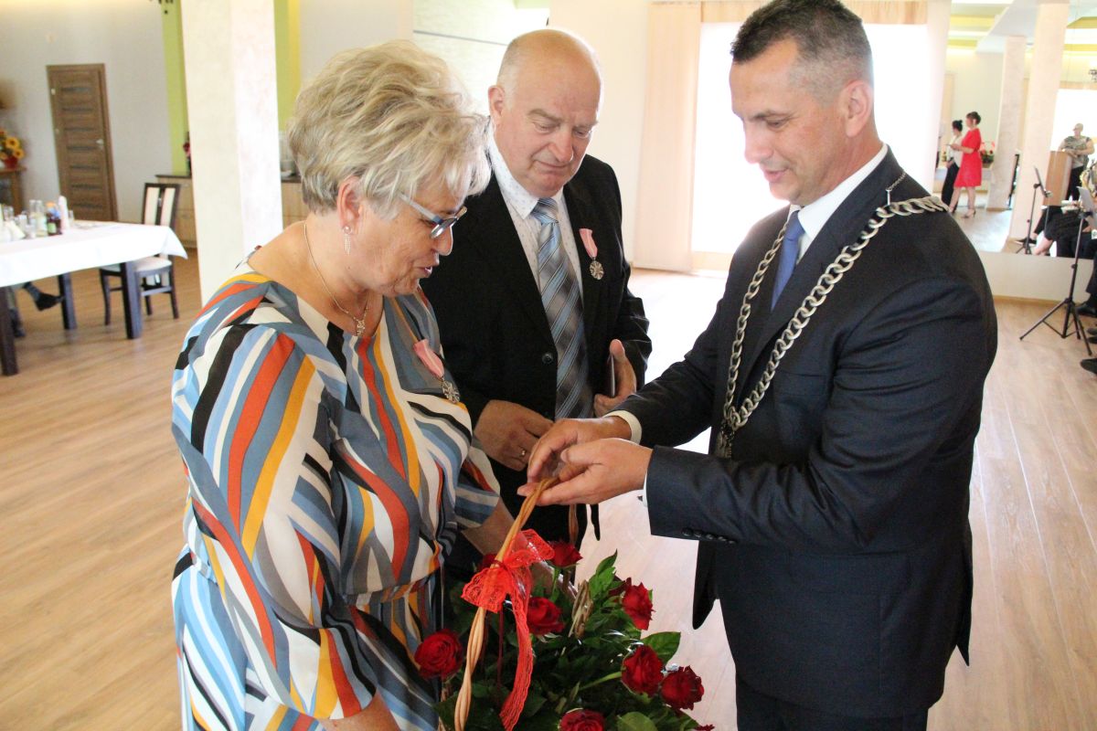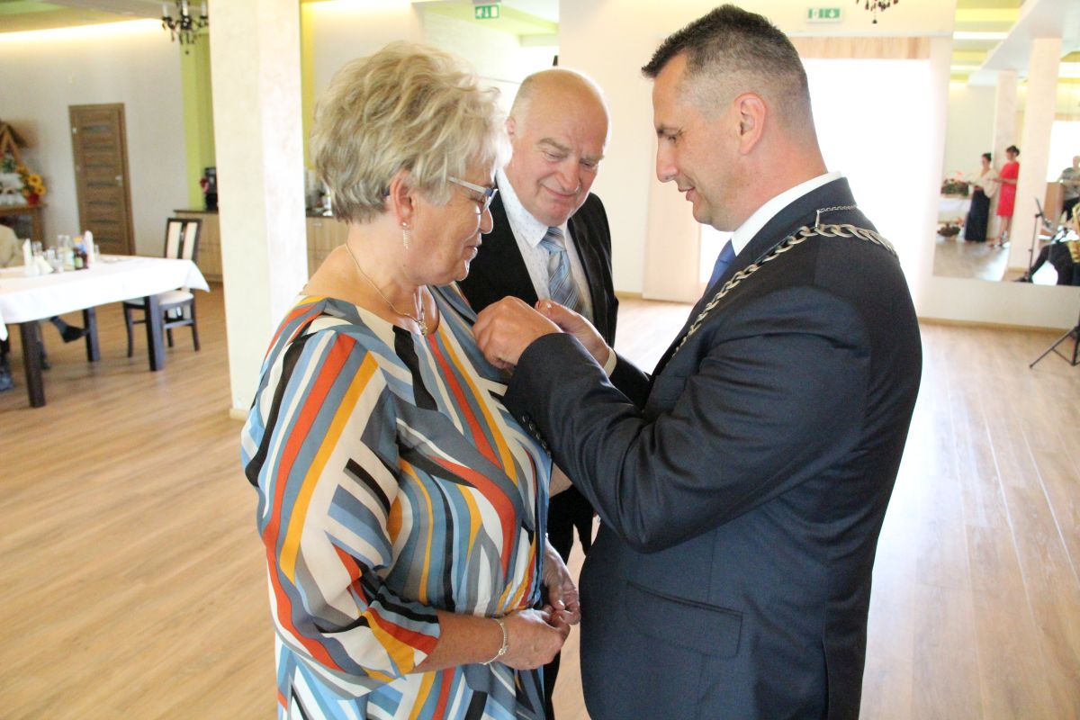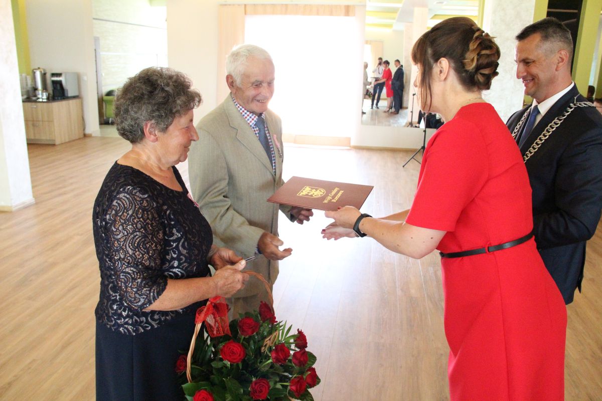Wójt podkreślał także, że Jubilaci są wspaniałym wzorem dla innych, szczególnie dla młodych małżeństw. - Pół wieku temu ślubowaliście przed sobą i Bogiem miłość, wierność, uczciwość małżeńską oraz wspólne życie aż do śmierci. Państwa obecność tutaj drodzy Jubilaci dowozi, że dochowaliście tej przysięgi. Przez te wszystkie lata małżeństwa z całą pewnością przeżyliście wiele niezwykle pięknych, cudownych, podniosłych i niesamowitych chwil. Zdarzały się jednak zapewne także gorsze momenty, chwile ciężkie, a być może nawet i tragiczne. Bez względu na zaistniałą sytuację byliście jednak zawsze ze sobą i wzajemnie się wspieraliście. Byliście ze sobą na dobre i na złe. Bo taka właśnie powinna być miłość. Nie wystarczy dzielić z kimś życia, kiedy wszystko jest piękne, człowiek jest młody, zdrowy, nie ma żadnych zmartwień, ale także w sytuacjach, kiedy spotykają nas kłopoty i różnego rodzaju problemy. Prawdziwe, zgodne i dobre małżeństwo to takie, które przetrwa wszystkie życiowe zawieruchy, by po latach zyskać wzajemne zrozumienie, tolerancję i szacunek - podkreślał Mariusz Palej.