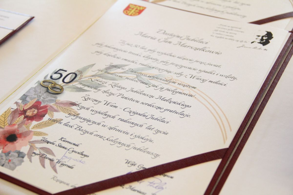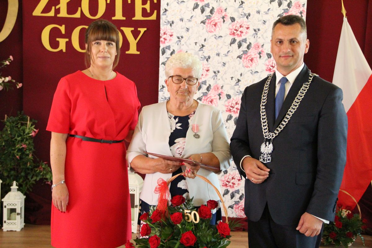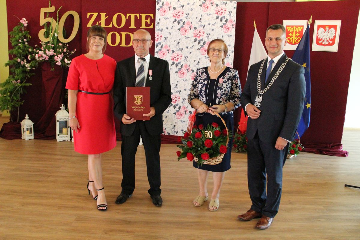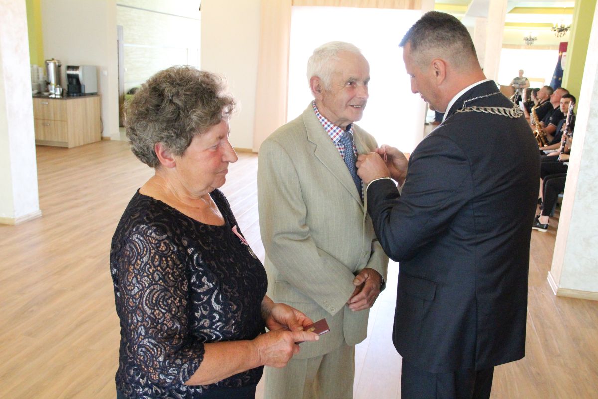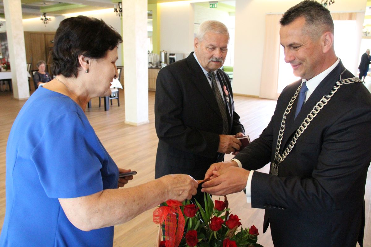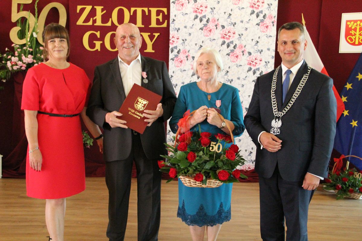Wójt podkreślał także, że Jubilaci są wspaniałym wzorem dla innych, szczególnie dla młodych małżeństw. - Pół wieku temu ślubowaliście przed sobą i Bogiem miłość, wierność, uczciwość małżeńską oraz wspólne życie aż do śmierci. Państwa obecność tutaj drodzy Jubilaci dowozi, że dochowaliście tej przysięgi. Przez te wszystkie lata małżeństwa z całą pewnością przeżyliście wiele niezwykle pięknych, cudownych, podniosłych i niesamowitych chwil. Zdarzały się jednak zapewne także gorsze momenty, chwile ciężkie, a być może nawet i tragiczne. Bez względu na zaistniałą sytuację byliście jednak zawsze ze sobą i wzajemnie się wspieraliście. Byliście ze sobą na dobre i na złe. Bo taka właśnie powinna być miłość. Nie wystarczy dzielić z kimś życia, kiedy wszystko jest piękne, człowiek jest młody, zdrowy, nie ma żadnych zmartwień, ale także w sytuacjach, kiedy spotykają nas kłopoty i różnego rodzaju problemy. Prawdziwe, zgodne i dobre małżeństwo to takie, które przetrwa wszystkie życiowe zawieruchy, by po latach zyskać wzajemne zrozumienie, tolerancję i szacunek - podkreślał Mariusz Palej.