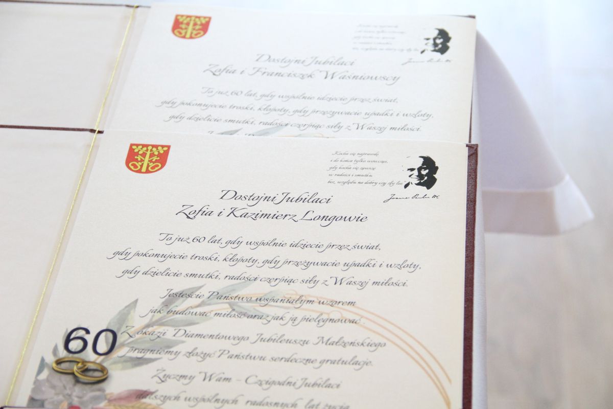 Wójt Gminy Rzezawa podziękował dostojnym Jubilatom za przyjęcie zaproszenia i przybycie na uroczystość, złożył im serdeczne życzenia długich, pogodnych lat życia w jak najlepszym zdrowiu oraz doczekania w dostatku kolejnych rocznic. - Z okazji Waszych Jubileuszy pragnę Państwu złożyć płynące z serca gratulacje i najlepsze życzenia. Życzę Wam przede wszystkim dużo zdrowia i jeszcze wielu lat wspólnego życia. Niech nadchodzące dni, miesiące, lata będą dla Państwa pełne optymizmu oraz radości i upływają Wam w spokoju, w otoczeniu kochającej rodziny. Życzę Wam także błogosławieństwa Bożego, ludzkiej życzliwości, a także tego byście doczekali wspólnie kolejnych pięknych rocznic i jubileuszy - mówił Mariusz Palej.