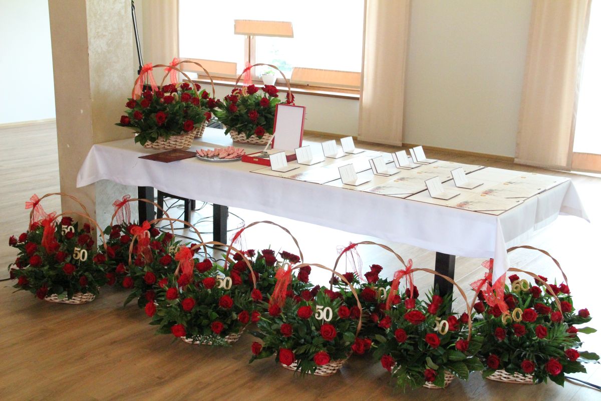 Odznaczeni Jubilaci swoje okrągłe rocznice ślubów obchodzili w ubiegłym roku. Przez pandemię koronawirusa nie było jednak możliwości zorganizowania uroczystości wcześniej. Na szczęście obecna sytuacja epidemiologiczna pozwoliła już na wspólne świętowanie tych jakże pięknych i wspaniałych Jubileuszy.