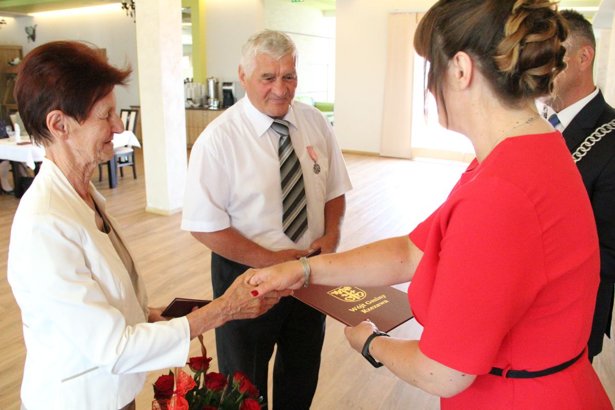Najlepsze życzenia małżeństwom świętującym swoje piękne rocznice ślubu złożyła także Dorota Wągroda, Kierownik Urzędu Stanu Cywilnego w Rzezawie. - Pozwólcie drodzy Jubilaci, że w tym tak uroczystym dla Was dniu złożę najlepsze życzenia na przyszłość, aby jak dotąd towarzyszyła Wam zawsze prawdziwa przyjaźń wzajemna, aby nie opuszczało Was zdrowie, szczęście, aby miłość i przywiązanie dzieci w pełni wynagrodziły Wam trud i wysiłek włożony w ich wychowanie. Życzę pogody ducha oraz wielu powodów do radości - mówiła Dorota Wągroda.