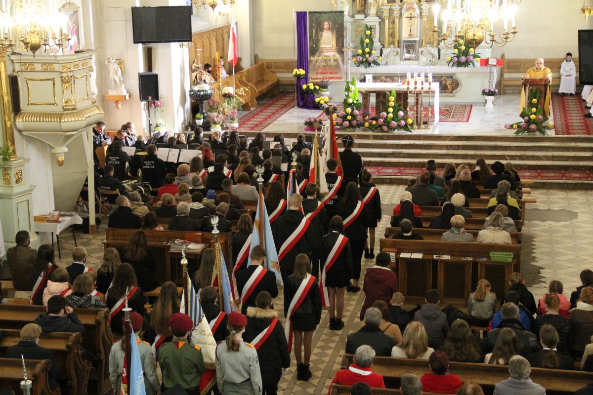 Tegoroczne gminne obchody Narodowego Święta Niepodległości rozpoczęły się od montażu słowno-muzycznego w wykonaniu dzieci i młodzieży z Publicznej Szkoły Podstawowej w Rzezawie. Następnie została odprawiona Msza Święta w intencji Ojczyzny, której przewodniczył ks. Tadeusz Kubala - Proboszcz parafii w Rzezawie. Wygłosił on także okolicznościowe kazanie, a tuż po zakończeniu nabożeństwa przekazał Dyrektor szkoły w Rzezawie Barbarze Korol-Adamczyk pamiątkowy miecz, który może posłużyć m.in. do pasowania uczniów na „Żaków”. Uroczystość zakończył natomiast piękny koncert Orkiestry Dętej Okulice, która zagrała kilka pieśni patriotycznych.