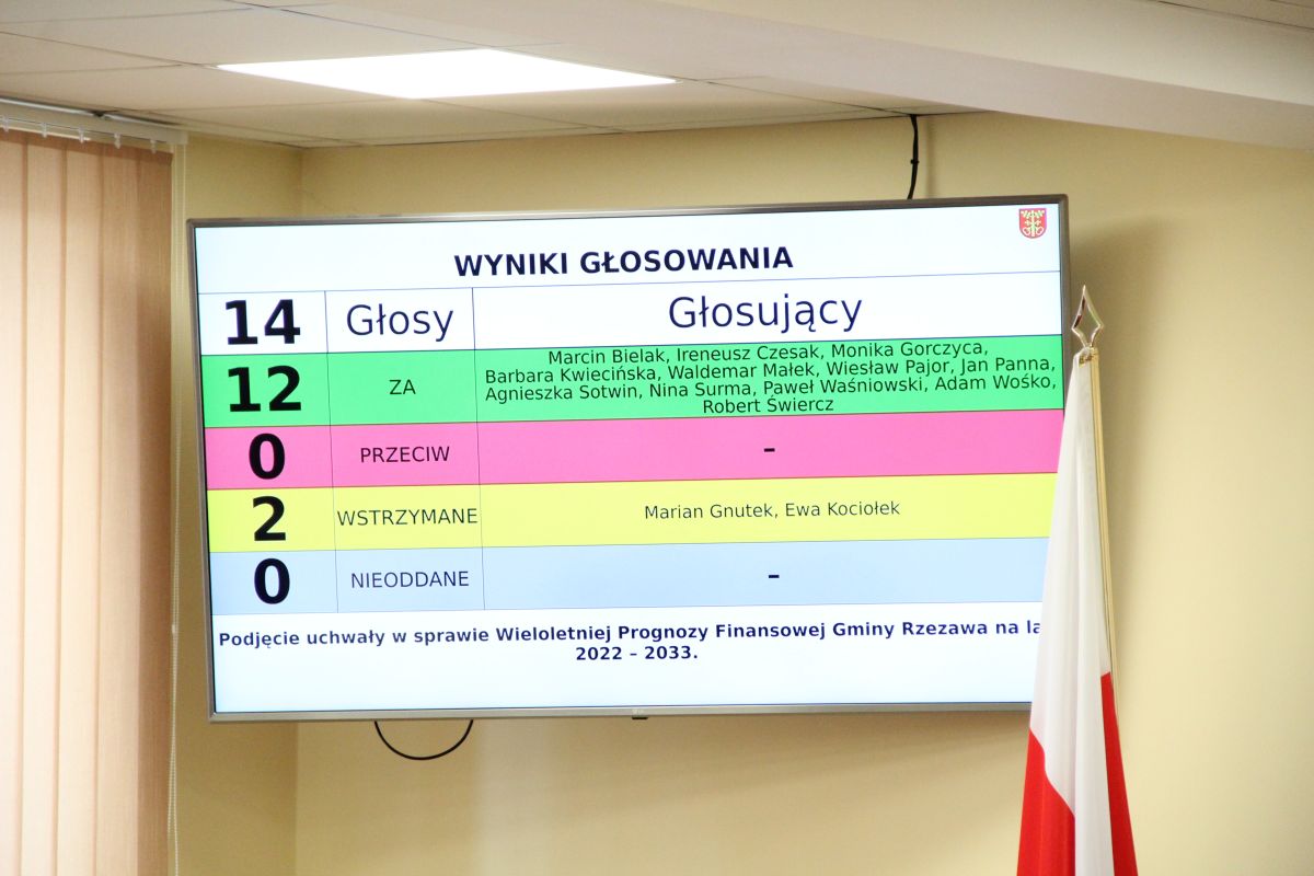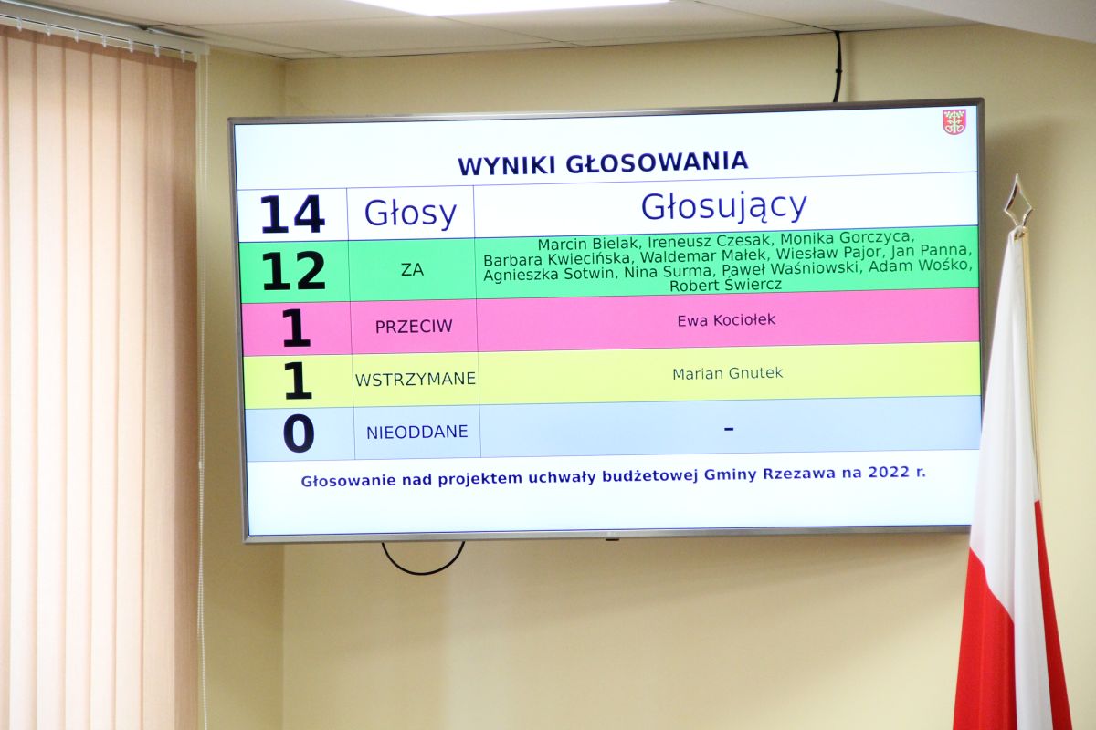 Sesja, podczas której został przyjęty projekt budżetu Gminy Rzezawa na 2022 rok, odbyła się w środę, 22 grudnia w sali narad w budynku przy ulicy Kościelnej w Rzezawie.