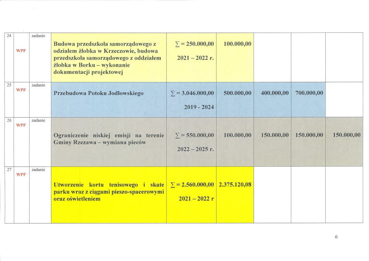 24. Budowa przedszkola samorządowego z oddziałem żłobka na działce ew. nr 789/9 w Krzeczowie, budowa przedszkola samorządowego z oddziałem żłobka w Borku na działkach nr ew. 1800 i 1801 - w konanie dokumentacji projektowej - 100.000,00 zł;