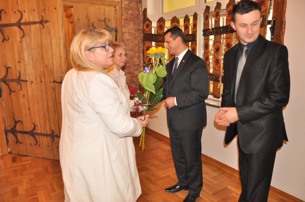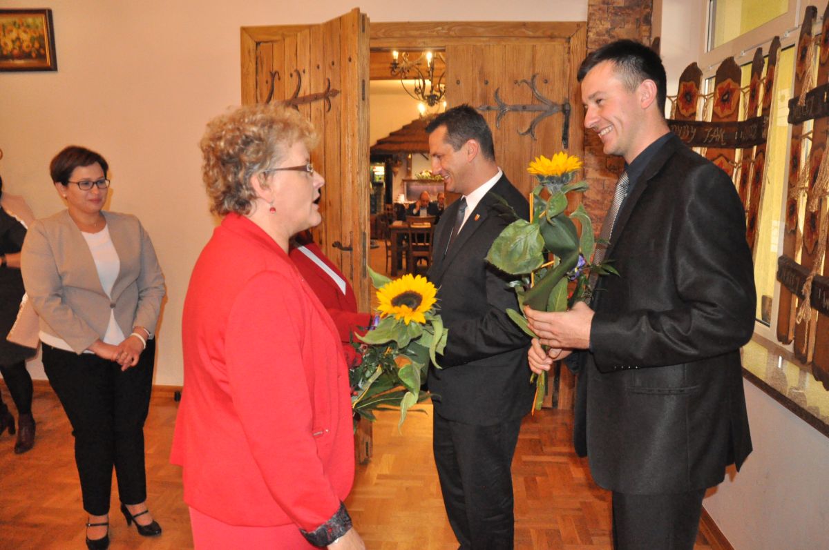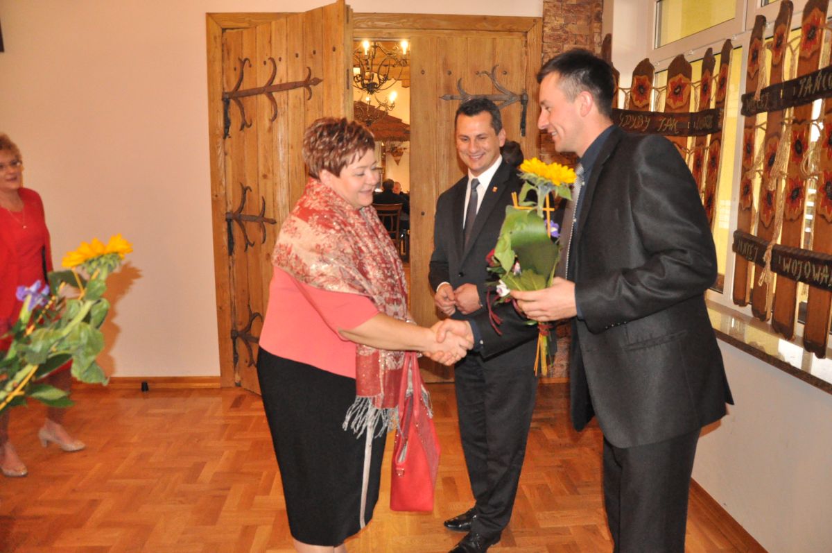 Pan Wójt serdecznie powitał gości i podkreślił, że spotkaliśmy się by wspólnie podziękować wszystkim nauczycielom, pracownikom przedszkoli i szkół za codzienną pracę, poświęcenie i serce wkładane każdego dnia w wychowanie młodych pokoleń, za otwieranie przed młodzieżą nowych horyzontów wiedzy, budzenie zapału i energii do podejmowania twórczych przedsięwzięć.