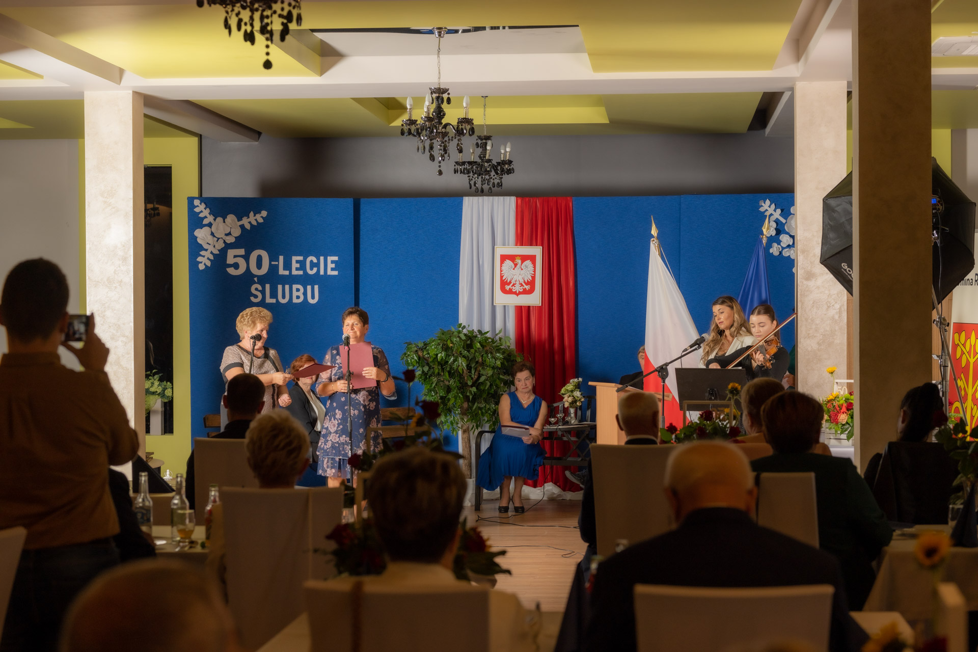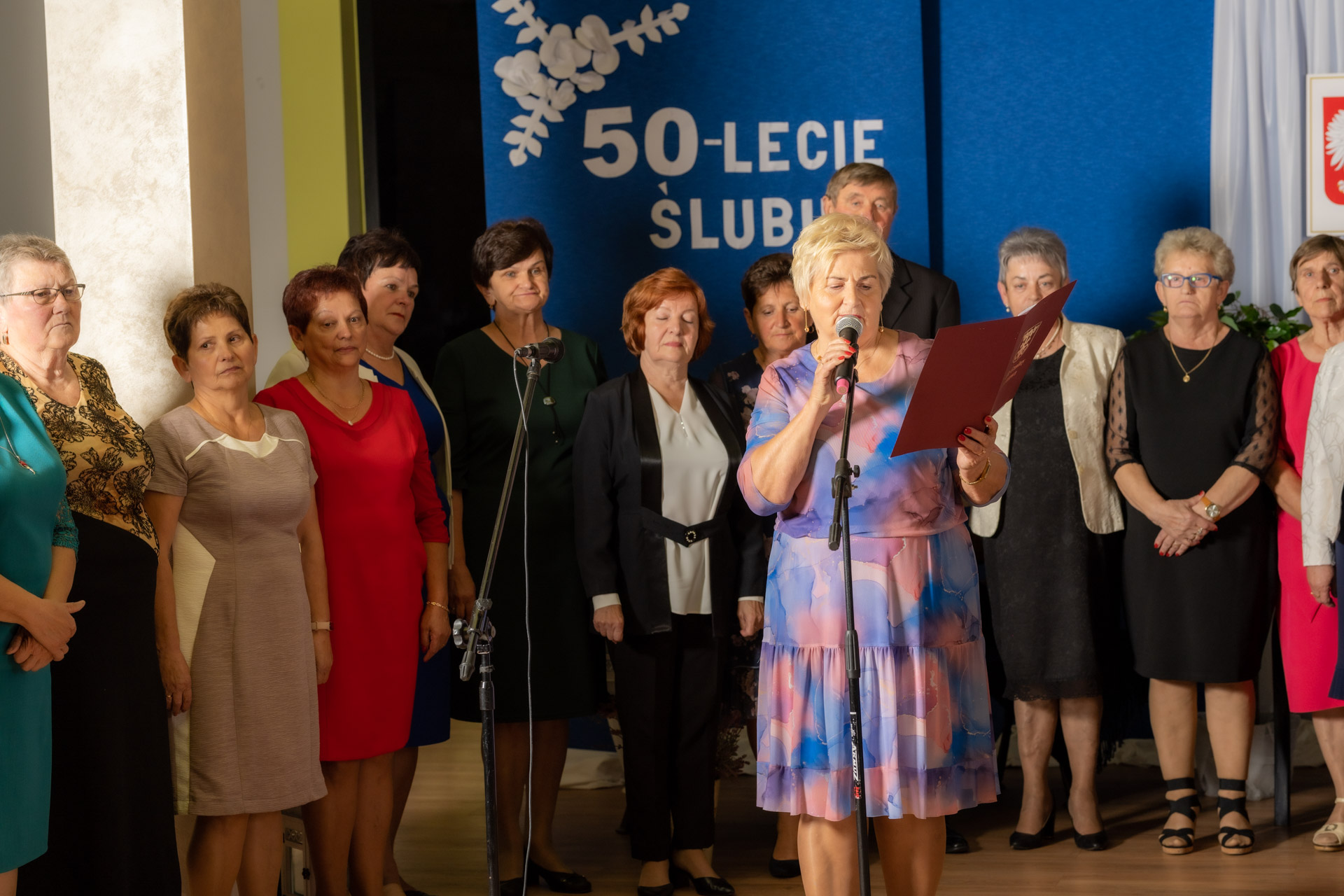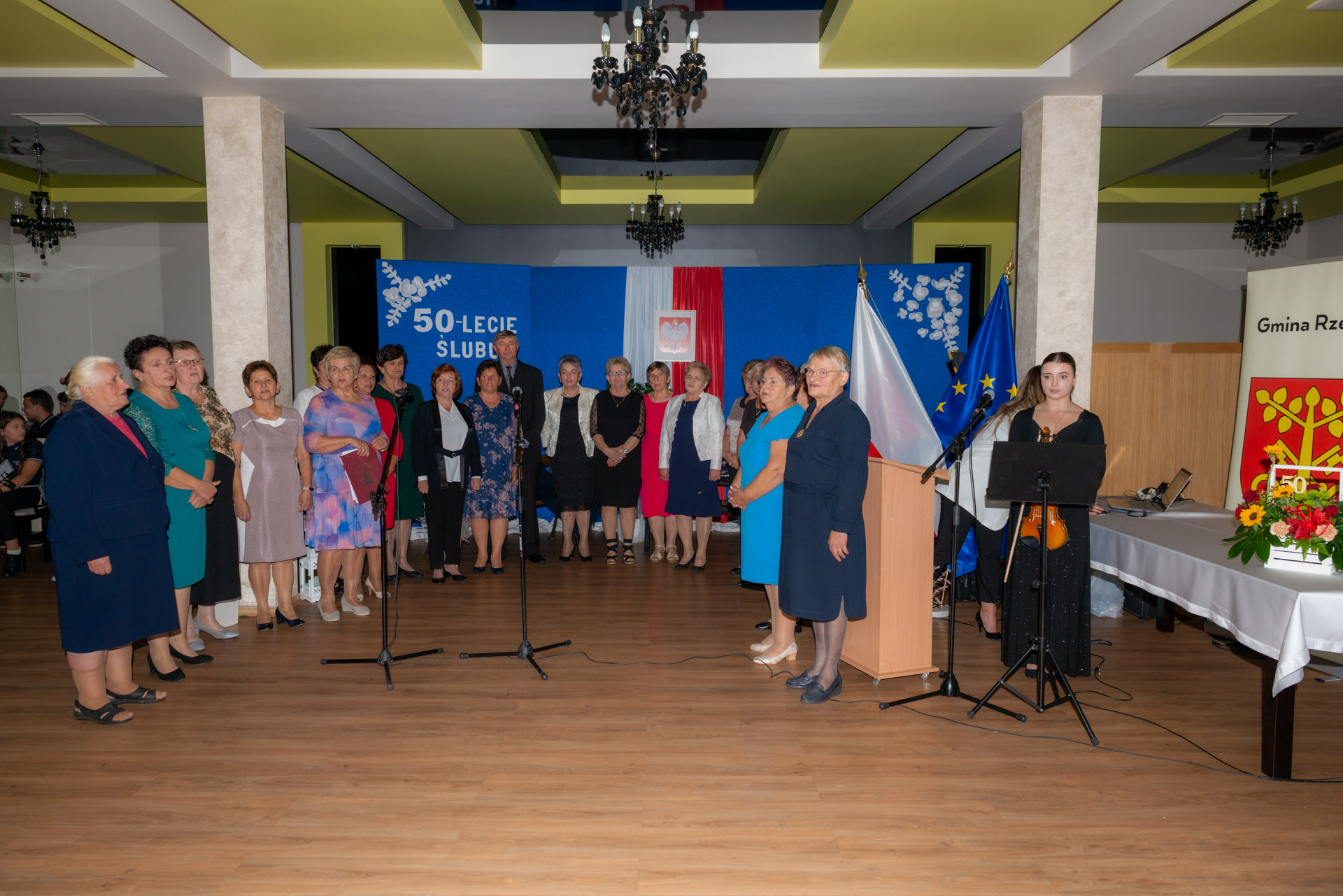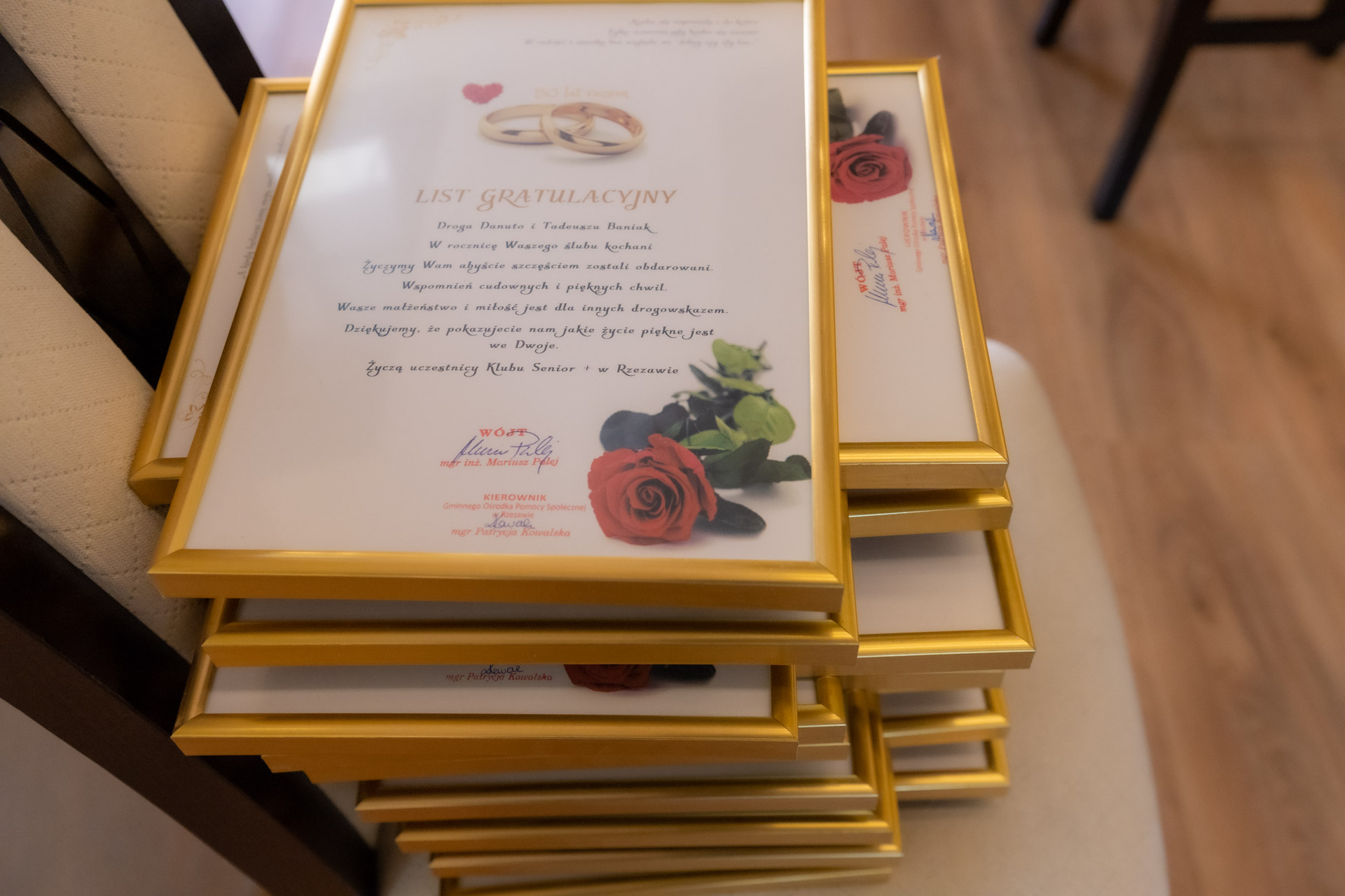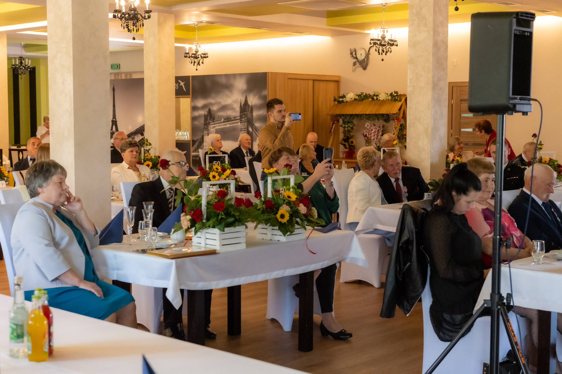 Podczas uroczystości były pamiątkowe zdjęcia, wspólny toast i obiad. Odśpiewano również gromkie „sto lat” dla małżeństw obchodzących piękne jubileusze. Uroczystość uświetnił występ Orkiestry Dętej Okulice oraz Julii Sławęty. Panie z Klubu Senior + z Rzezawy przygotowały natomiast chwytający za serce występ artystyczny. Uroczystość dostarczyła świętującym małżeństwom wiele radości.