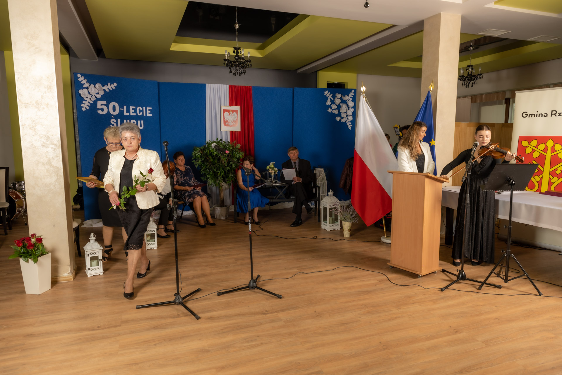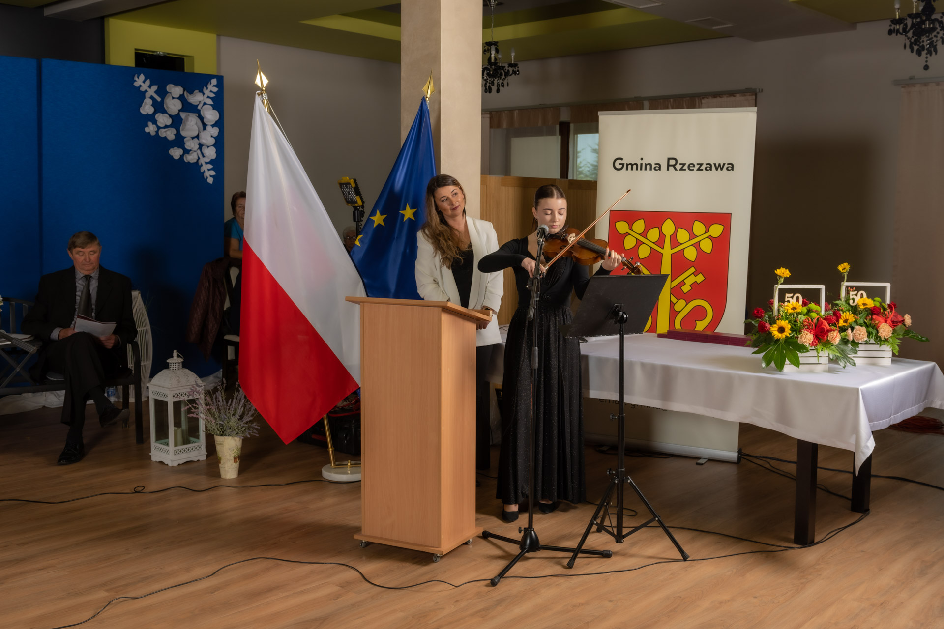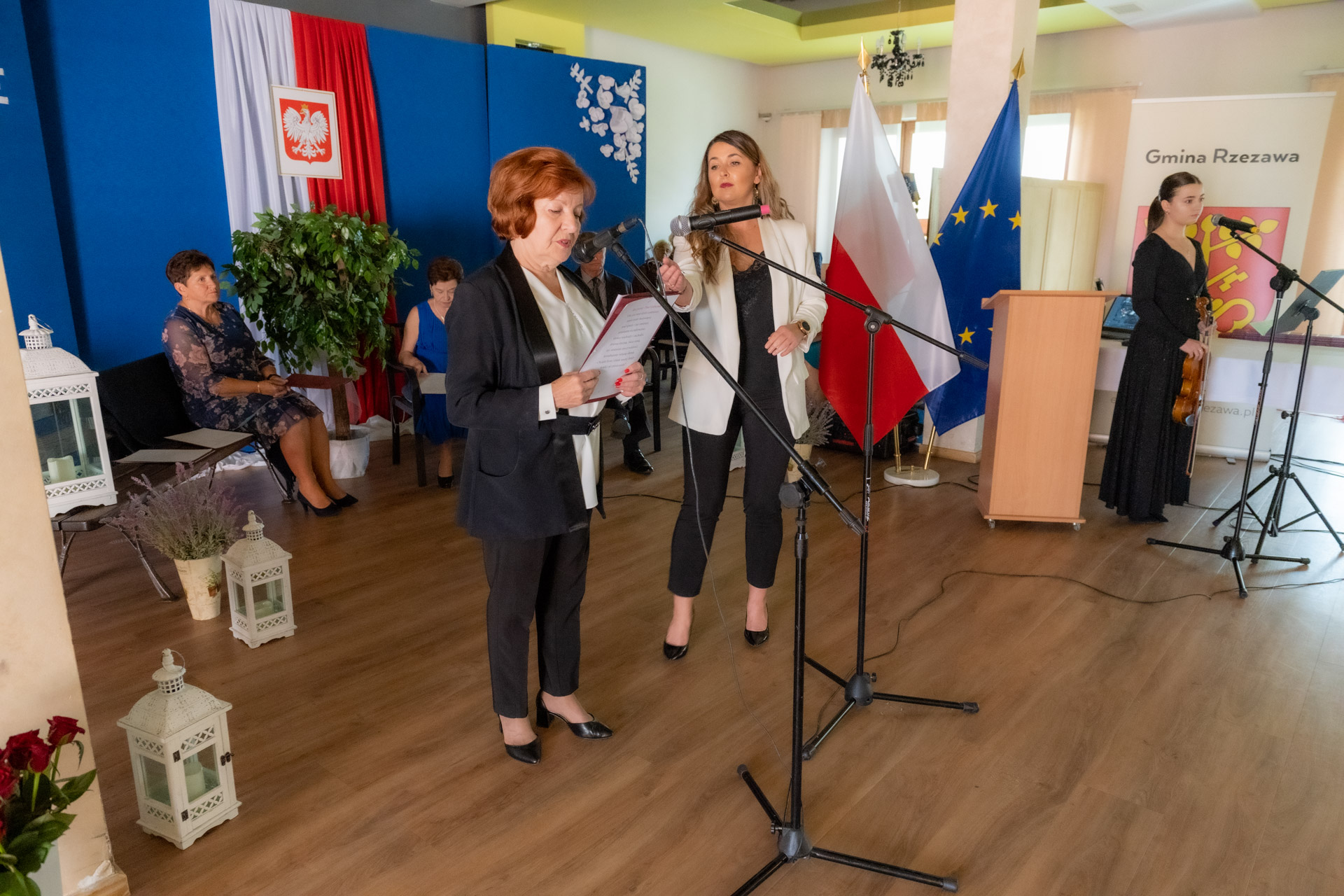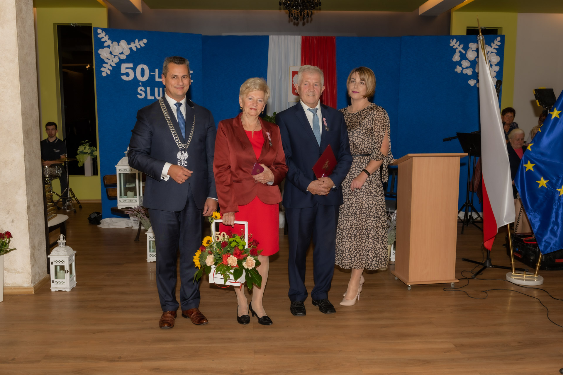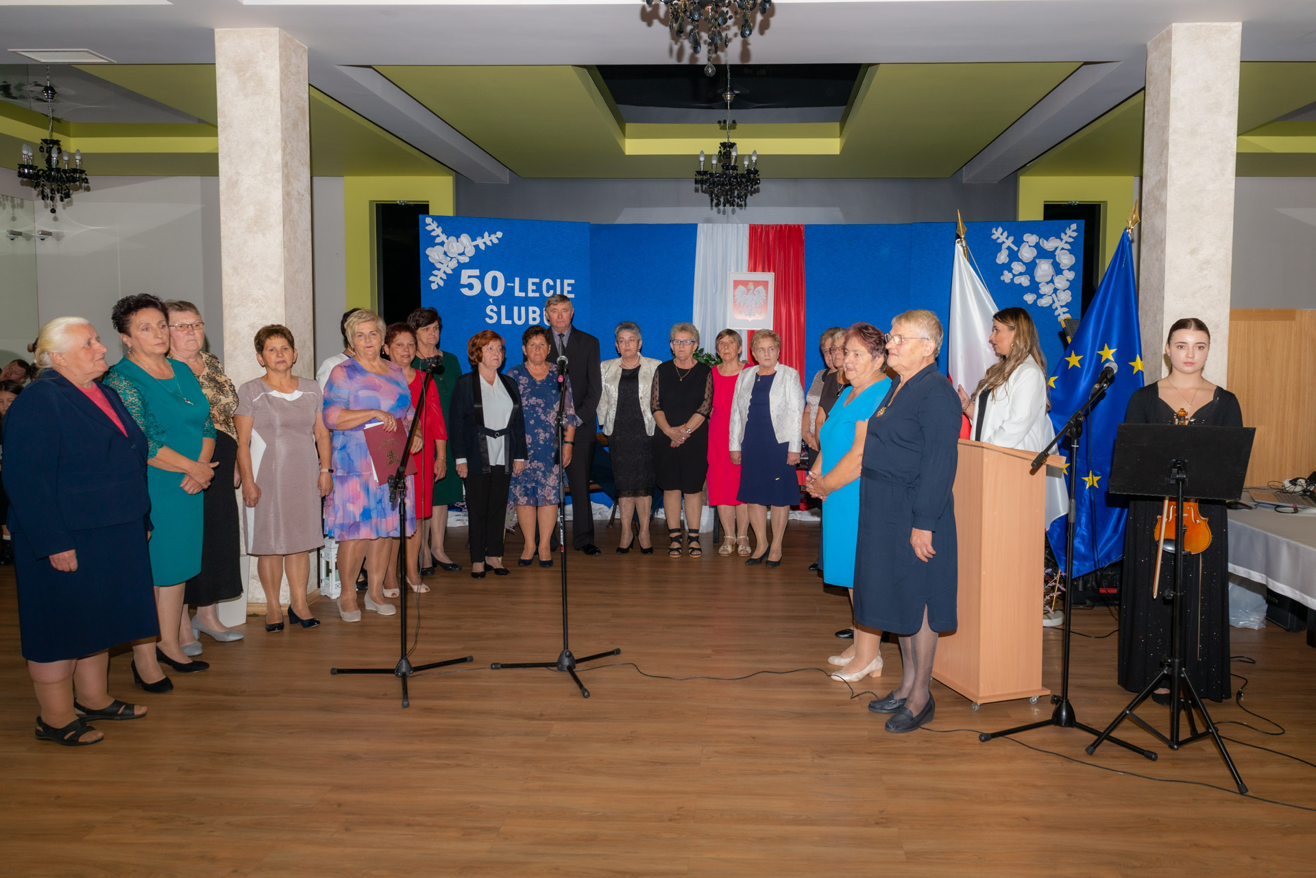 Podczas uroczystości były pamiątkowe zdjęcia, wspólny toast i obiad. Odśpiewano również gromkie „sto lat” dla małżeństw obchodzących piękne jubileusze. Uroczystość uświetnił występ Orkiestry Dętej Okulice oraz Julii Sławęty. Panie z Klubu Senior + z Rzezawy przygotowały natomiast chwytający za serce występ artystyczny. Uroczystość dostarczyła świętującym małżeństwom wiele radości.