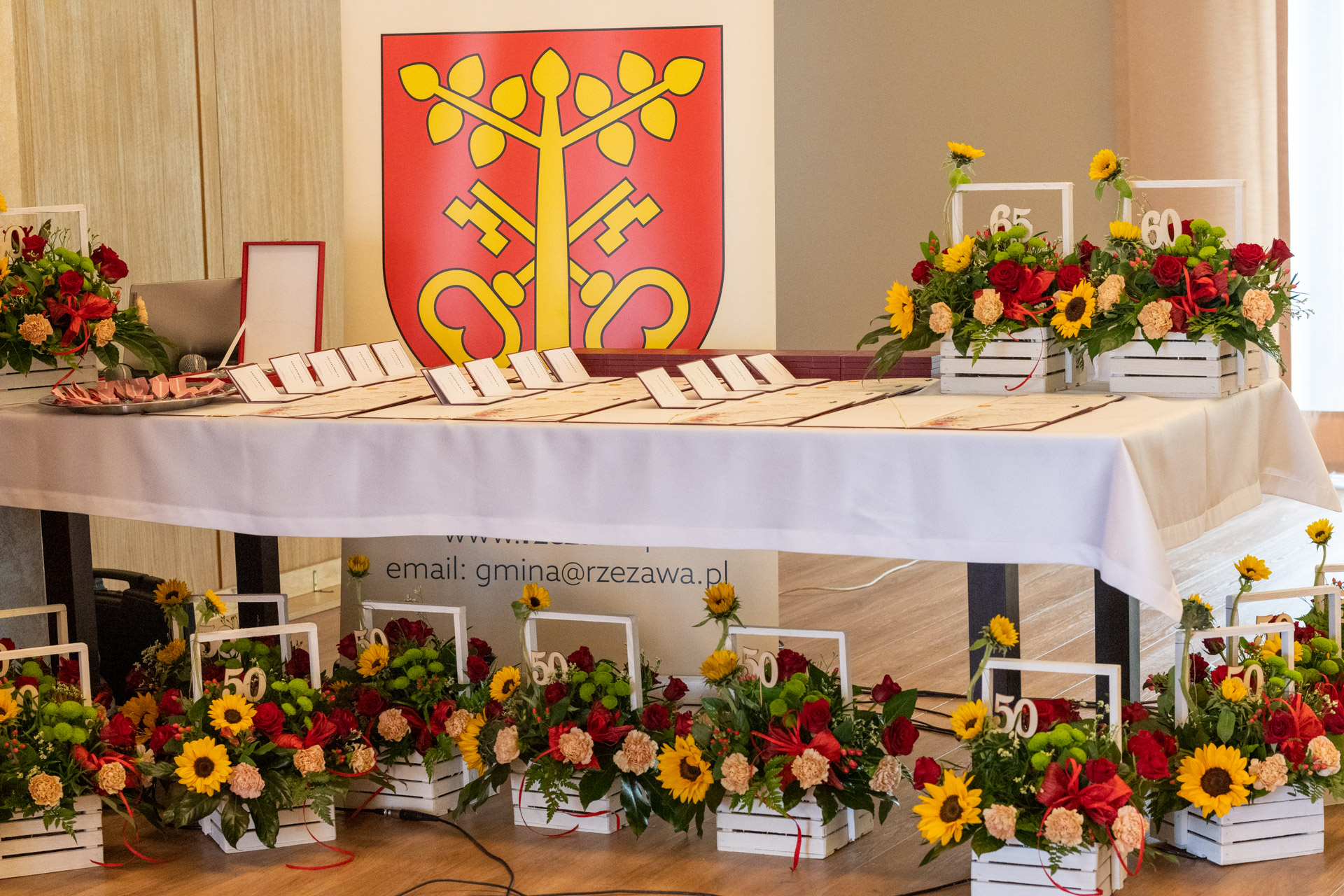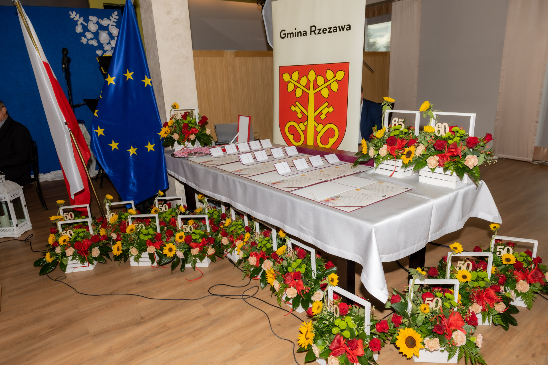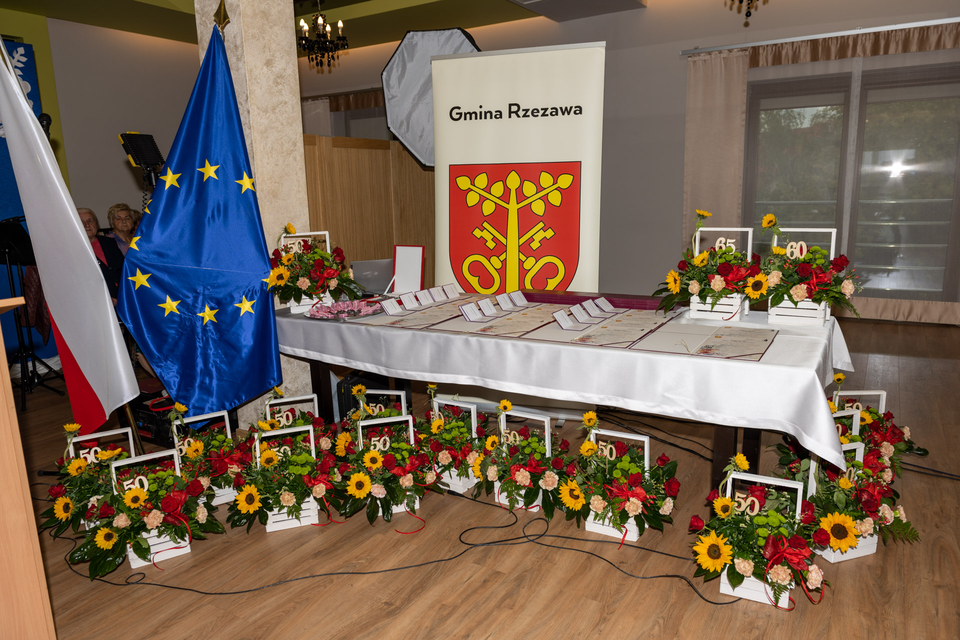 Pamiątkowe medale nadawane przez Prezydenta Rzeczypospolitej Polskiej Jubilatom obchodzącym 50. rocznicę małżeństwa wręczał Wójt Gminy Rzezawa Mariusz Palej. Wszystkie pary otrzymały ponadto okolicznościowe listy gratulacyjny oraz kwiaty. W odpowiedni sposób uhonorowane zostały także małżeństwa świętujące swoją 60. i 65. rocznicę.