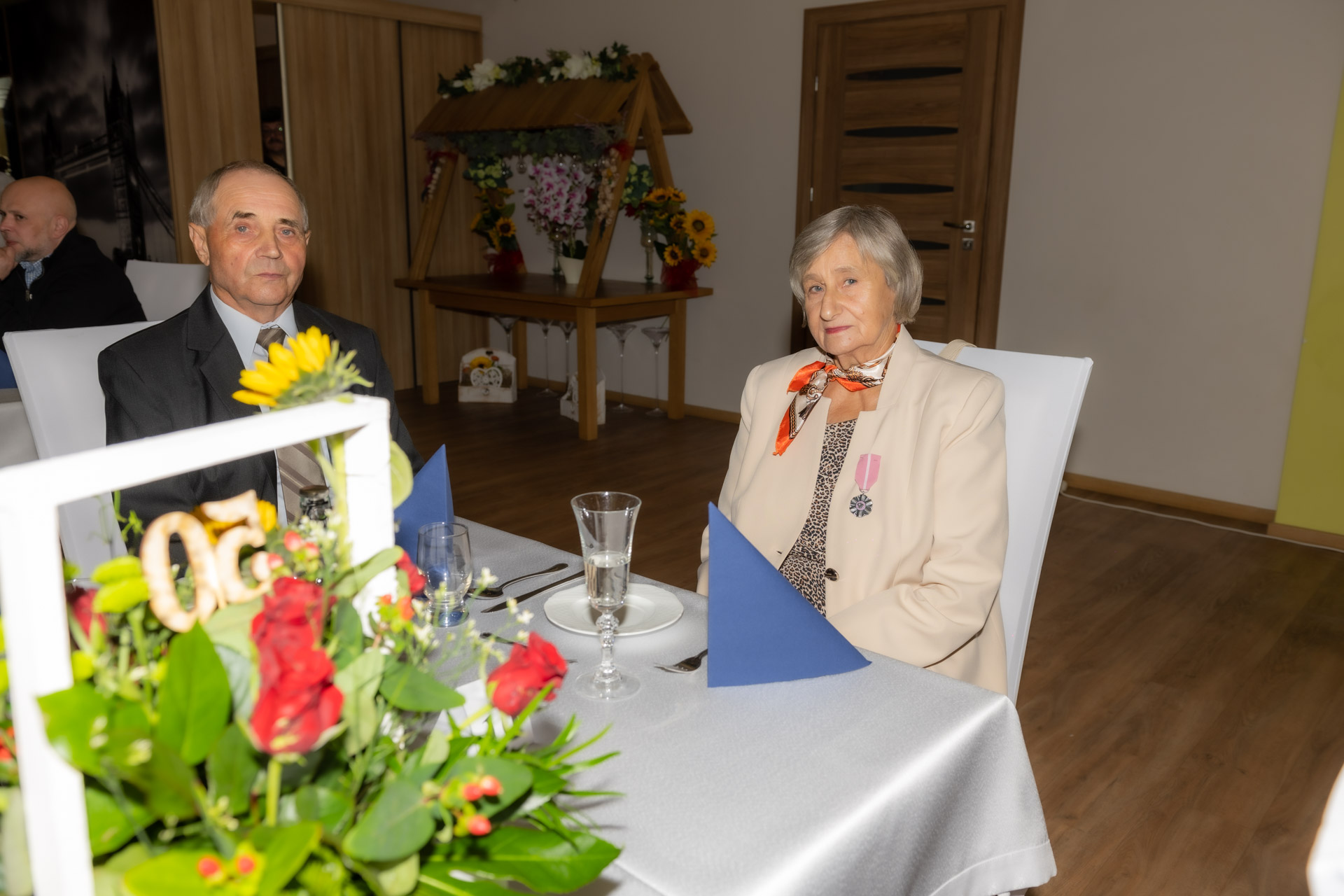 Małżeństwo obchodzące żelazną rocznicę ślubu biorące udział w uroczystości (wstąpili w związek małżeński w 1957 roku):