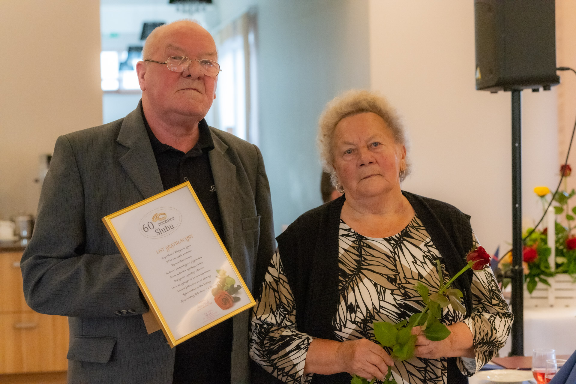Małżeństwo obchodzące diamentową rocznicę ślubu biorące udział w uroczystości (wstąpili w związek małżeński w 1962 roku):