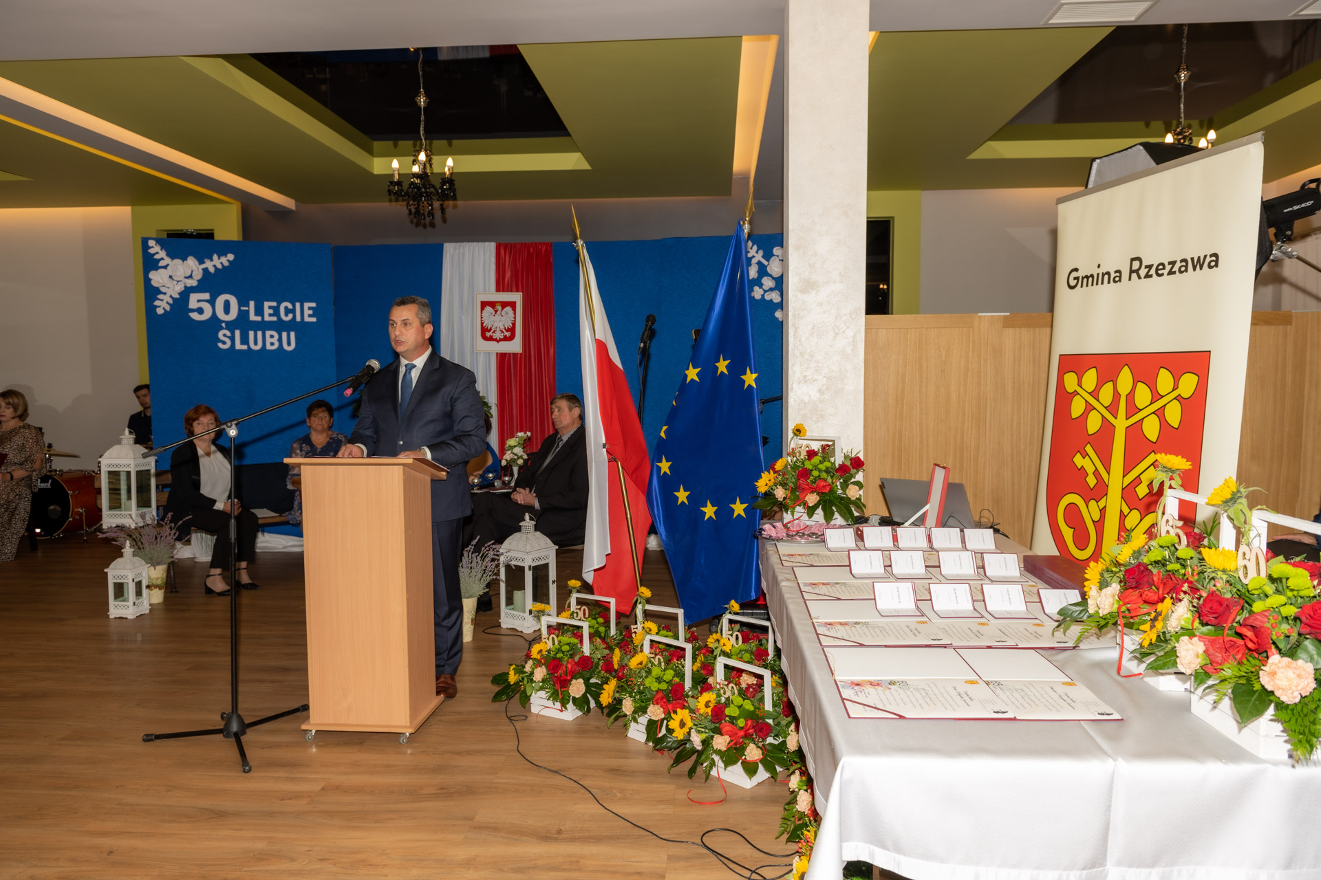 - Nie byłoby świętowania Złotych Godów, diamentowych i żelaznych rocznic, gdyby nie miłość. Najwspanialsze uczucie na świecie, którym zostaliście ze sobą połączeni. Jan Paweł II podkreślał, że kocha się naprawdę i do końca tylko wówczas, gdy kocha się na zawsze, w radości i smutku, bez względu na dobry czy zły los – mówił podczas uroczystości Wójt Gminy Rzezawa Mariusz Palej.