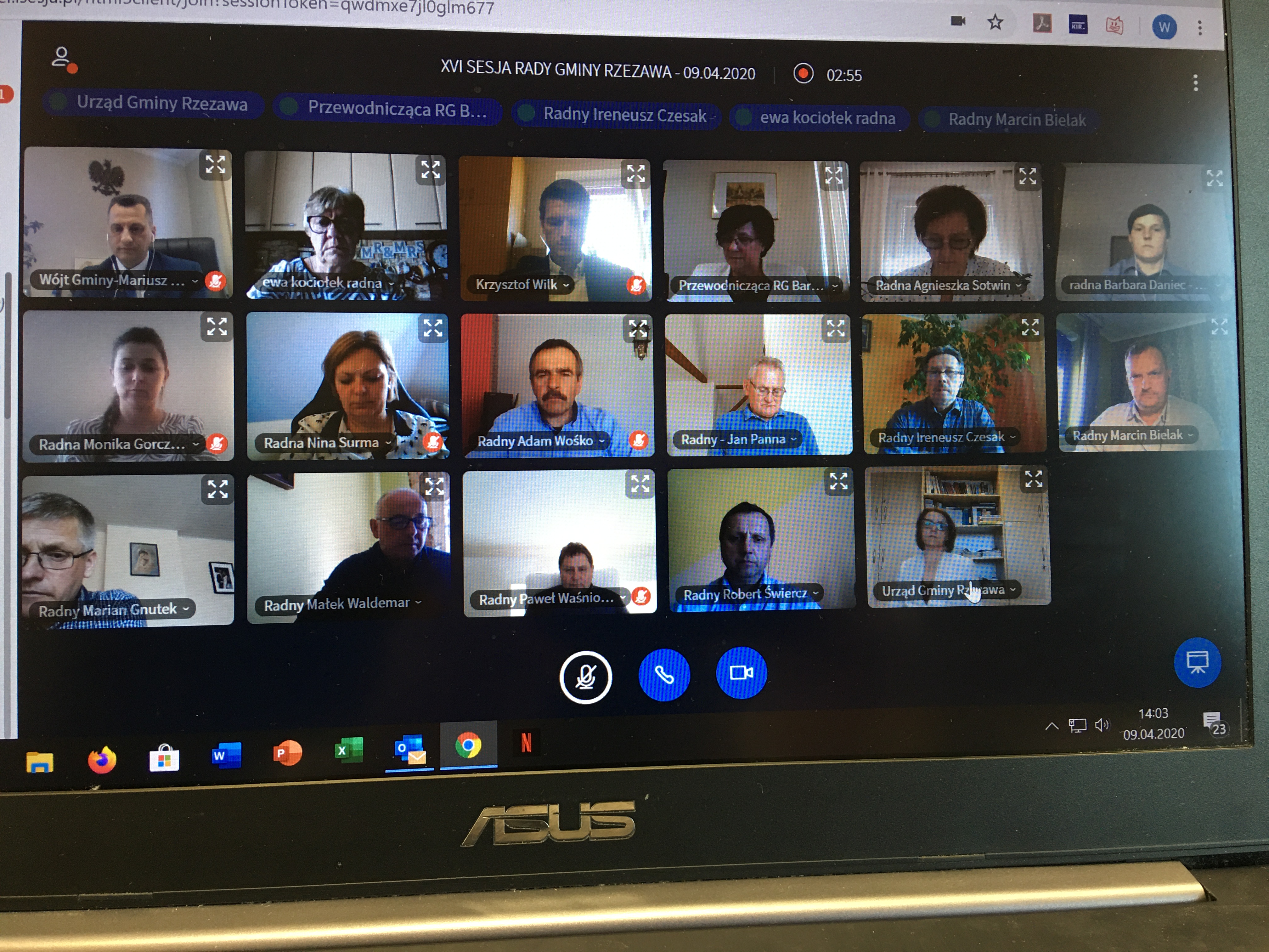 Ze względów bezpieczeństwa podyktowanych pandemią koronawirusa radni Gminy Rzezawa nie mogli spotkać się tak jak zwykle w sali sesyjnej. Podczas gdy w wielu gminach obrady są odwoływane i przekładane na inne terminy, w Gminie Rzezawa postanowiono skorzystać z możliwości, jakie dają nowe technologie. Do sesji, jak i komisji online wykorzystano specjalną aplikację. Dzięki niej radni, którzy łączyli się za pośrednictwem Internetu ze swoich domów lub biur, nie tylko się słyszeli, ale też widzieli. – W podobny sposób obradują obecnie parlamentarzyści. To w tej chwili jedyna bezpieczna możliwość przeprowadzenia posiedzenia. Dopóki będzie taka potrzeba, będziemy korzystać z takiego rozwiązania. Nie możemy pozwolić sobie na brak organizacji tego typu obrad. Na każdym z nich podejmowane są bowiem ważne uchwały dotyczące spraw związanych z funkcjonowaniem naszej gminy – mówi Wójt Mariusz Palej.