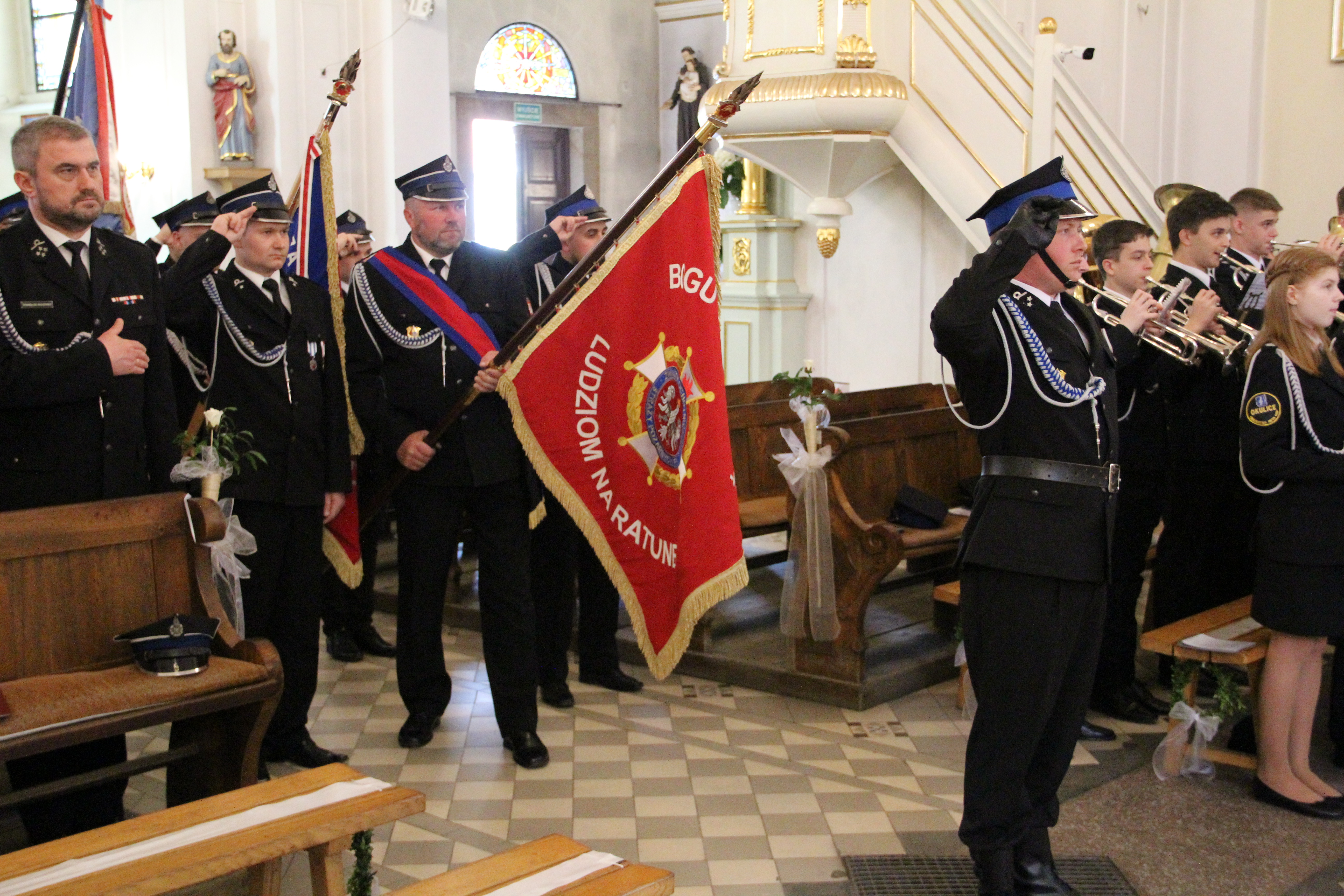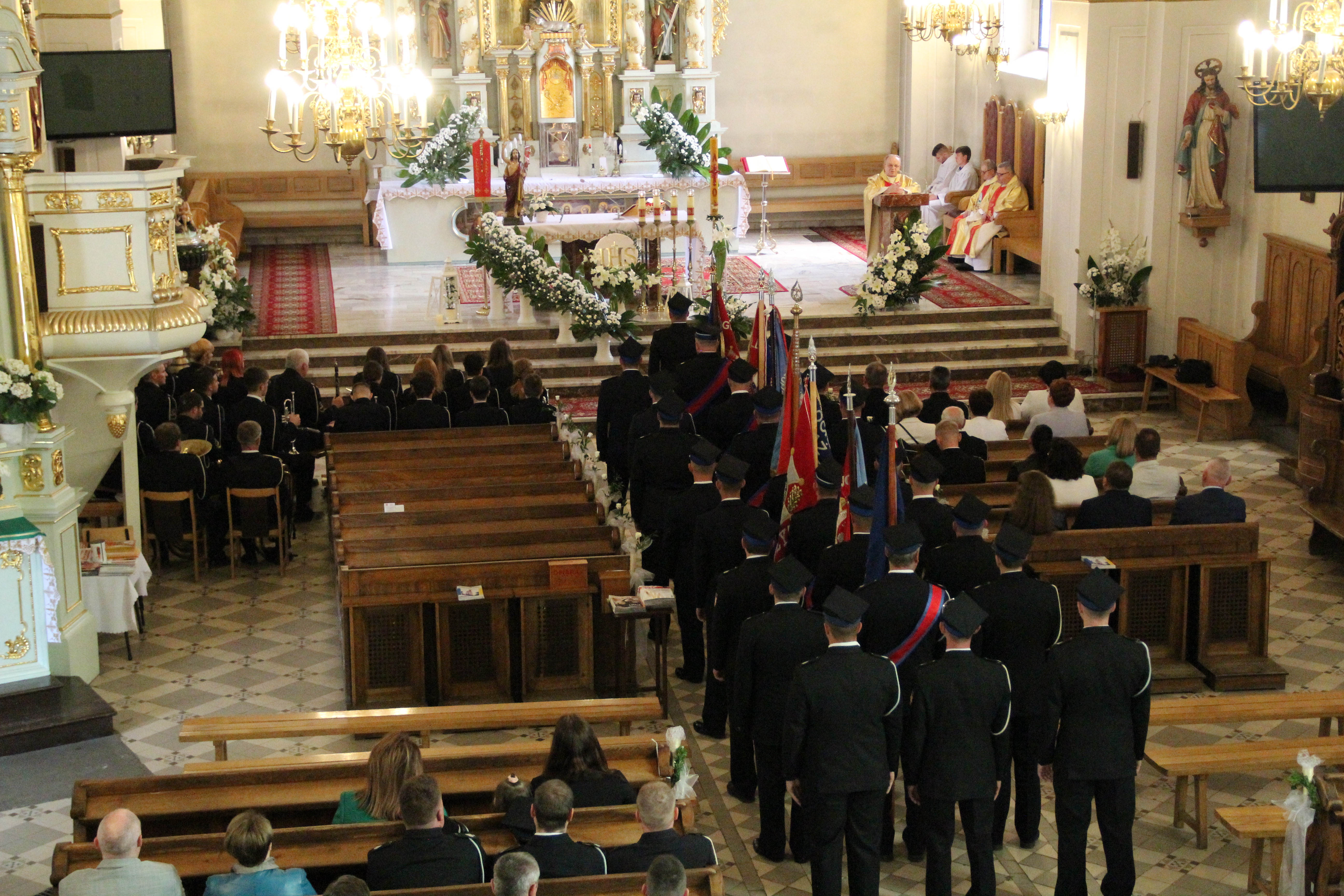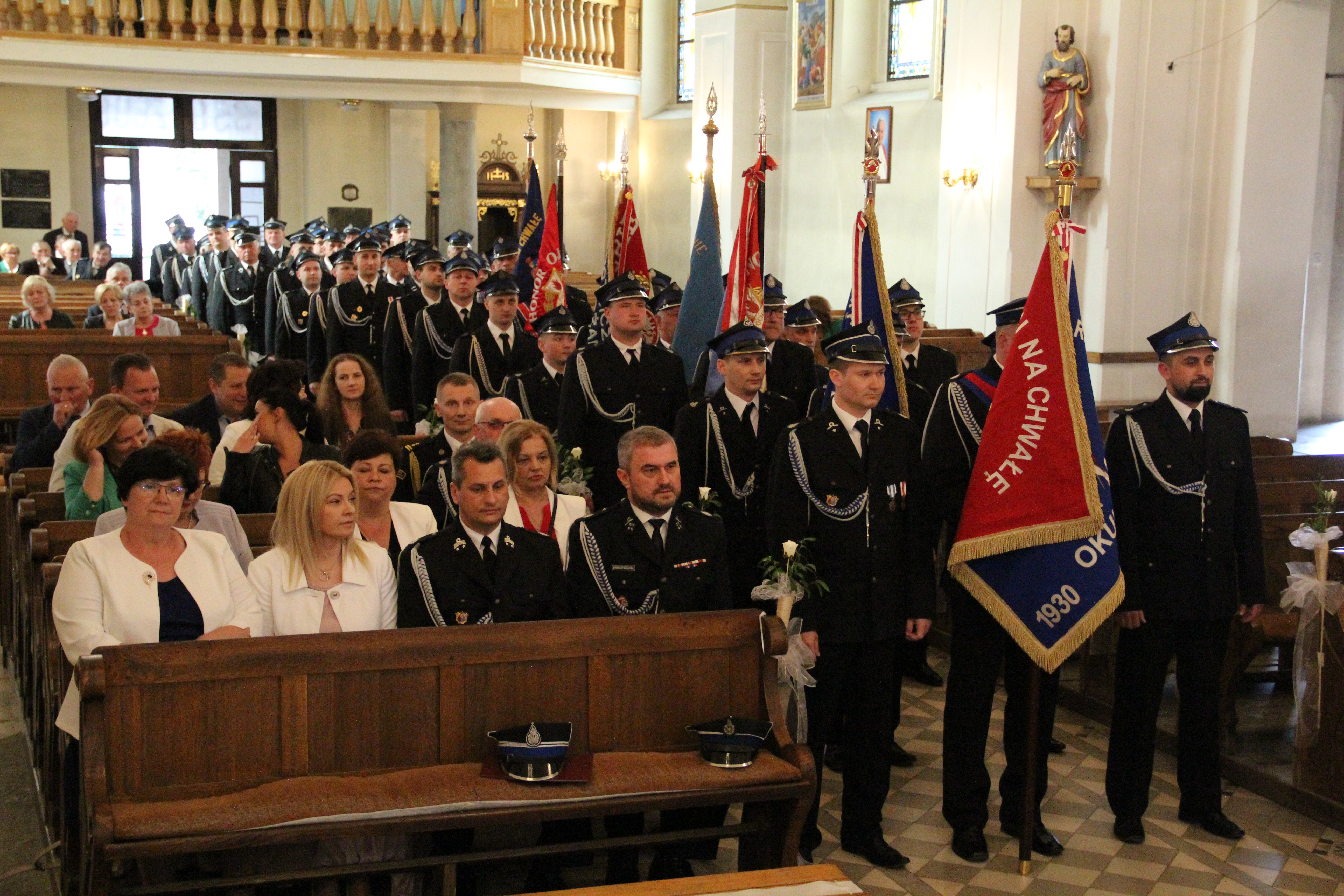 Uroczystości rozpoczęły się od Mszy Świętej w kościele parafialnym w Rzezawie w intencji strażaków, odprawianej przez księdza proboszcza Tadeusza Kubalę oraz księdza prałata Stefana Broniaka - Kapelana Gminnego OSP. Uczestniczyły w niej także władze samorządowe Gminy Rzezawa na czele z Wójtem Mariuszem Palejem, Radnymi oraz Sołtysami. W uroczystości wzięli udział również zaproszeni goście, w tym Posłowie na Sejm RP Stanisław Bukowiec i Józefa Szczurek-Żelazko, Wicestarosta Powiatu Bocheńskiego Ryszard Drożdżak oraz bryg. Paweł Matyasik z Komendy Powiatowej Państwowej Straży Pożarnej w Bochni. O oprawę muzyczną nabożeństwa zadbała natomiast Orkiestra Dęta Okulice.