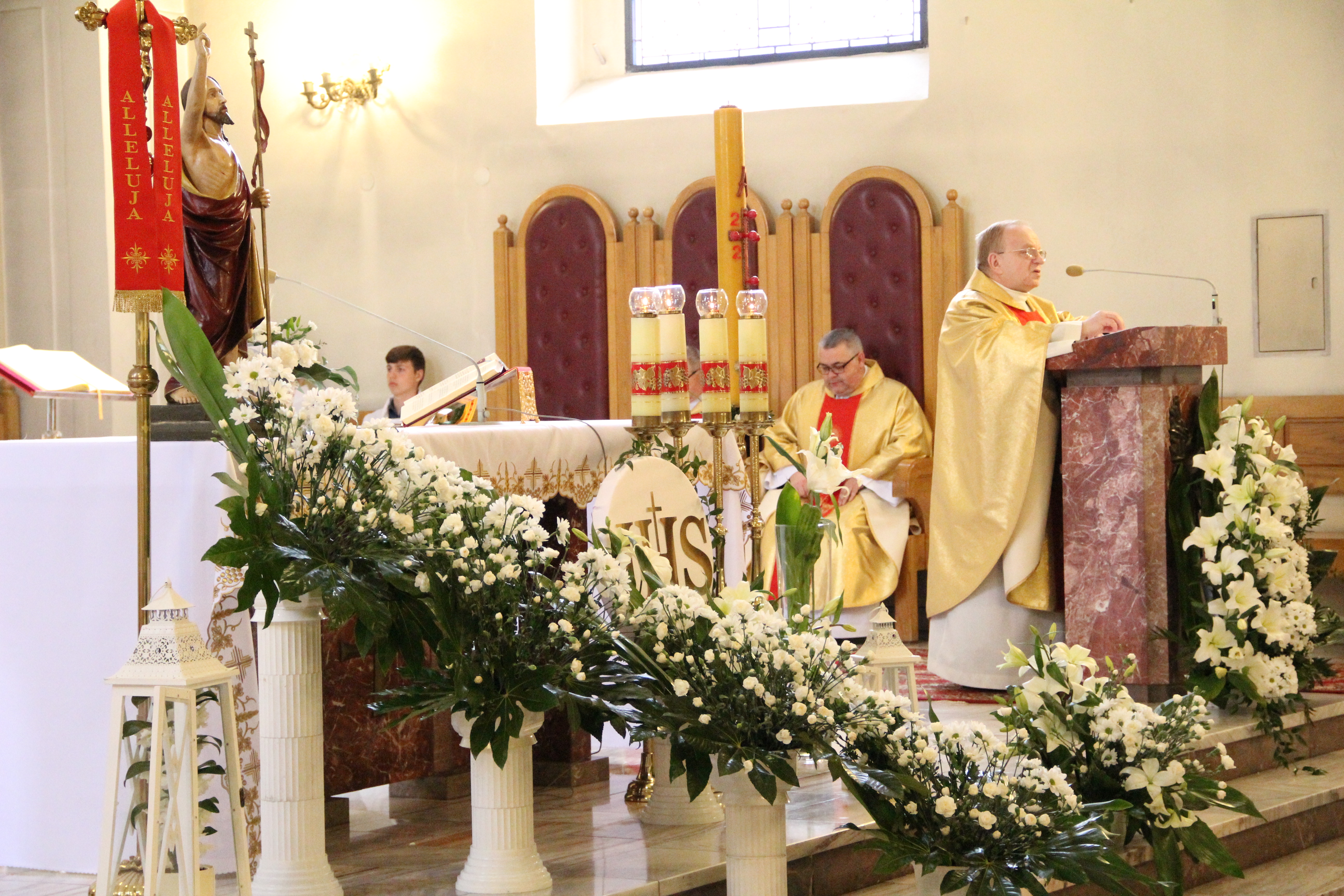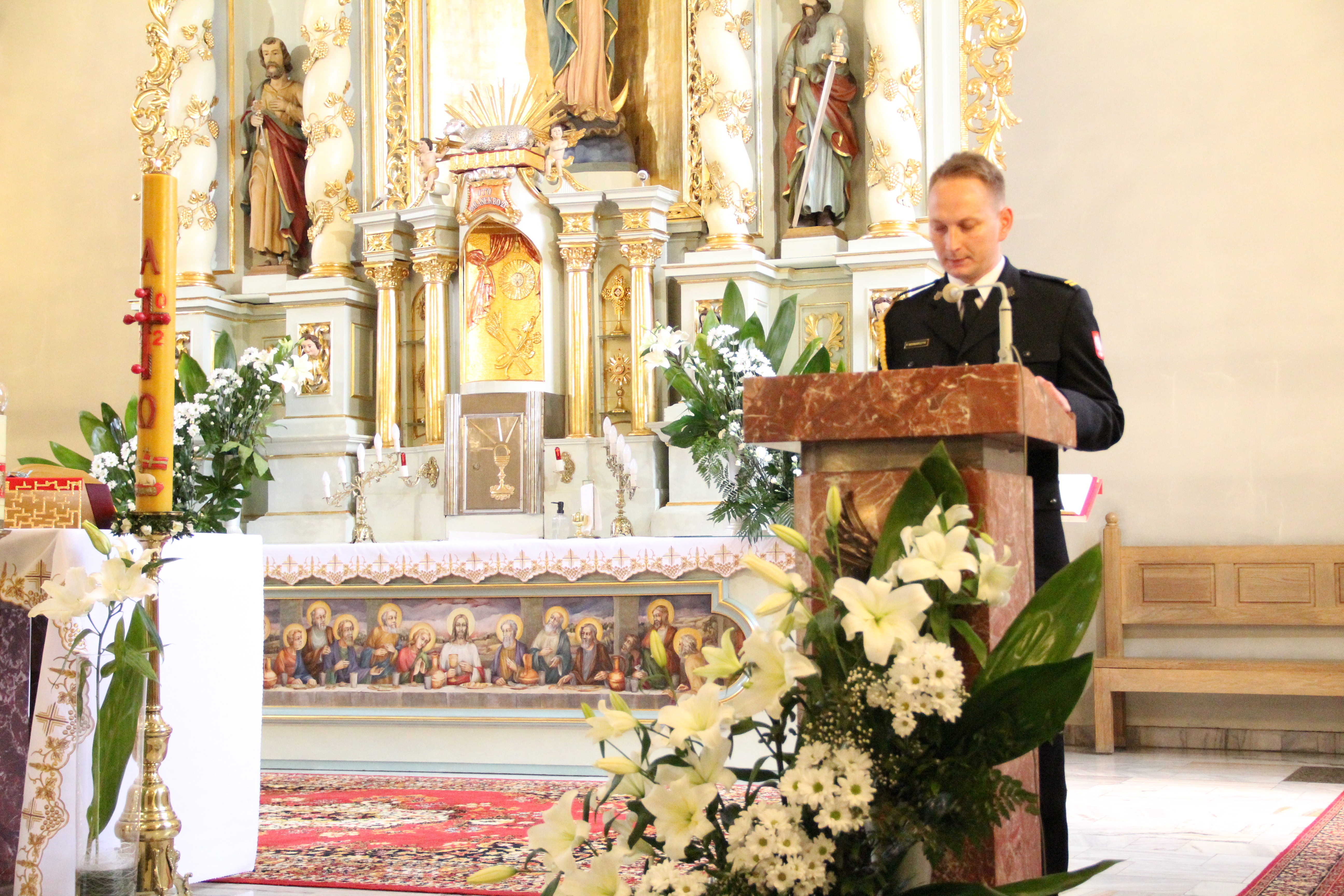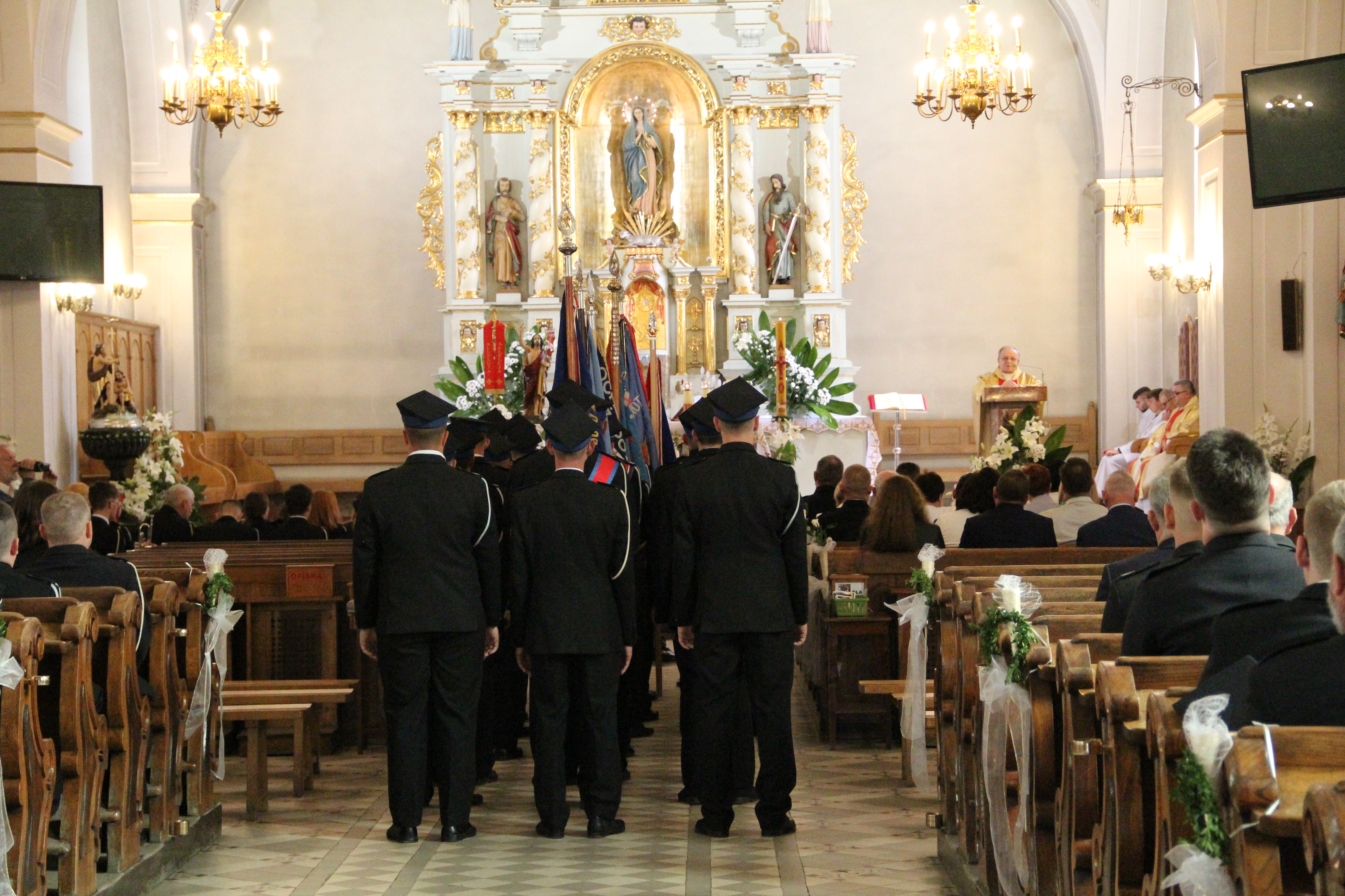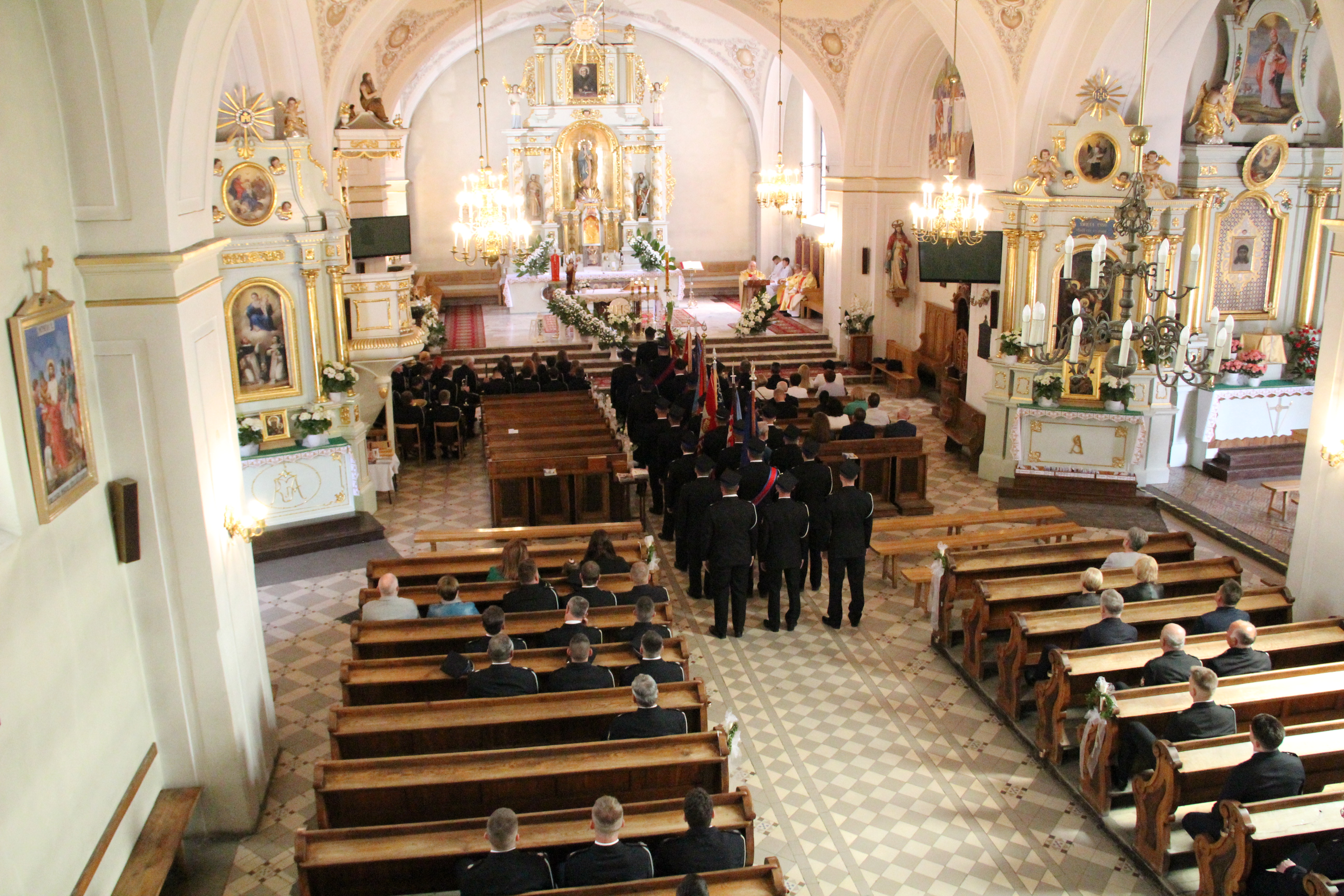 Uroczystości rozpoczęły się od Mszy Świętej w kościele parafialnym w Rzezawie w intencji strażaków, odprawianej przez księdza proboszcza Tadeusza Kubalę oraz księdza prałata Stefana Broniaka - Kapelana Gminnego OSP. Uczestniczyły w niej także władze samorządowe Gminy Rzezawa na czele z Wójtem Mariuszem Palejem, Radnymi oraz Sołtysami. W uroczystości wzięli udział również zaproszeni goście, w tym Posłowie na Sejm RP Stanisław Bukowiec i Józefa Szczurek-Żelazko, Wicestarosta Powiatu Bocheńskiego Ryszard Drożdżak oraz bryg. Paweł Matyasik z Komendy Powiatowej Państwowej Straży Pożarnej w Bochni. O oprawę muzyczną nabożeństwa zadbała natomiast Orkiestra Dęta Okulice.