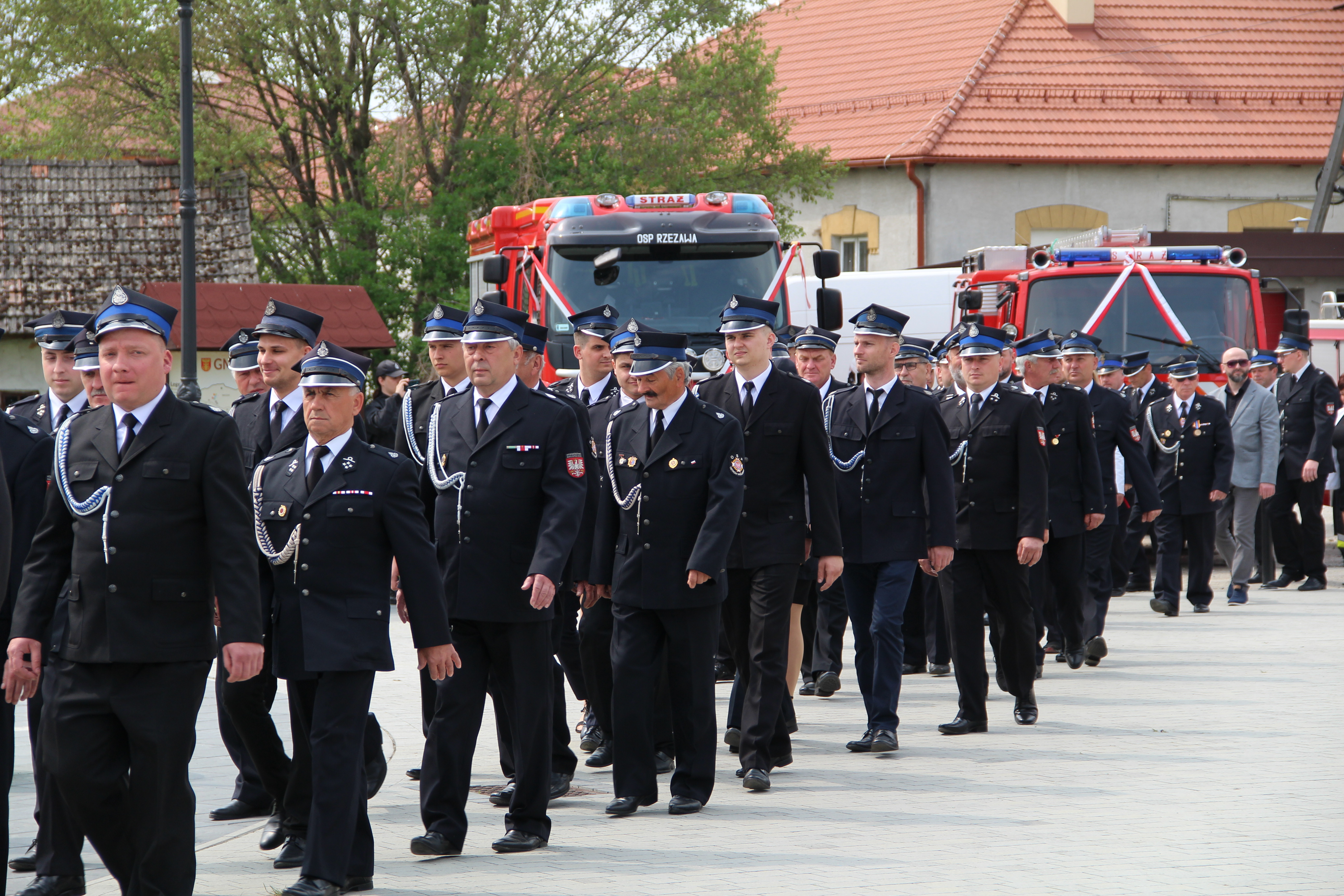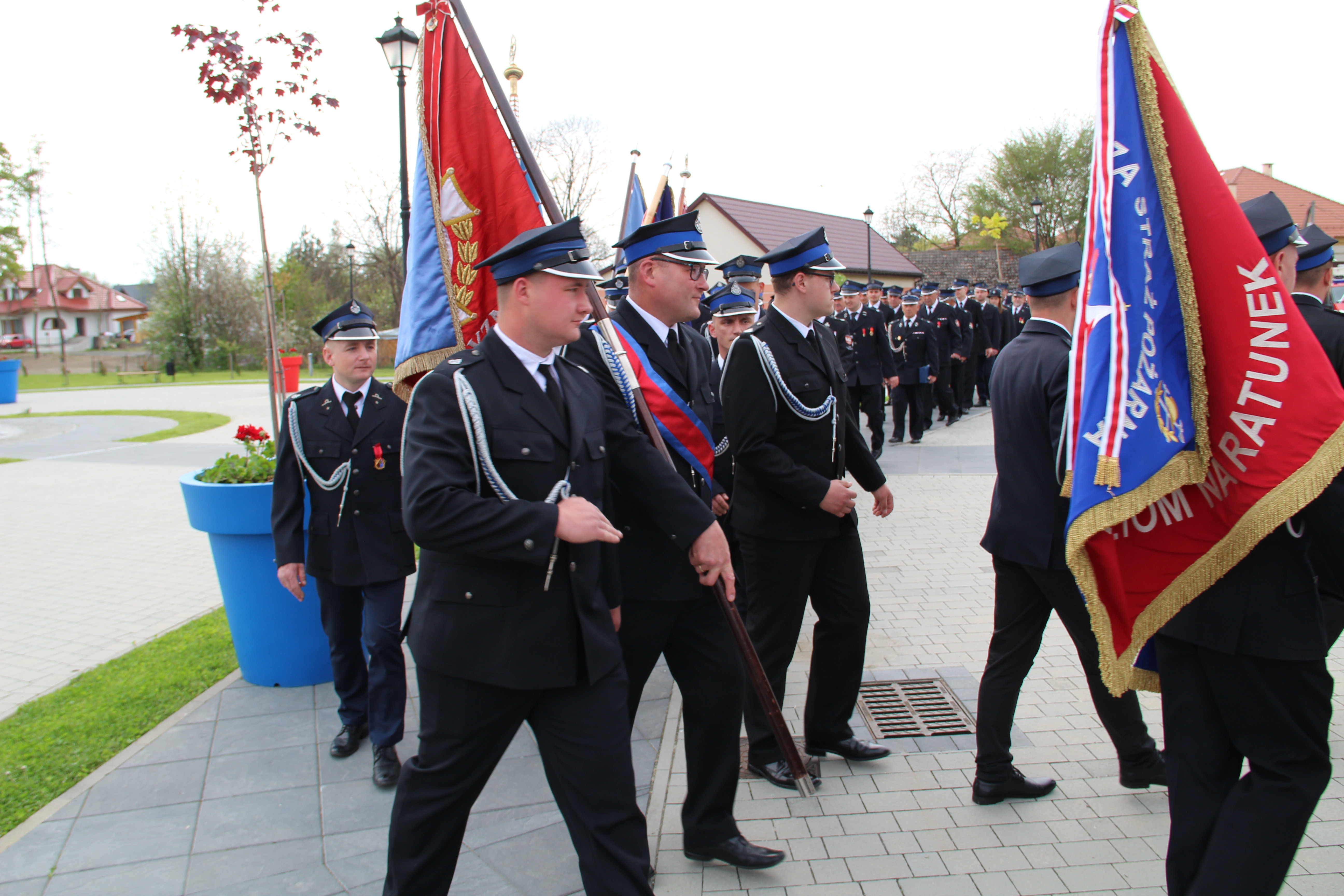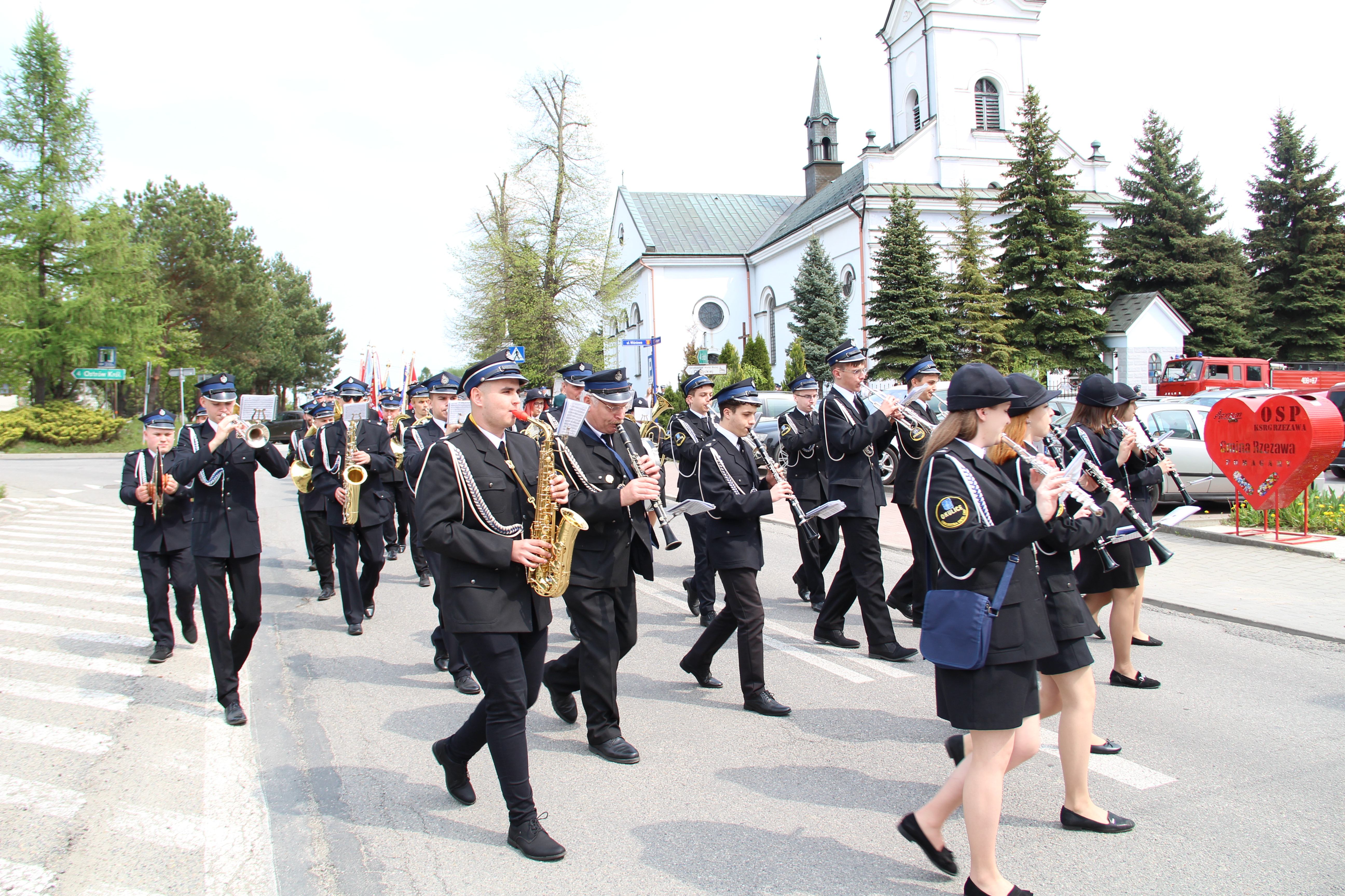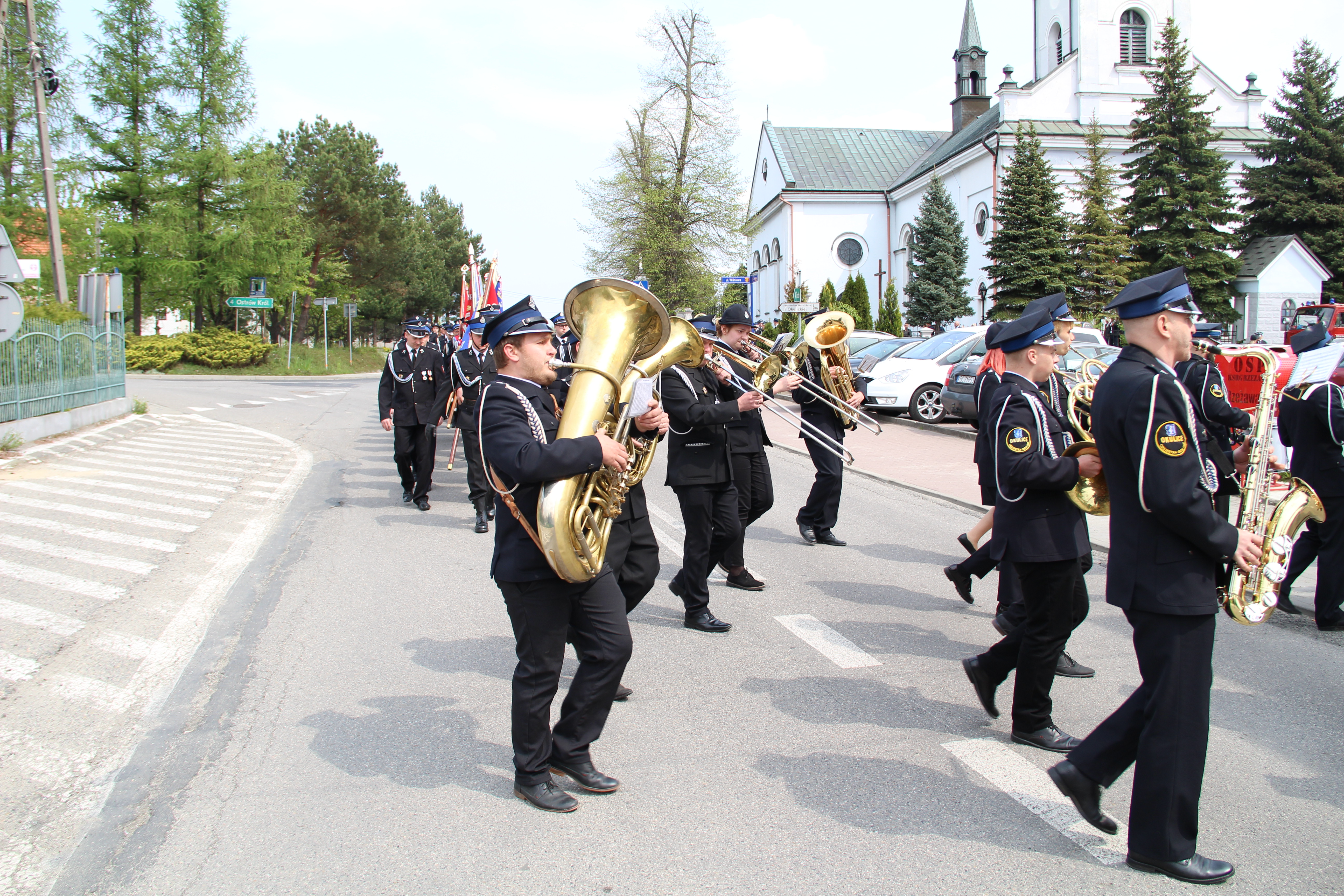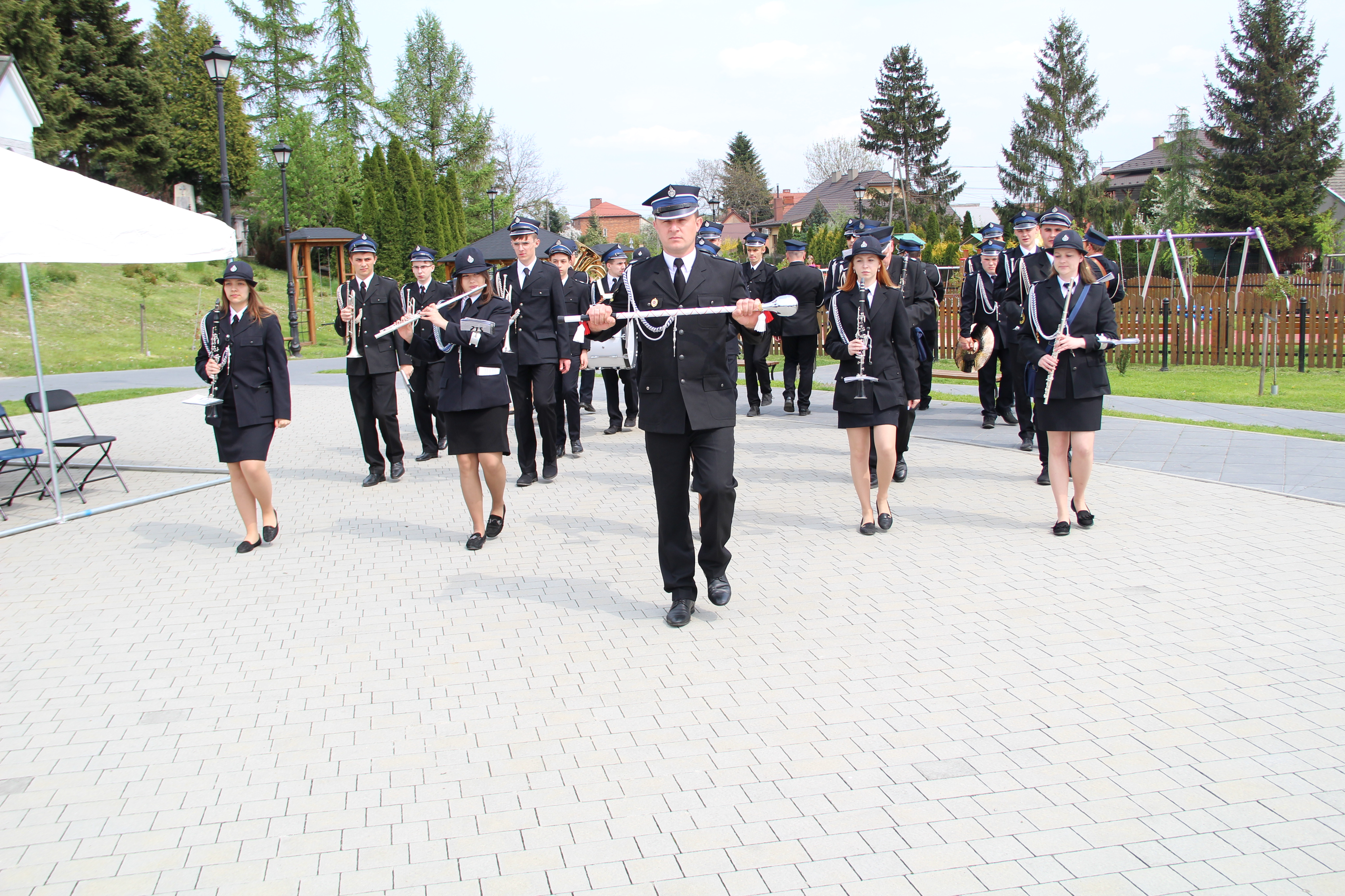 Po Mszy Świętej jednostki OSP wraz z pocztami sztandarowymi i pozostali uczestnicy uroczystości w szyku strażackim przy akompaniamencie orkiestry dętej przemaszerowali na „Ryneczek”.