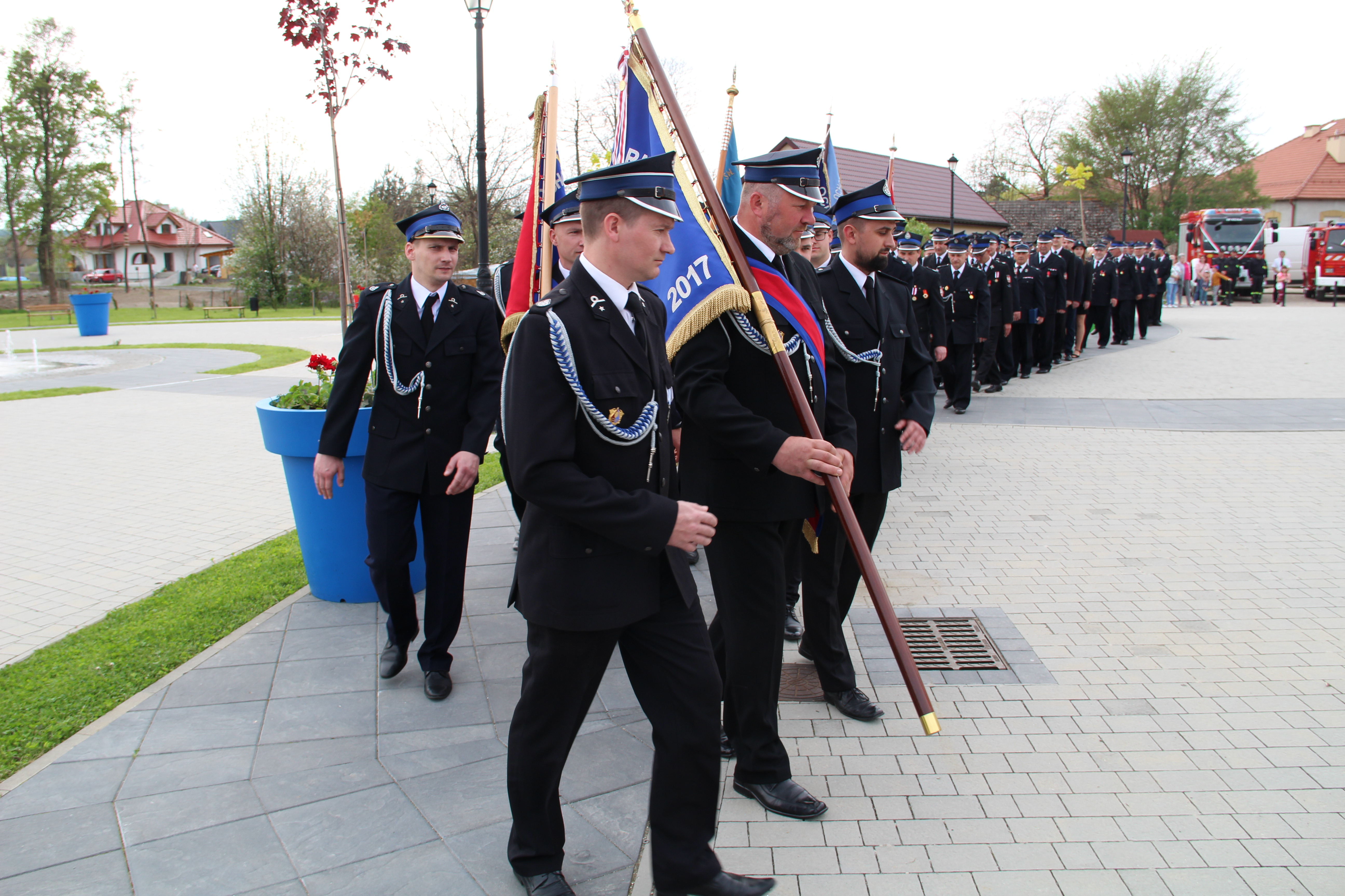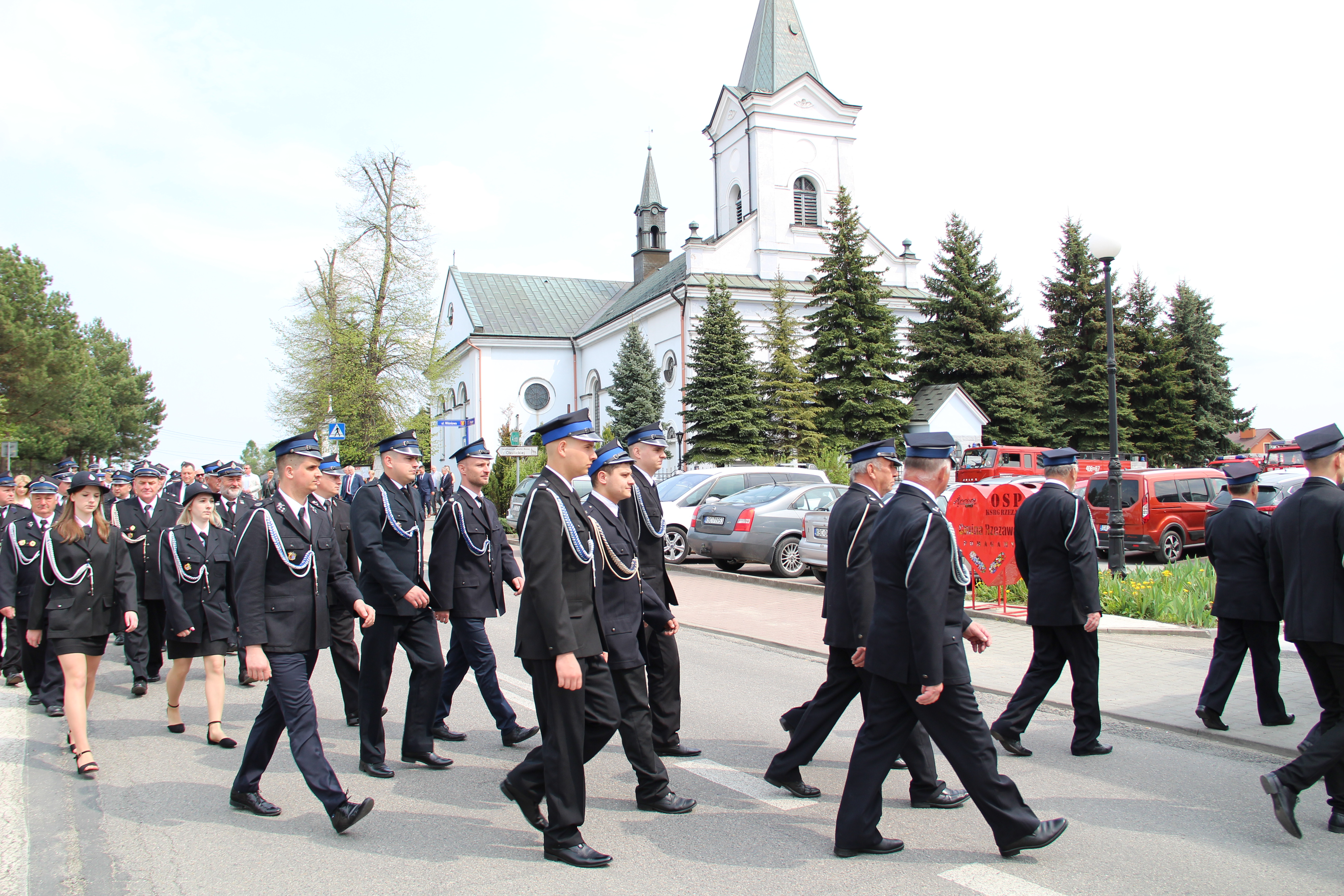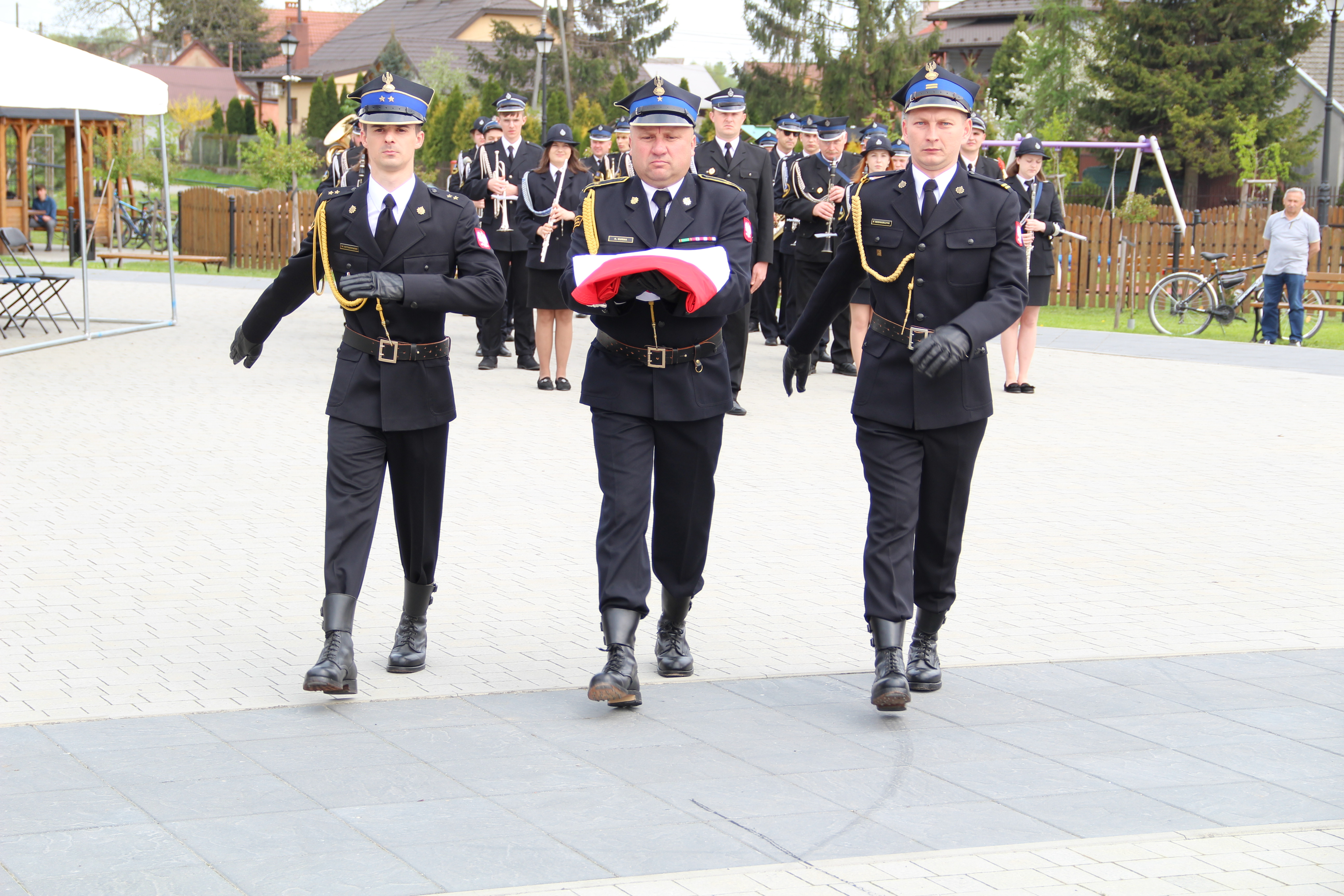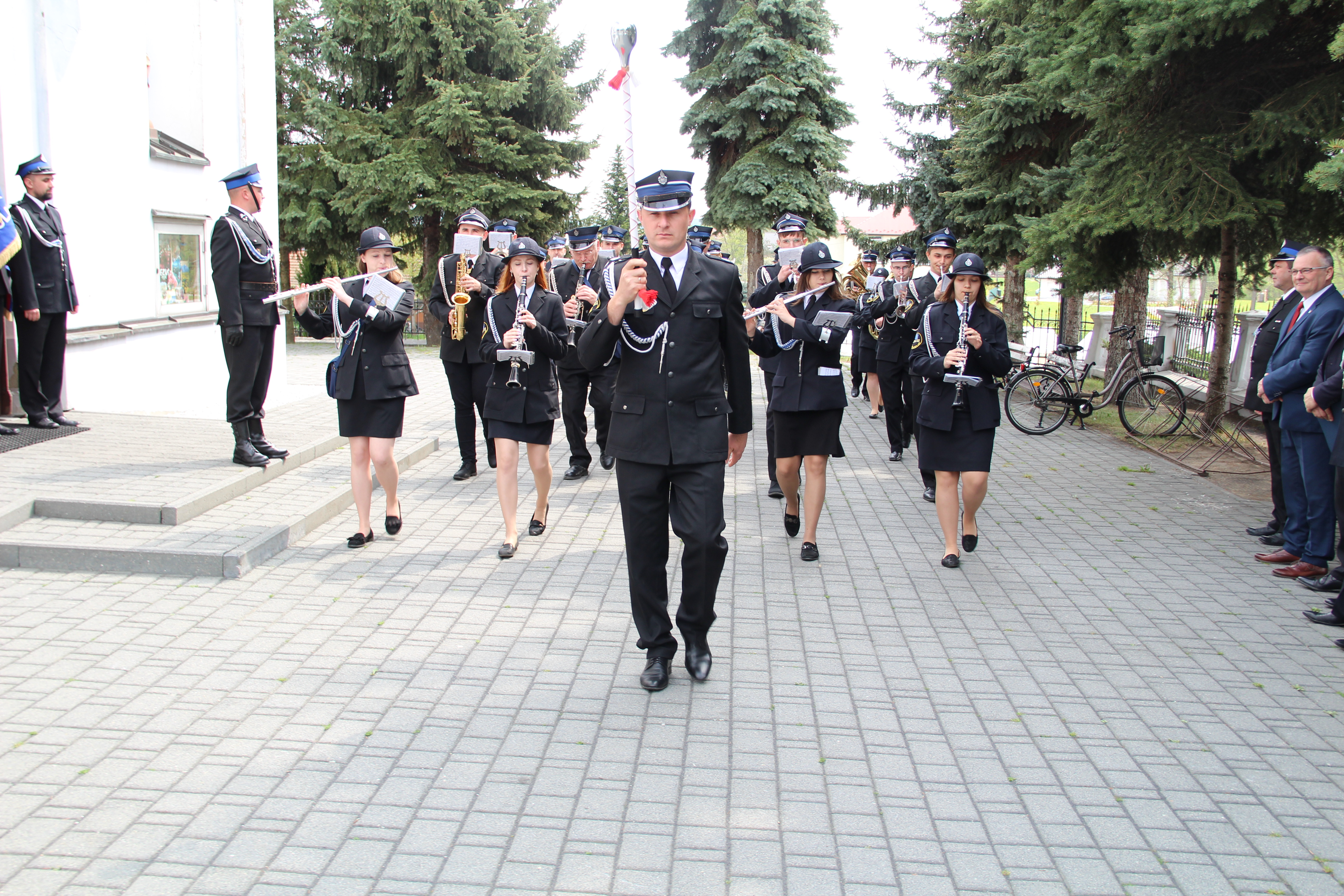 Po Mszy Świętej jednostki OSP wraz z pocztami sztandarowymi i pozostali uczestnicy uroczystości w szyku strażackim przy akompaniamencie orkiestry dętej przemaszerowali na „Ryneczek”.