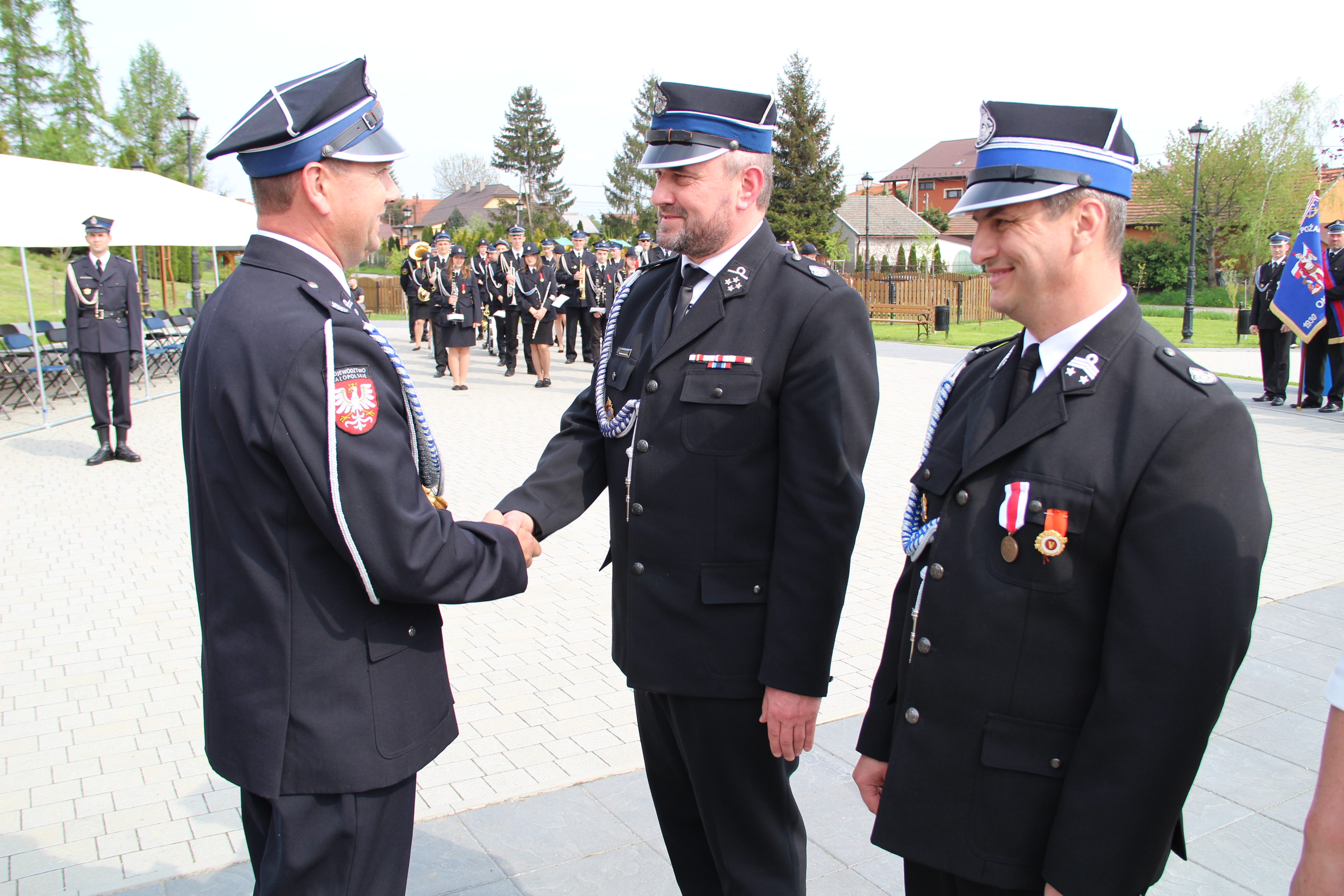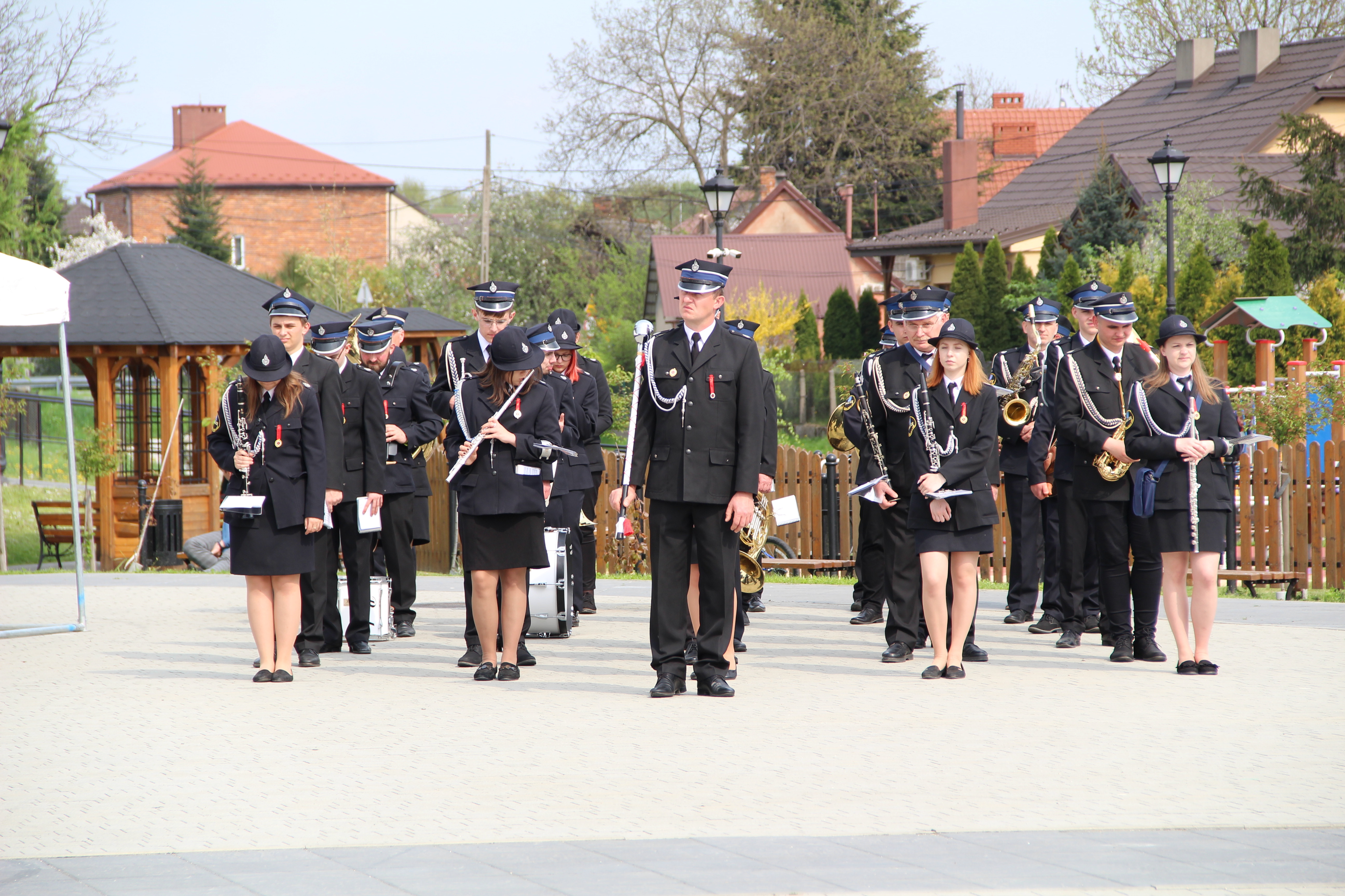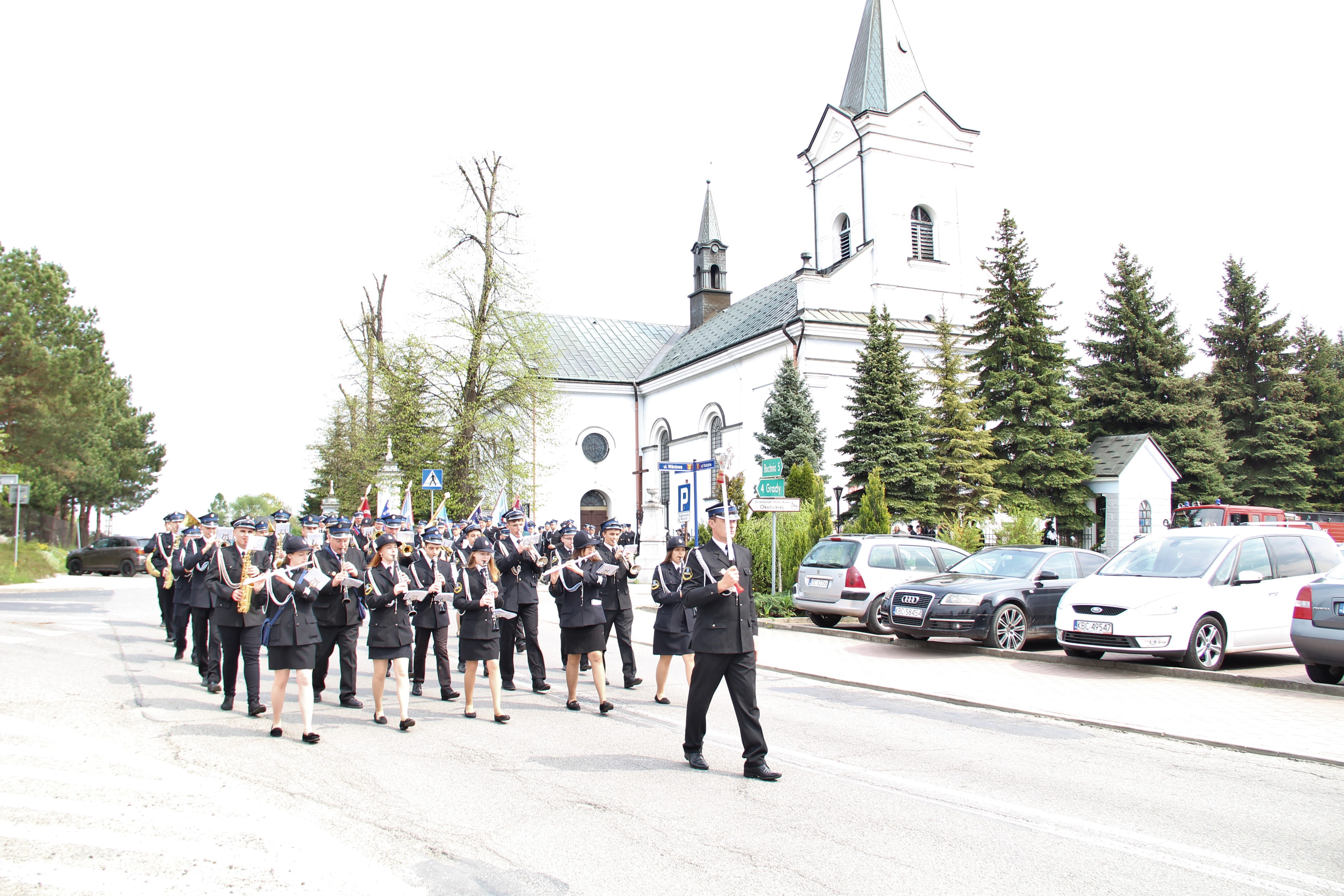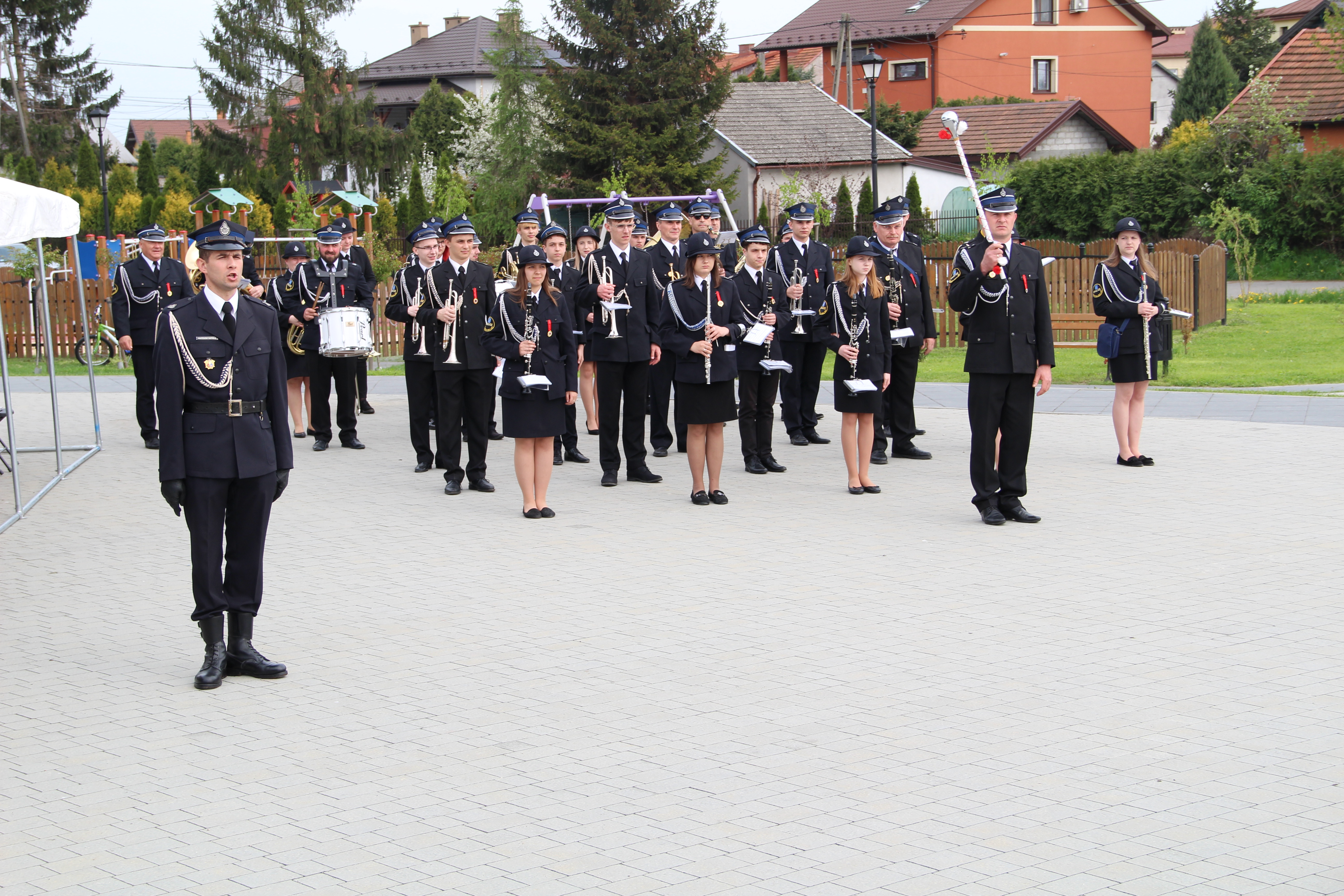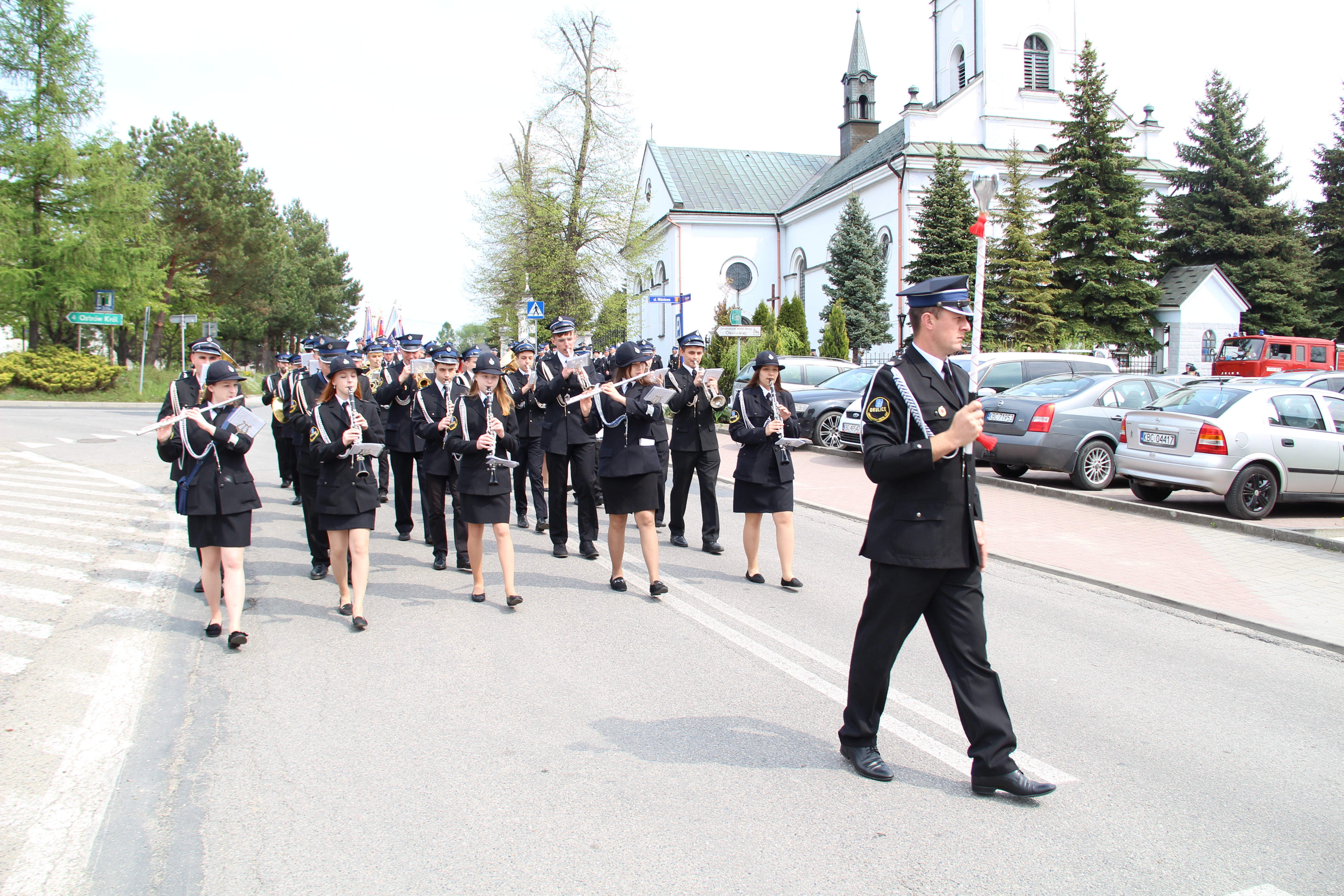 Po Mszy Świętej jednostki OSP wraz z pocztami sztandarowymi i pozostali uczestnicy uroczystości w szyku strażackim przy akompaniamencie orkiestry dętej przemaszerowali na „Ryneczek”.
