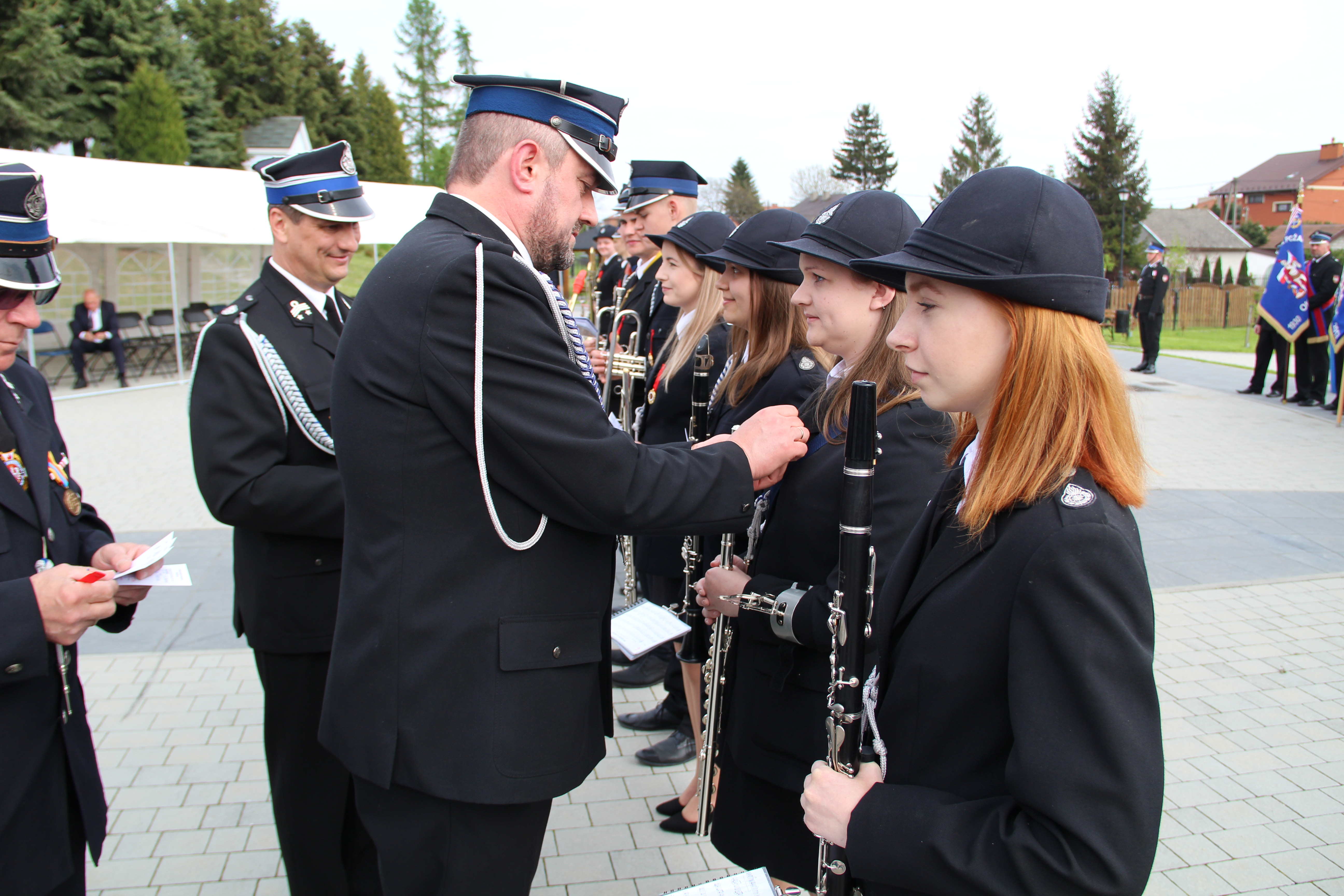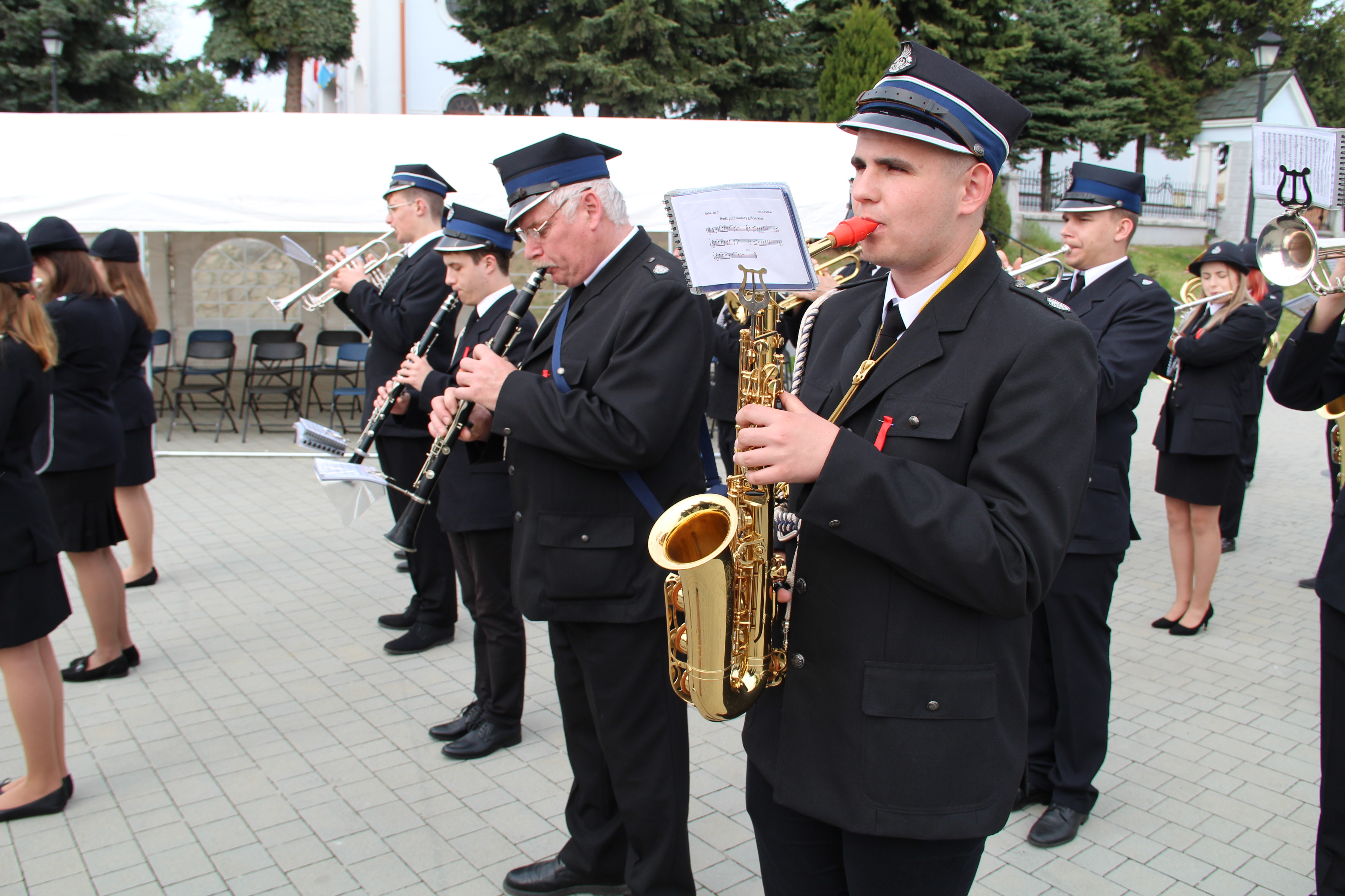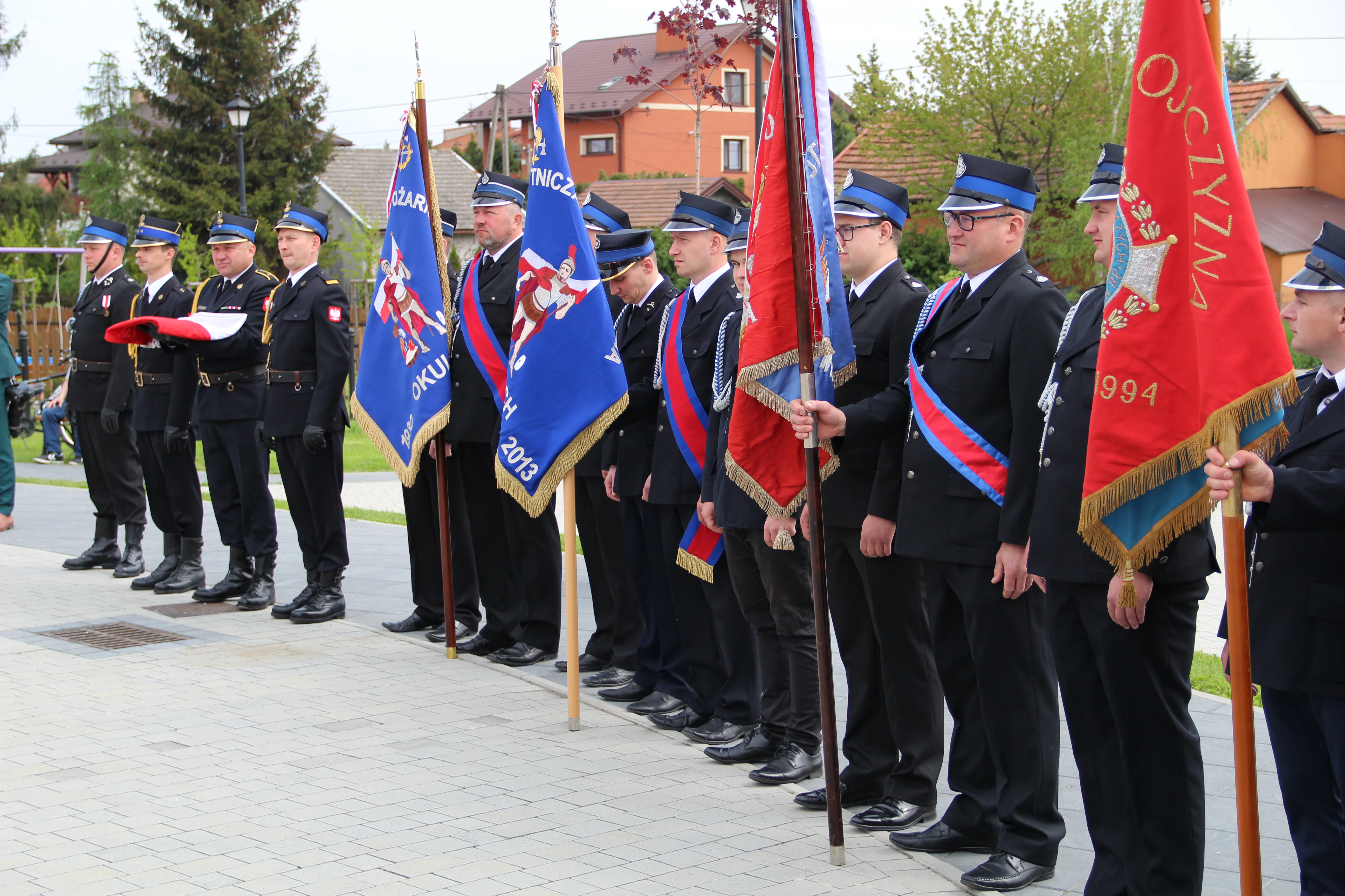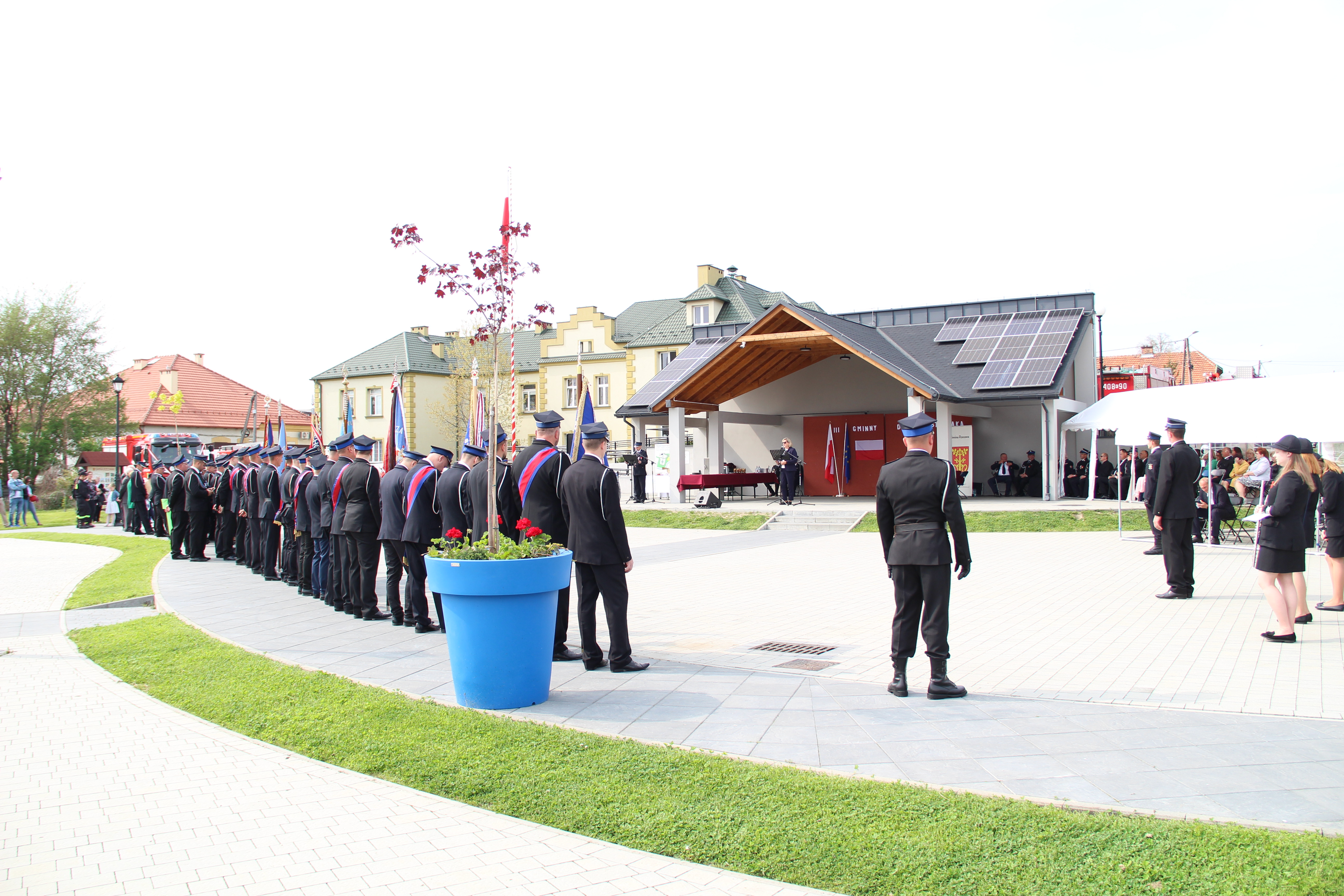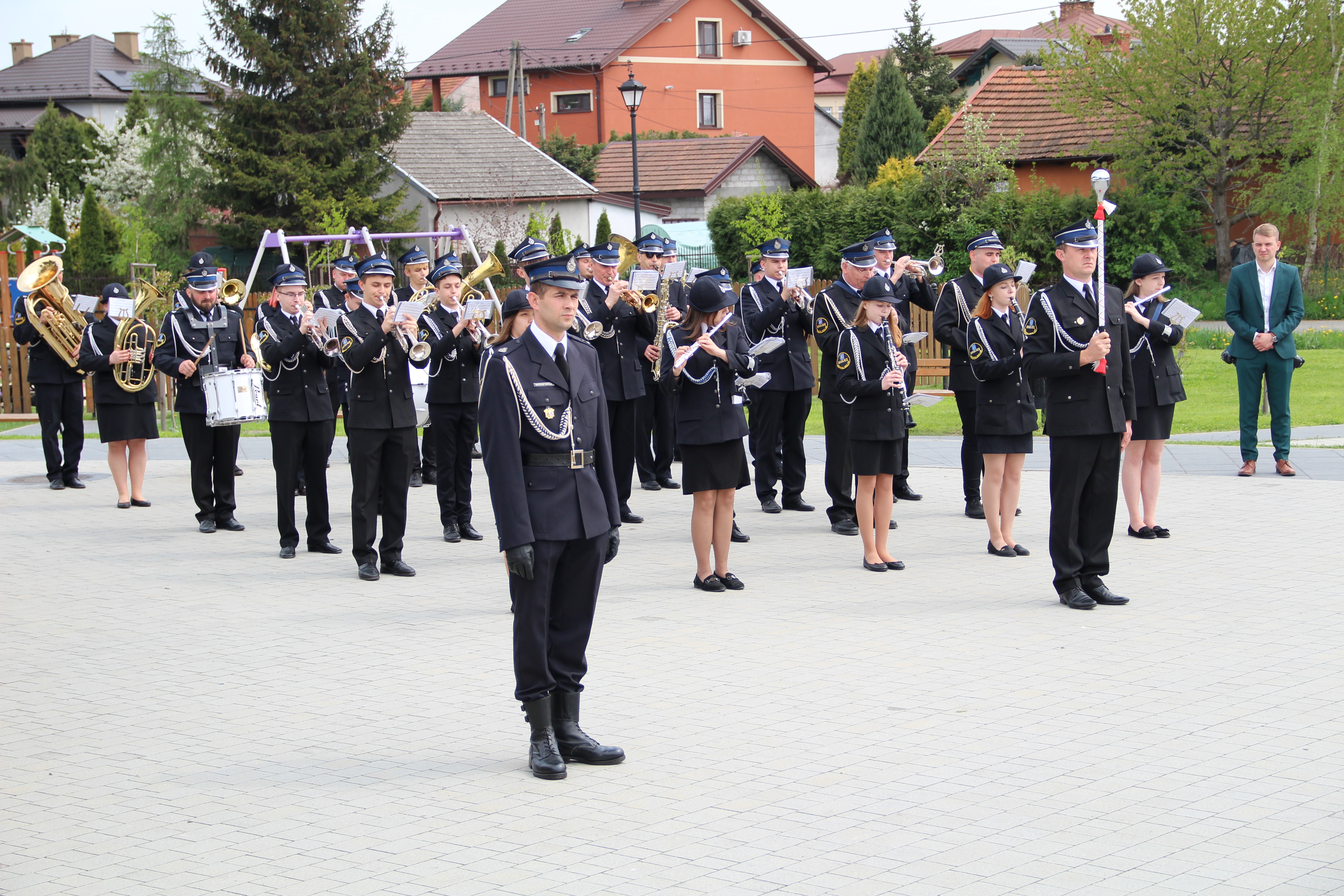 Po Mszy Świętej jednostki OSP wraz z pocztami sztandarowymi i pozostali uczestnicy uroczystości w szyku strażackim przy akompaniamencie orkiestry dętej przemaszerowali na „Ryneczek”.